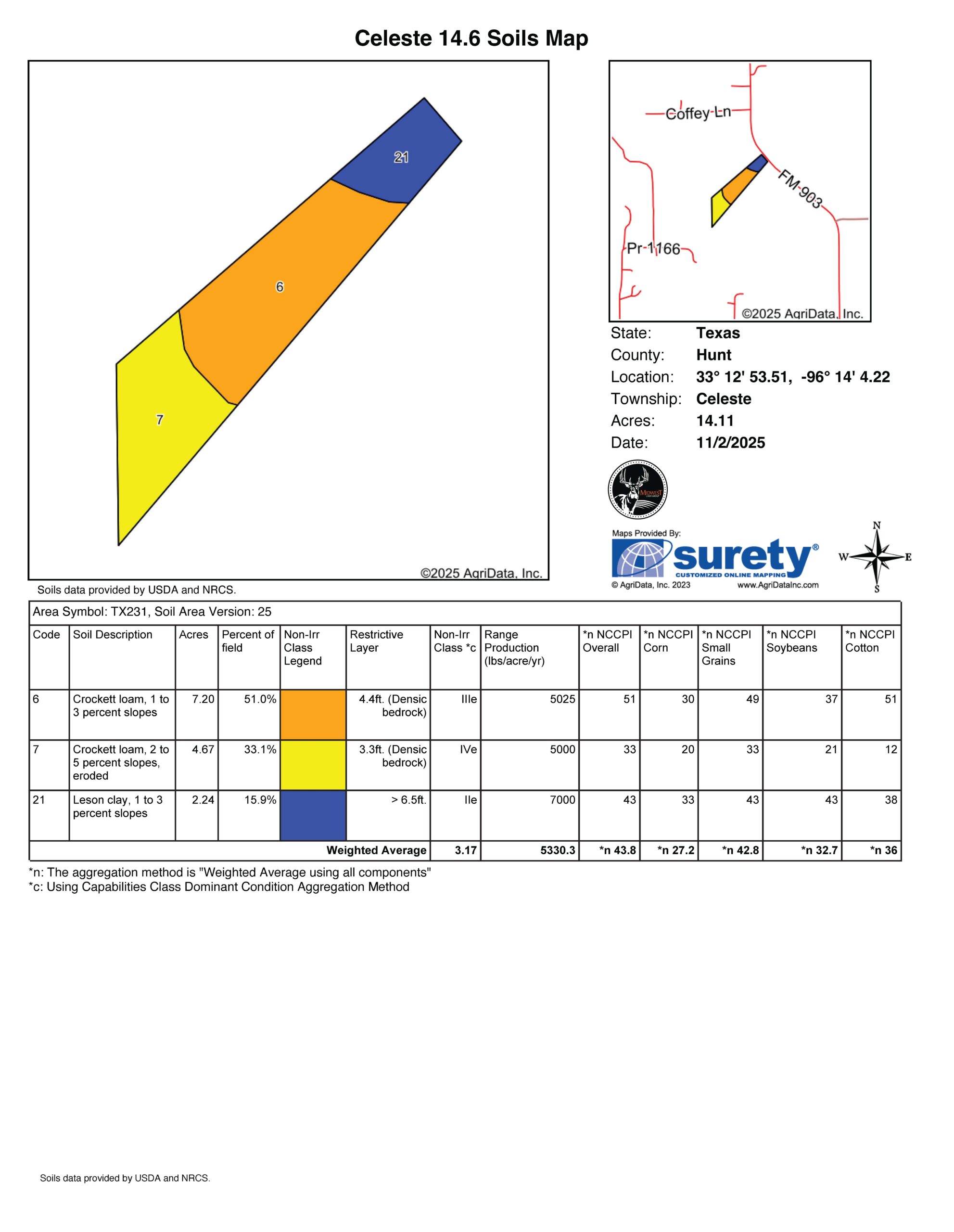 • 14.6 +/- acres of open and gently rolling countryside near Celeste, Texas