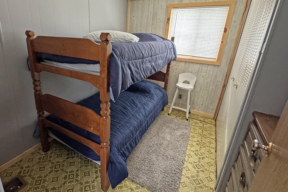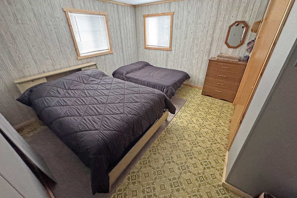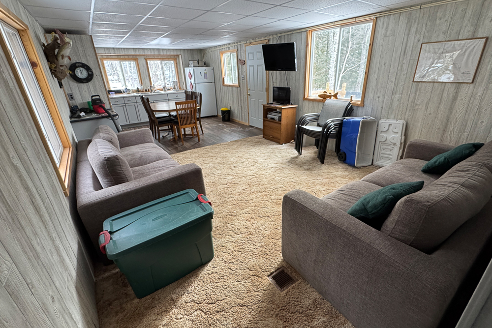 The cabin offers a complete kitchen, accessory-laden living room—with room for deer and fish mounts—two full bedrooms (4 beds) and one complete bathroom, comforted with central air, fully plumbed and well-supported infrastructure. The living quarters are complemented by a spacious deck overlooking an extended L-shaped dock and boat lift—perfect for cool summer evenings, grilling steaks and veggies. The yard offers firewood, a fire pit, and storage within the included container for kayaks, paddleboards, cabin accessories, and more.