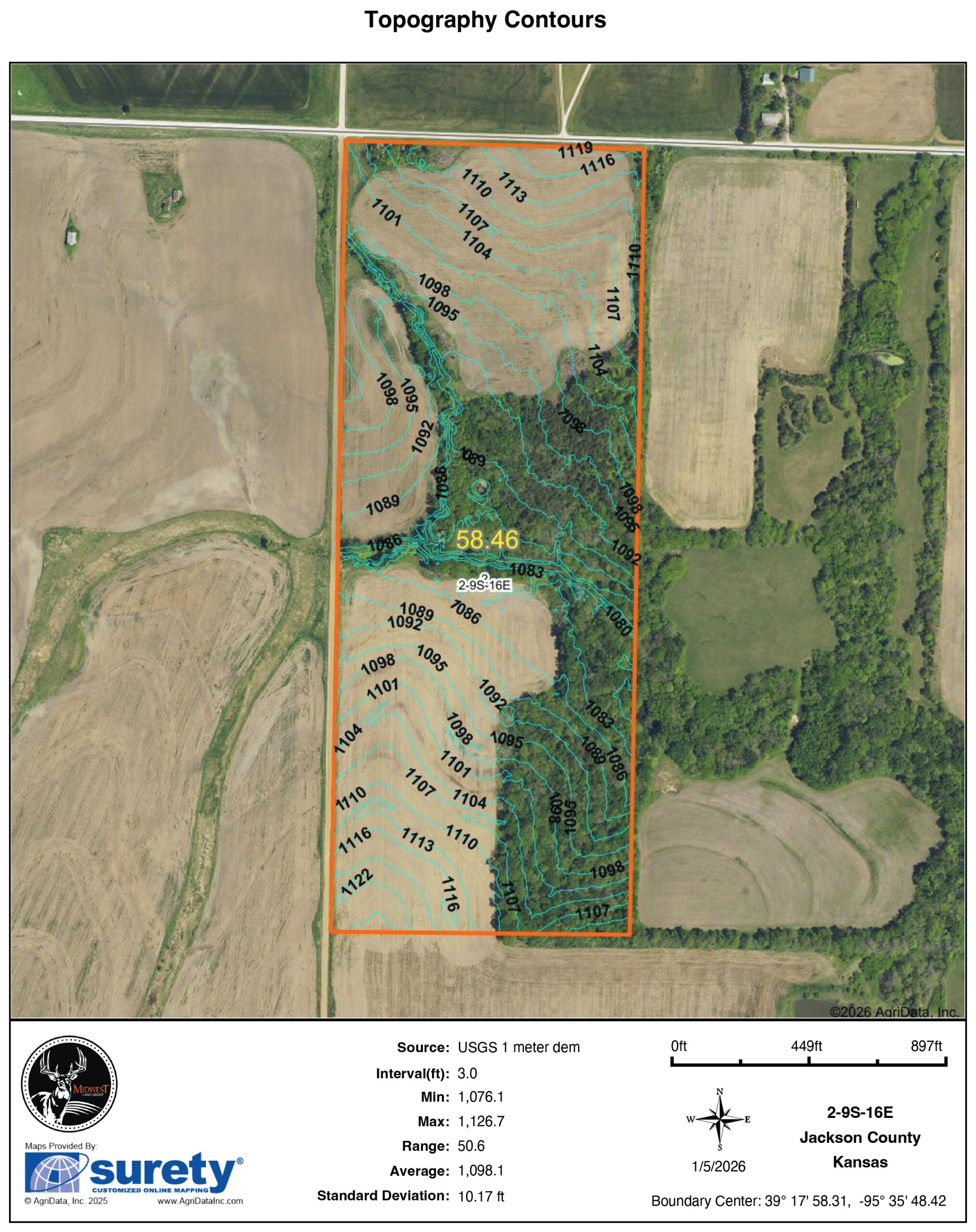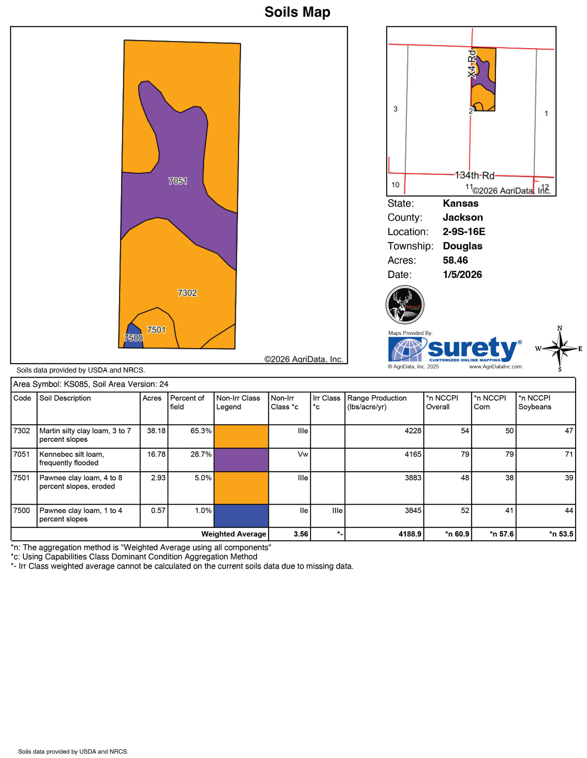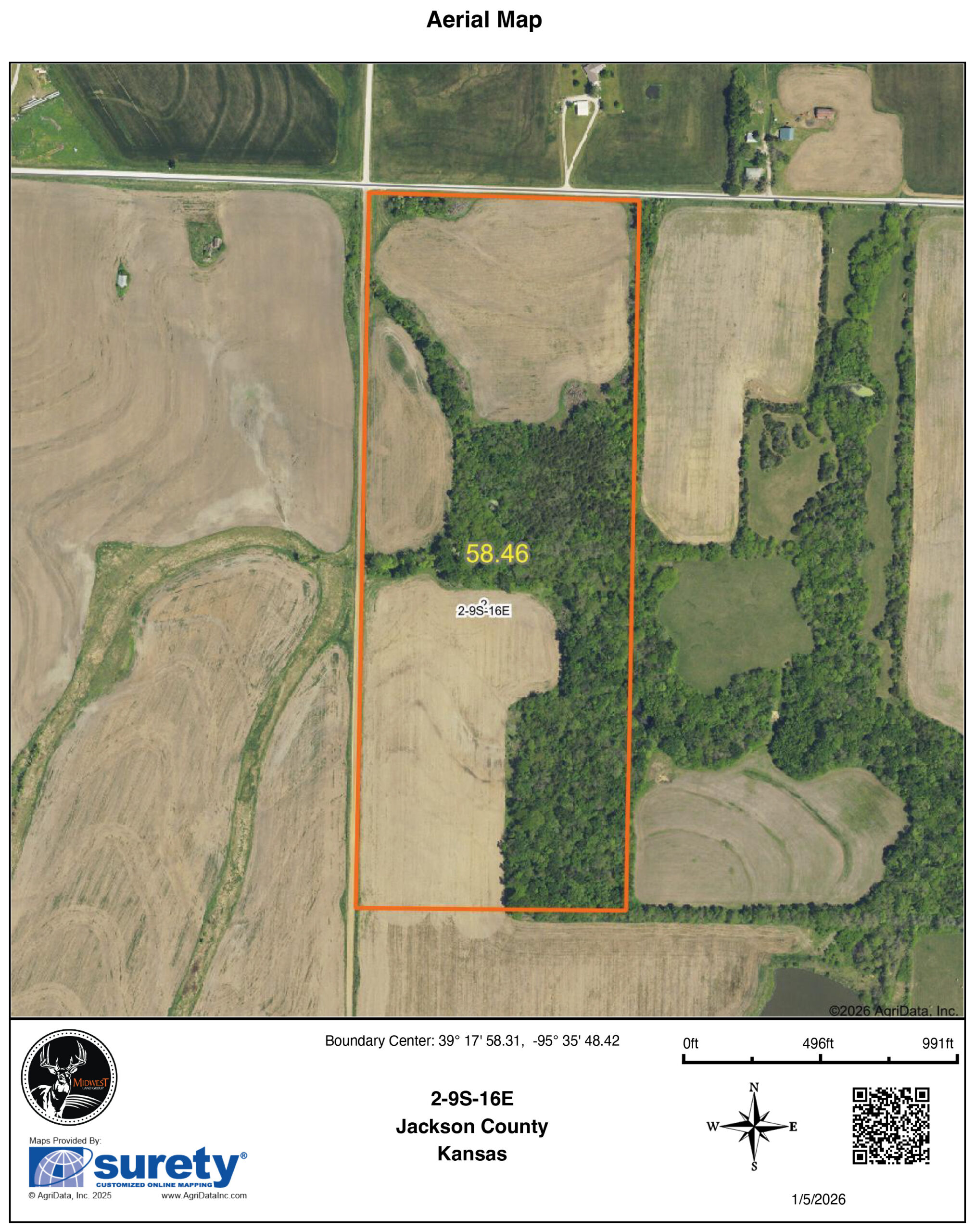 This diverse 58 +/- acre property offers an exceptional blend of income potential, build opportunity, and recreational appeal in a desirable location. With road frontage on two sides and access from a well-maintained gravel road, the property provides convenient entry and multiple options for future use.Approximately 30 +/- acres are currently tillable, offering productive farmland suitable for continued row crop production or reliable rental income. The current owner has expressed interest in continuing to farm the property at an attractive cash rent, creating immediate income potential for the new owner.