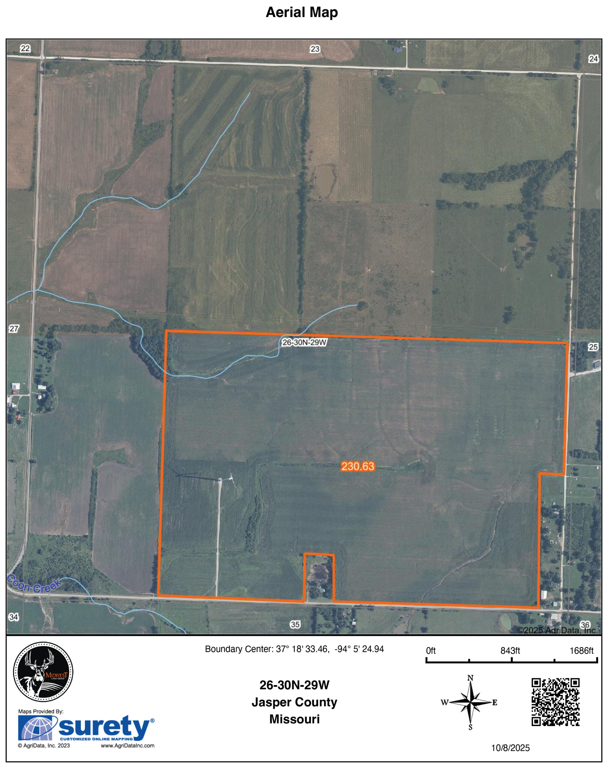 This 231.49 +/- acre tract provides the rare opportunity to own a Jasper County farm with exceptional potential for row crop farming and windmill income. The ground consists primarily of Class 2 and 3 soils, with a majority being Maplegrove, Newtonia, and Carl silt loams. Waterways and terraces are in place, and the farm is currently growing double crop soybeans. An income-producing windmill was installed and is paid annually.If your desire is livestock, the ground would be exceptional for grazing winter wheat, rye, or fescue. The level farm ground provides great access off blacktop road to the south and another entrance on the east side. Contact land agent Kellen Bounous today to schedule a showing.