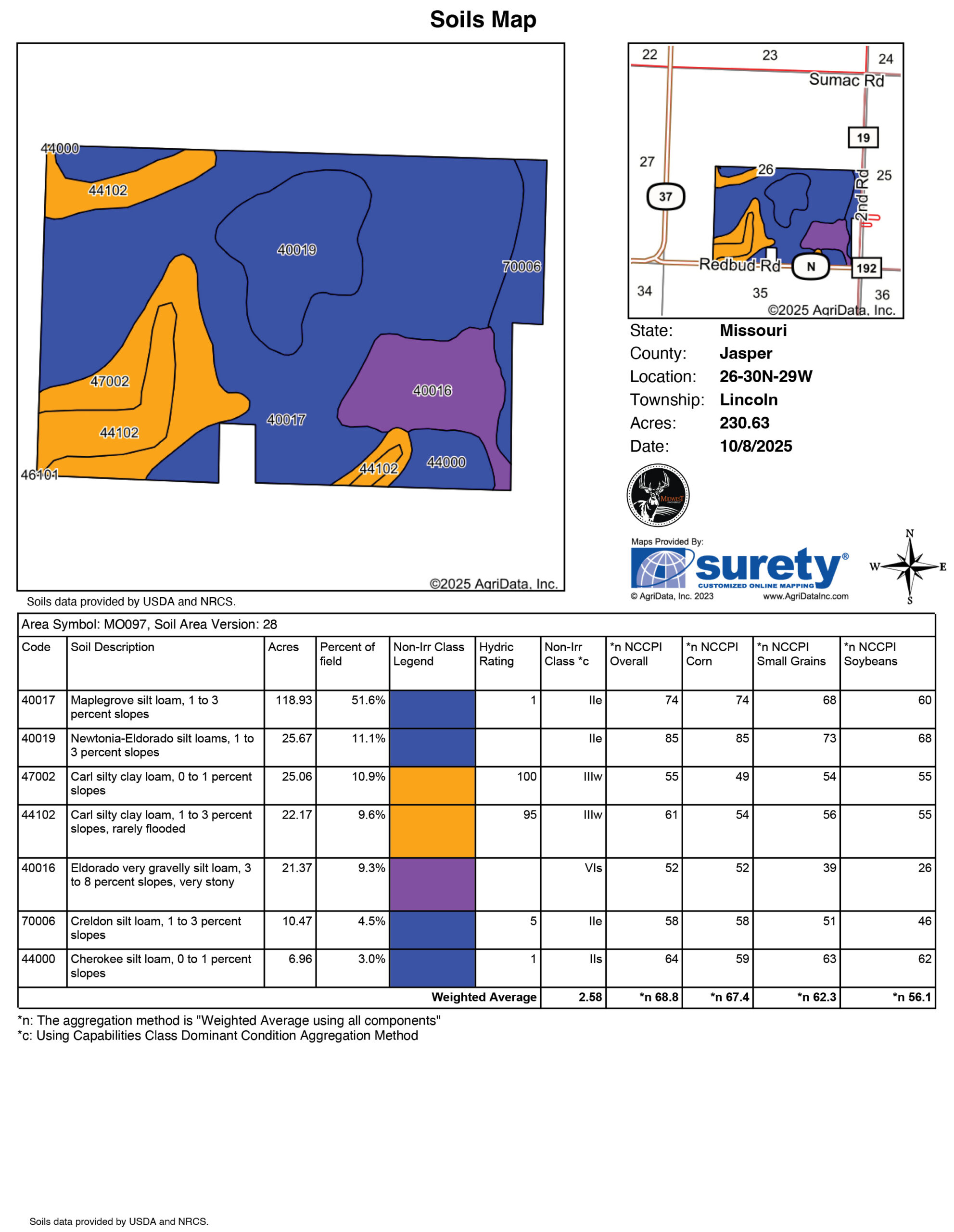 - Maplegrove, Newtonia, and Carl silt loams