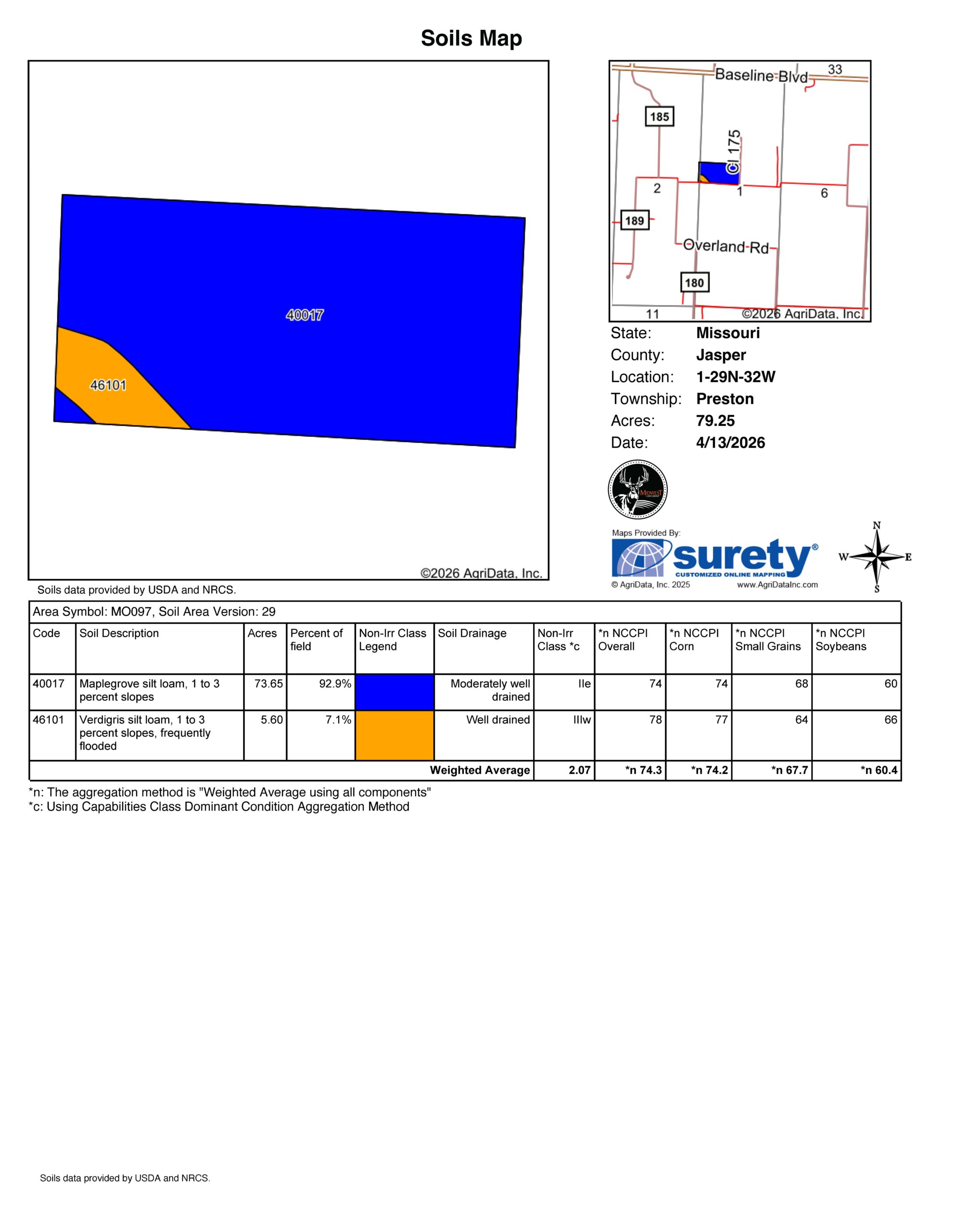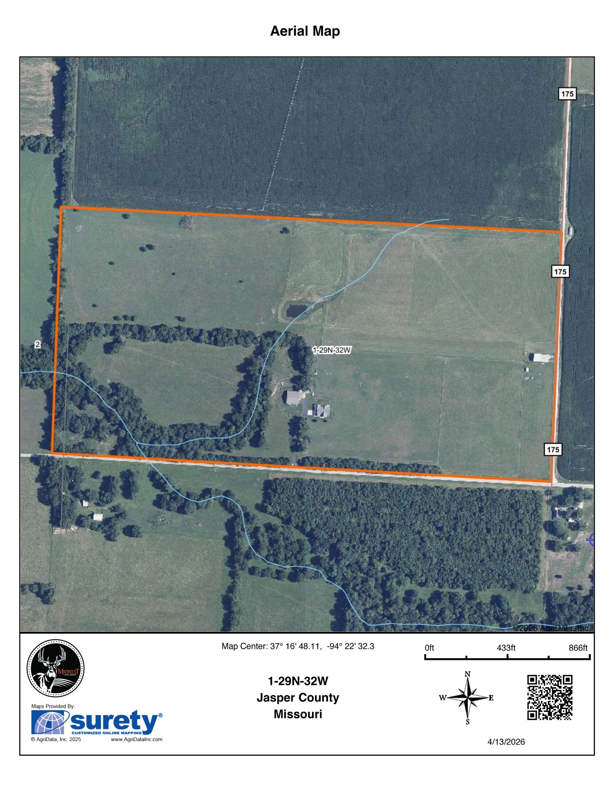 Welcome to Pembrook Ranch, a premier working cattle farm in Jasper County, Missouri! The minute you pull through the gated entrance and down the paved driveway, you begin to see how special this farm really is. Meticulously maintained and thoughtfully crafted, this pristine 79.58 +/- acre property offers the perfect blend of productivity, comfort, and rural beauty. Lush, well-maintained pastures featuring primarily Class II Maplegrove silt loam soils provide an ideal foundation for grazing and hay production. The farm is fully fenced and cross-fenced, complemented by two cattle waterers and an additional on-demand well to ensure reliable water access year-round. A large, scenic pond and wet-weather creek enhance both the functionality and recreational appeal of the land.