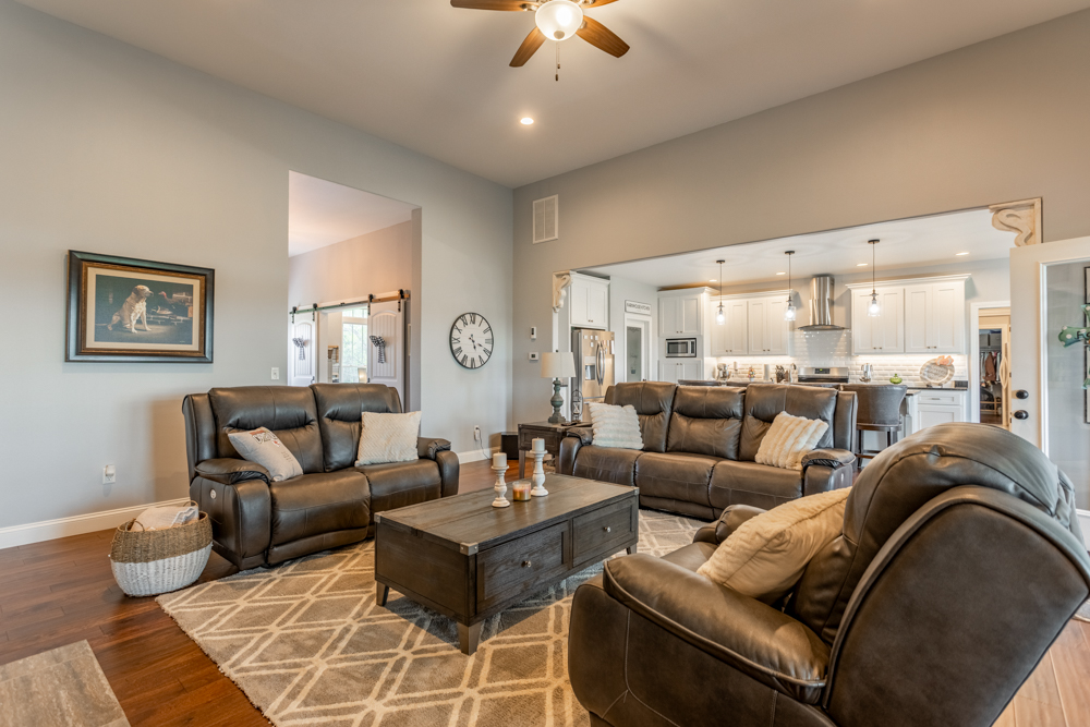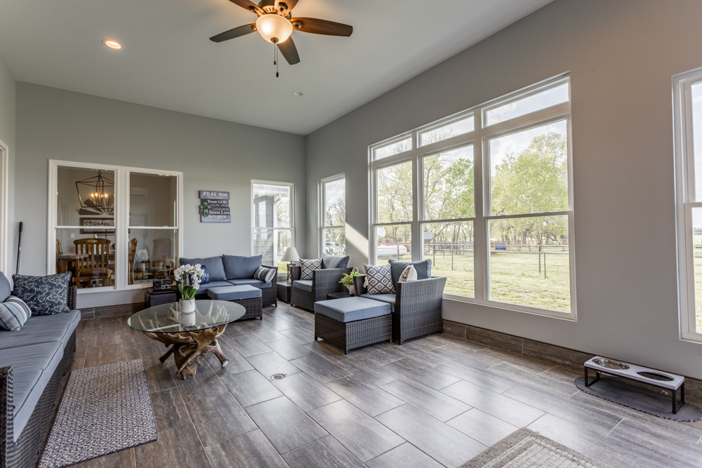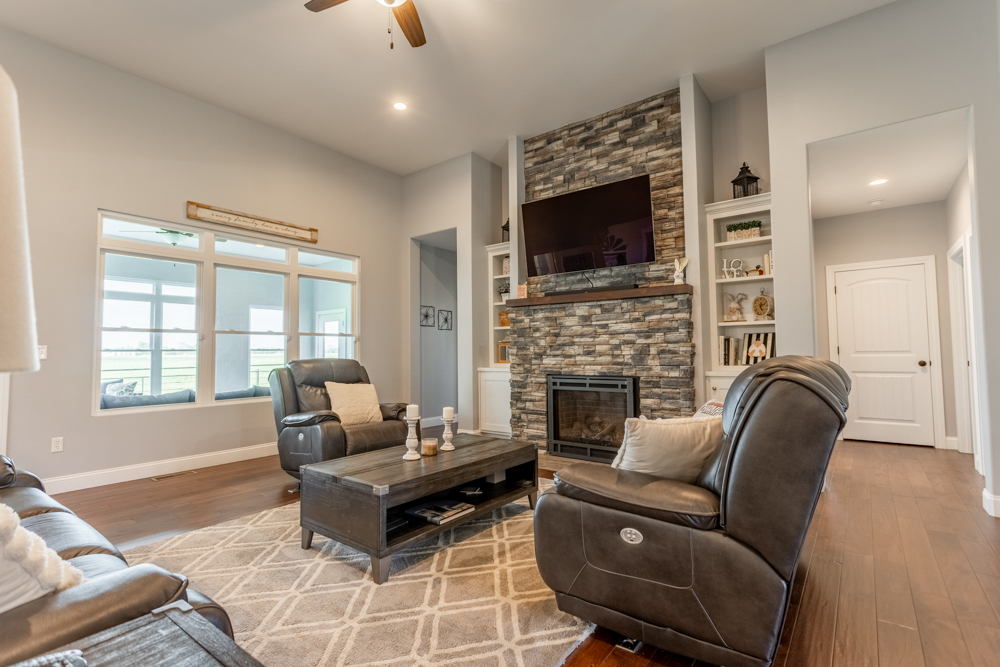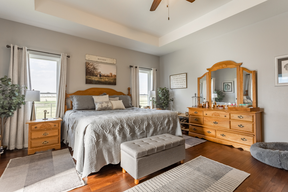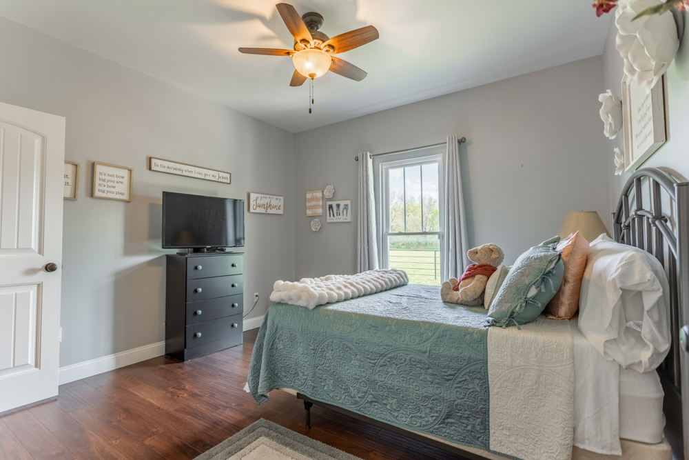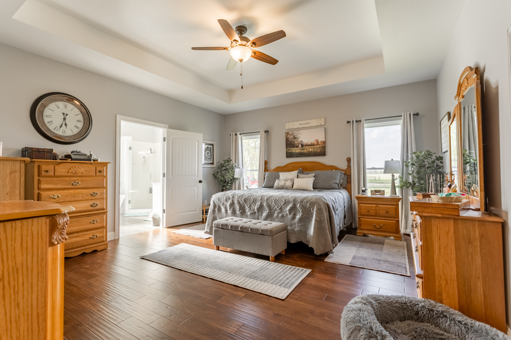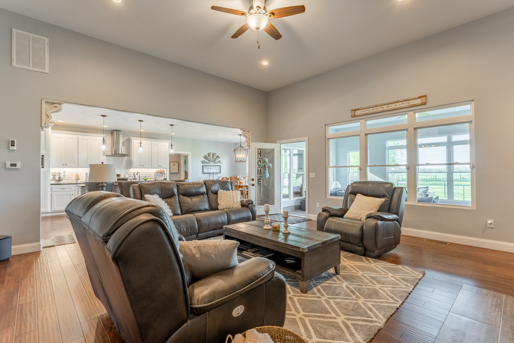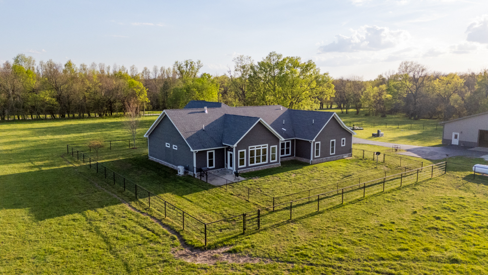 At the heart of the property sits a beautifully crafted 4 bedroom, 3 bath custom-built home offering 3,022 square feet of thoughtfully designed living space. Upon walking through the front door, you are met with the large great room featuring extra tall ceilings and a beautiful stone fireplace. The kitchen area boasts granite countertops, a large pantry, custom-built cabinets, and a gas stove. Enjoy your morning coffee while relaxing in the stunning sunroom overlooking the lush pastures. The spacious master bedroom has a large walk in closest and bathroom with a separate tub and shower. A large guest bedroom features its own bathroom, while two additional bedrooms share a Jack and Jill bathroom. No farmhouse is complete without an essential mud room with built-in lockers for storage and a place to kick off those boots after a long day.