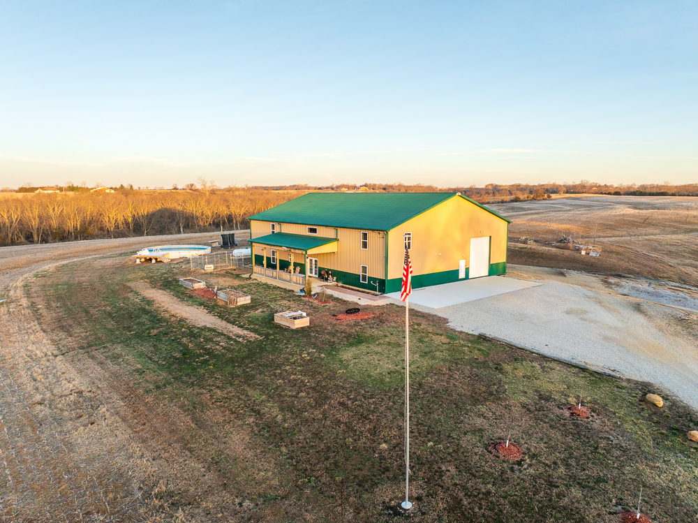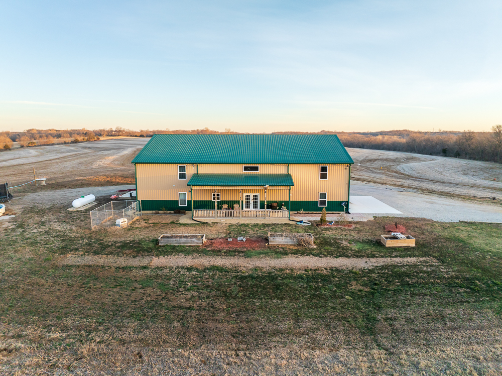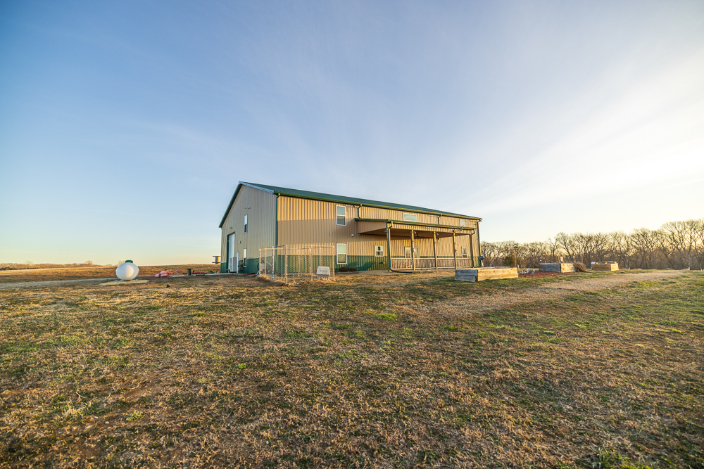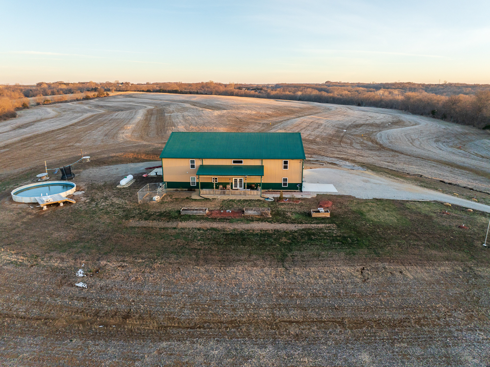 Set at the end of a long, secluded driveway and perched atop a scenic hilltop with nearly 100 feet of elevation change, this exceptional custom-built barndominium on 66 +/- acres offers a rare combination of privacy, craftsmanship, and efficiency. Surrounded by sweeping views of the Kansas countryside, this property is equally suited as a full-time residence, private retreat, or premier hunting getaway.