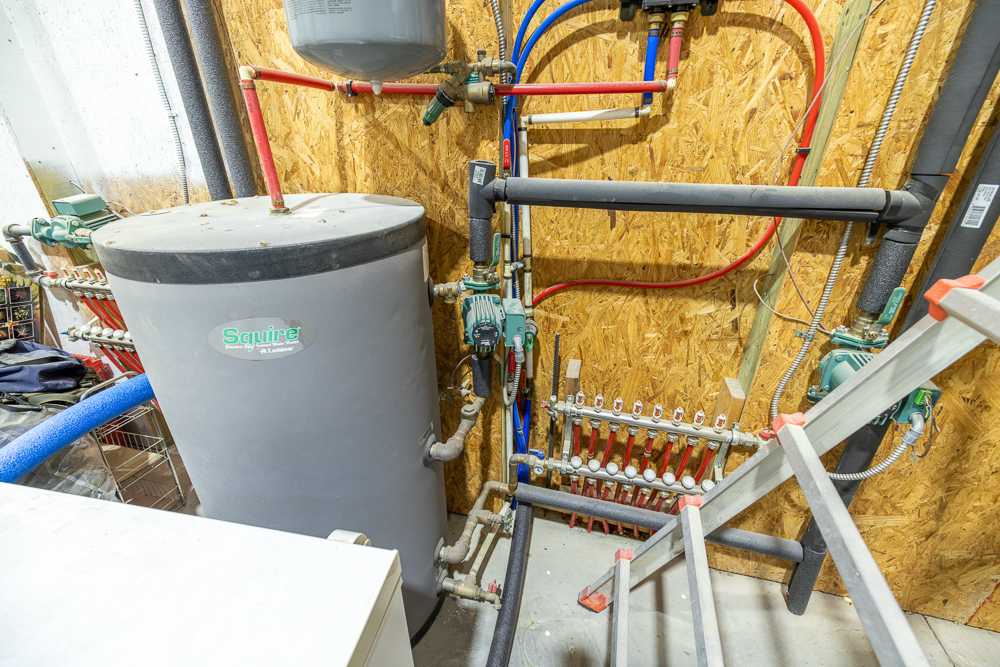 Built with 2"x6" construction and completed in 2022, this home was designed with both durability and energy efficiency in mind. The living quarters feature radiant in-floor heating powered by an on-demand boiler, delivering consistent, comfortable heat while maintaining impressively low propane usage. Combined with quality insulation, this results in minimal heating costs and year-round efficiency. Additional features include LED lighting throughout, a tankless water heater, 200-amp electrical service to the home, and a 50-amp RV hookup.