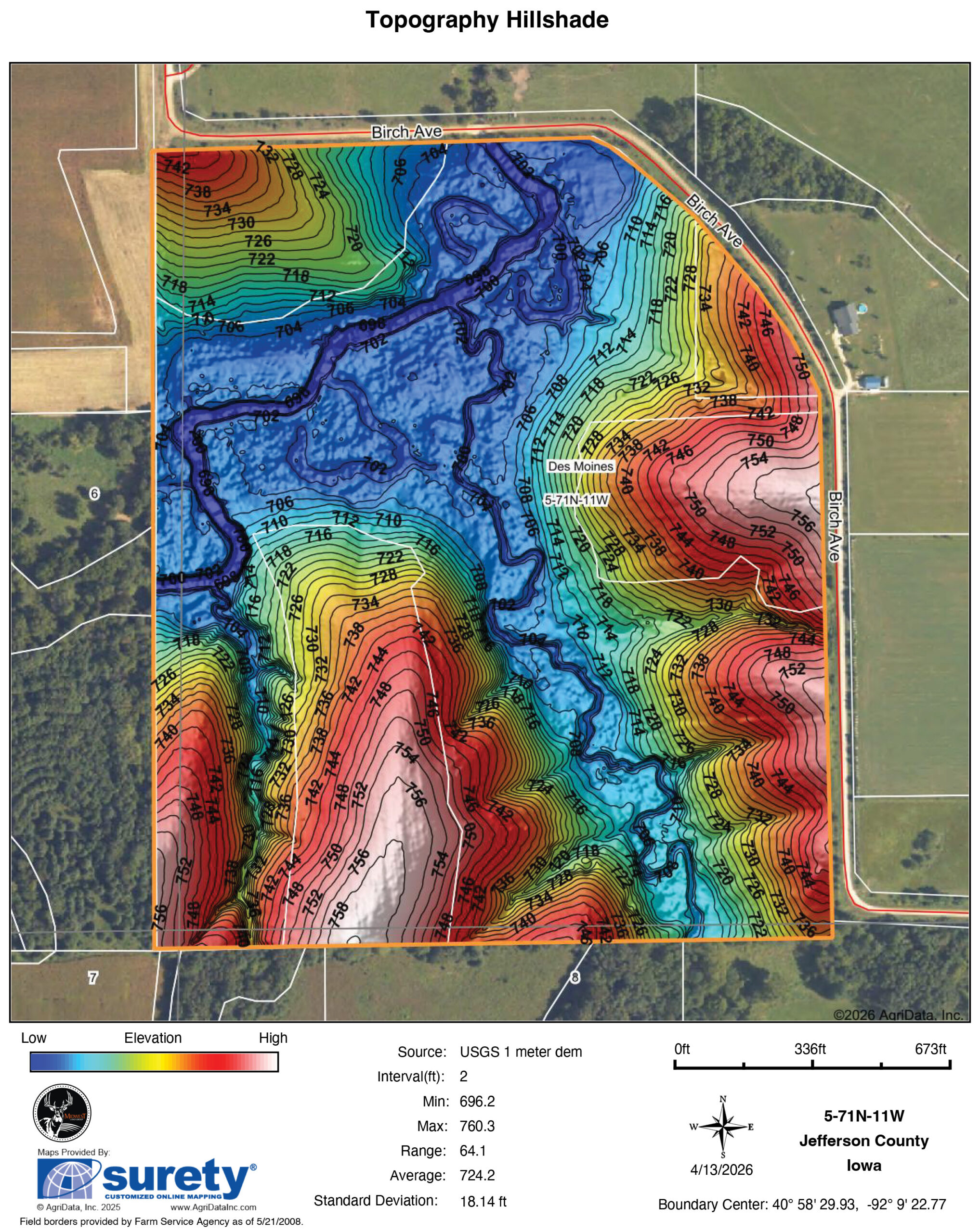This 72 +/- acre farm in Jefferson County offers strong hunting and recreational appeal. The surrounding area is largely made up of row crop ground, allowing this property to stand out as a pocket of cover that naturally attracts and holds deer and turkeys. Farms with this combination of habitat, water, and access are getting harder to find in this size range.The farm is well-balanced from a habitat standpoint. A combination of thick bedding cover, open hardwood timber with mature white oaks and walnut, approximately 6 acres of established food plots, and Rock Creek provides everything needed to hold wildlife year-round. The terrain—made up of ridges, ridge tops, and creek bottoms—naturally funnels movement and creates multiple high-quality stand locations. Deer and turkey sign is consistent throughout the farm. Multiple turkeys were heard gobbling the morning of the photos, and trail camera history proves quality deer genetics in the area. The layout allows the property to hunt bigger than its size and supports multiple setups without overpressuring the farm.