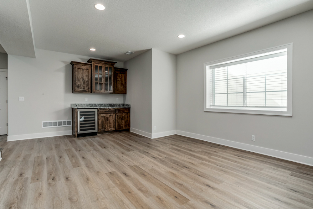 - Finished lower level with rec room and flex space