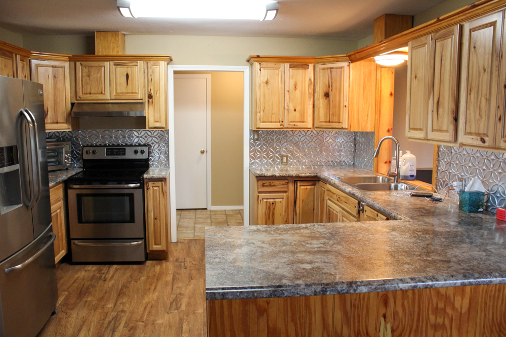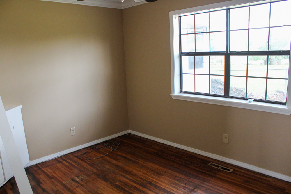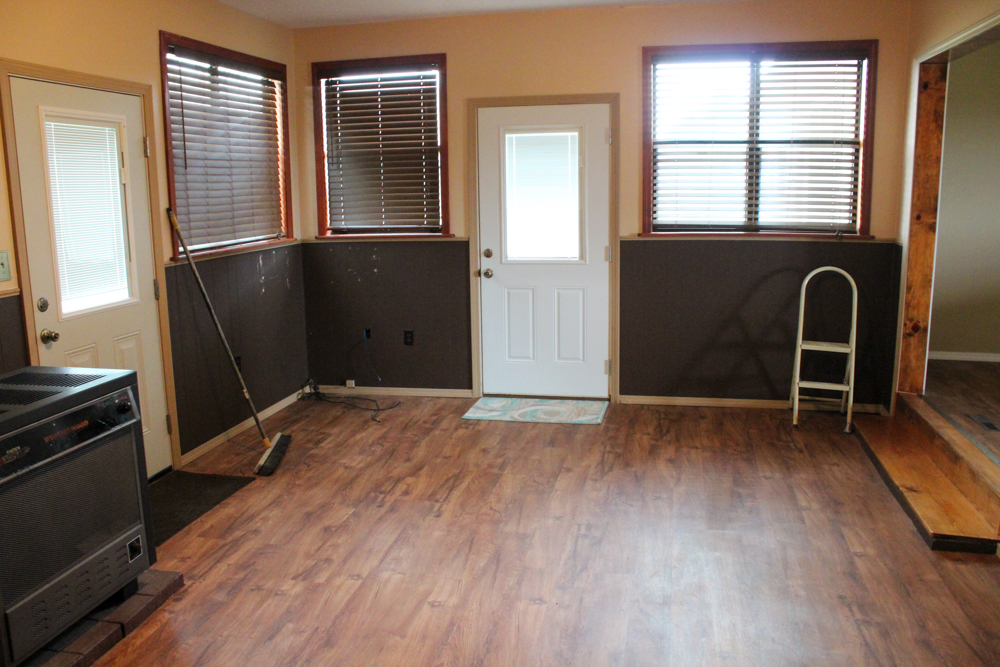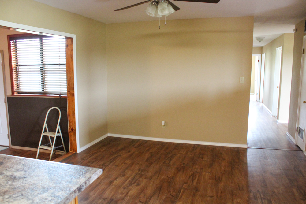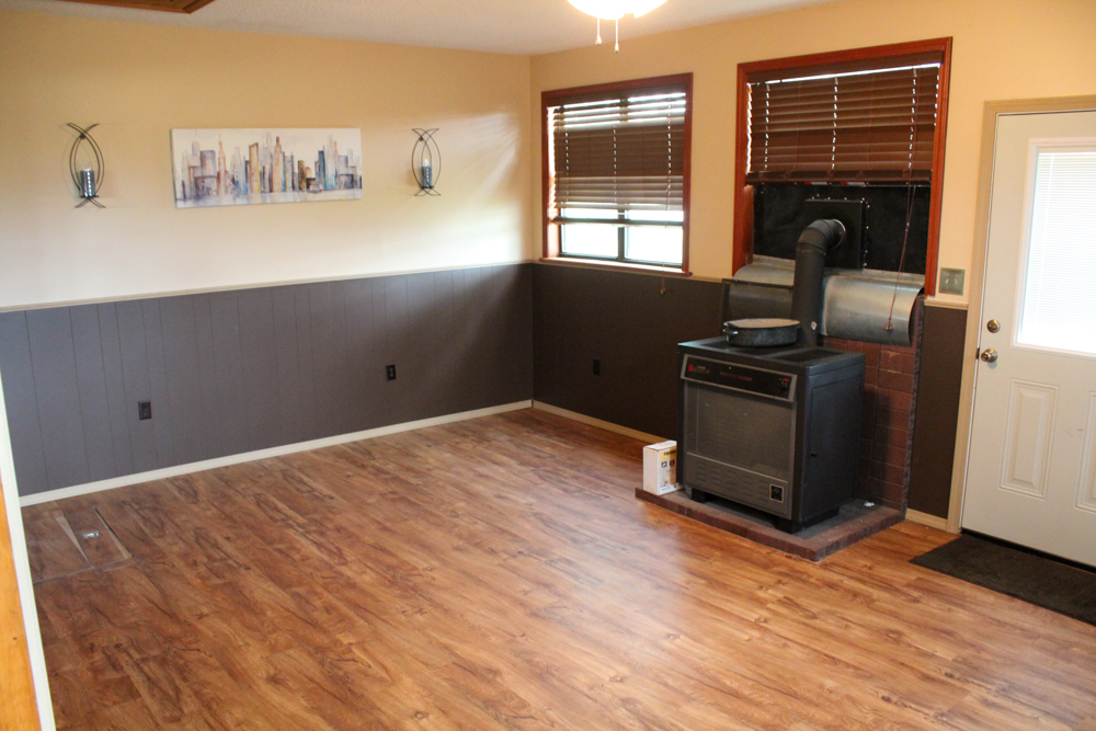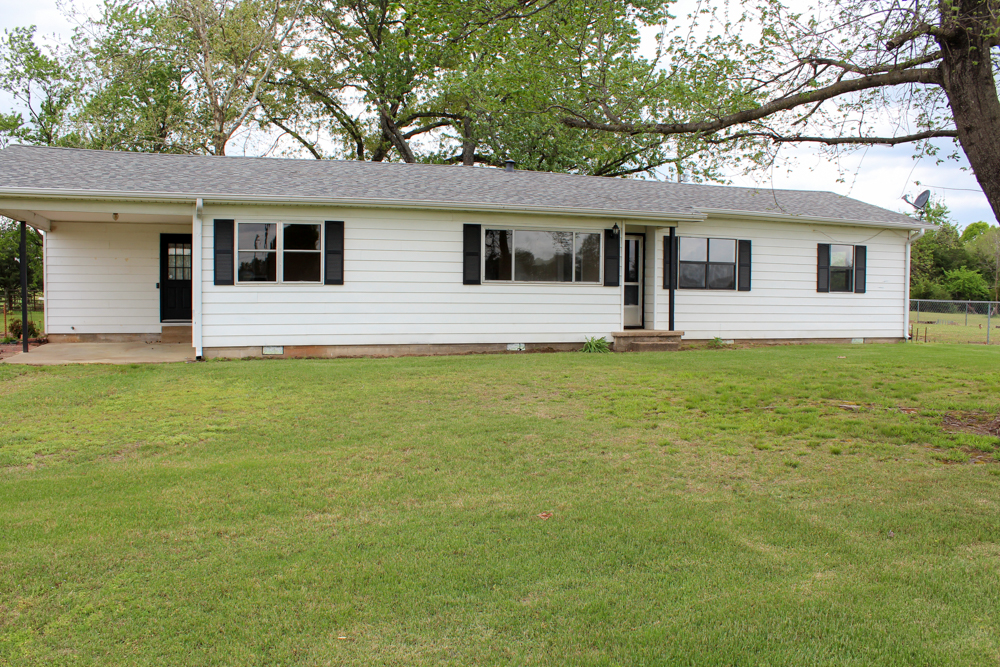 The residence is a well-maintained four-bedroom, two-bathroom home. It features a spacious living room and den area, with a combination of hardwood and vinyl laminate flooring. The entire interior has been recently repainted and is prepared for immediate occupancy. The exterior is finished with steel siding and includes a chain-link fenced area on the north side of the home. The yard is neatly kept, with Zoysia grass present in the front of the residence. Also included is a one-car carport attached to the home.