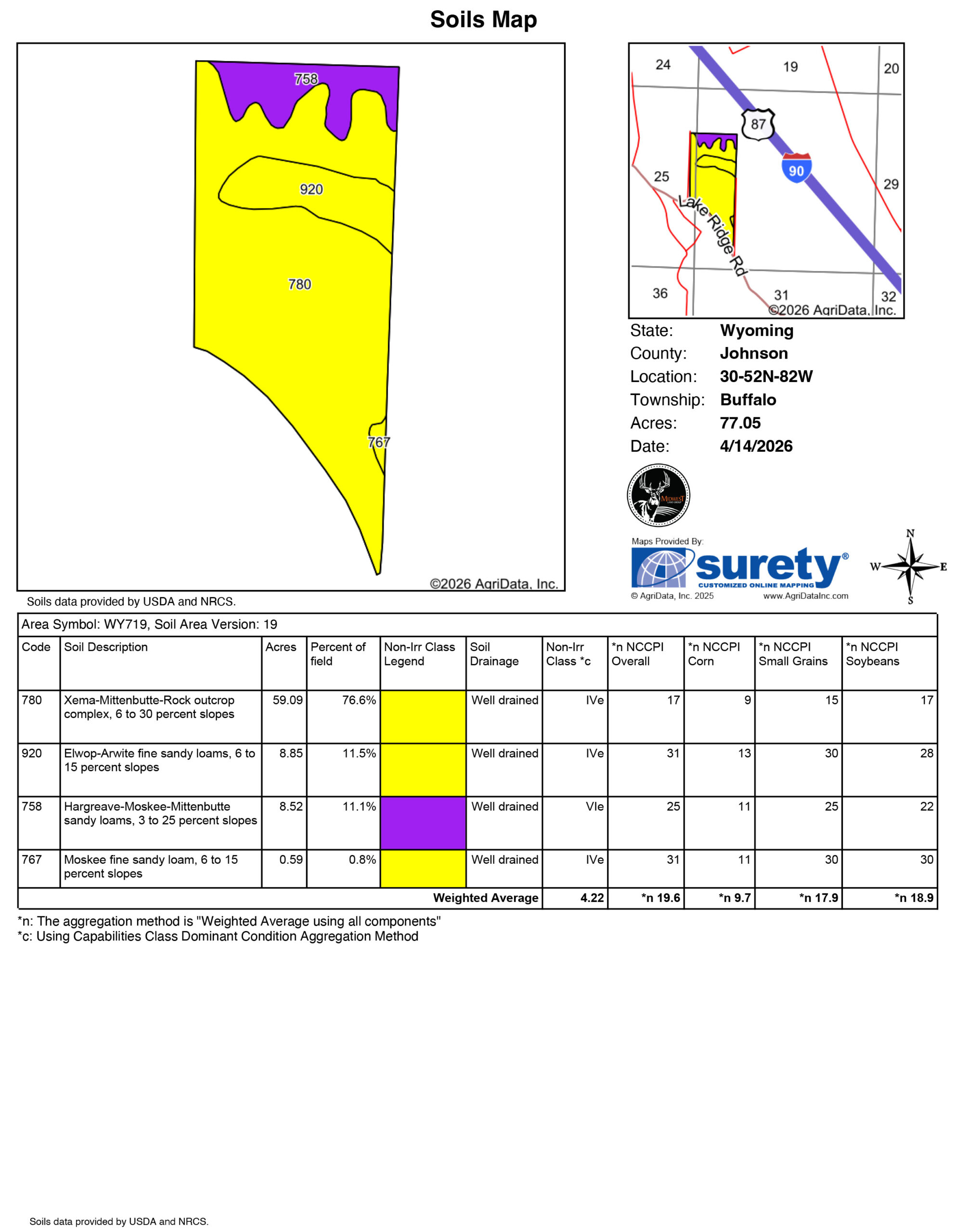 If you are searching for a larger property to build your dream home on at the base of the Bighorn Mountains, this 77 +/- acres checks all of the boxes!! To the west, you can see the Cloud Peak Wilderness, and to the east, you have views of Lake De Smet. With all of the surrounding beauty, you can choose your build site from just about anywhere on this parcel. Location is key! Play on the lake in the summers and hunt the mountains in the fall! Whatever your hobbies, there is an abundant opportunity within a short distance of this property.As you arrive at the property, you will see that there are already roads in place on 3 sides, allowing for easy access onto your new land. With power and a water well already in place, you can save time and money and start on your building plans. There is an automatic waterer installed near the well to provide water for your livestock. There is fencing in place on 3 sides of the property currently, and good grass for grazing animals. The land is rolling slightly downhill from the ridge road on the south side. With no HOA or covenants, you are free to build as you see fit. This acreage is already split into 2 parcels and has been surveyed, which would allow you to build on each or sell one parcel off to offset your new building costs. No matter what direction you go with this land, you can't go wrong. Land with these views does not come to the market very often, let alone with the infrastructure in place already!! Give Karl Ward a call at (307) 387-9677 to schedule a time to go take a closer look.