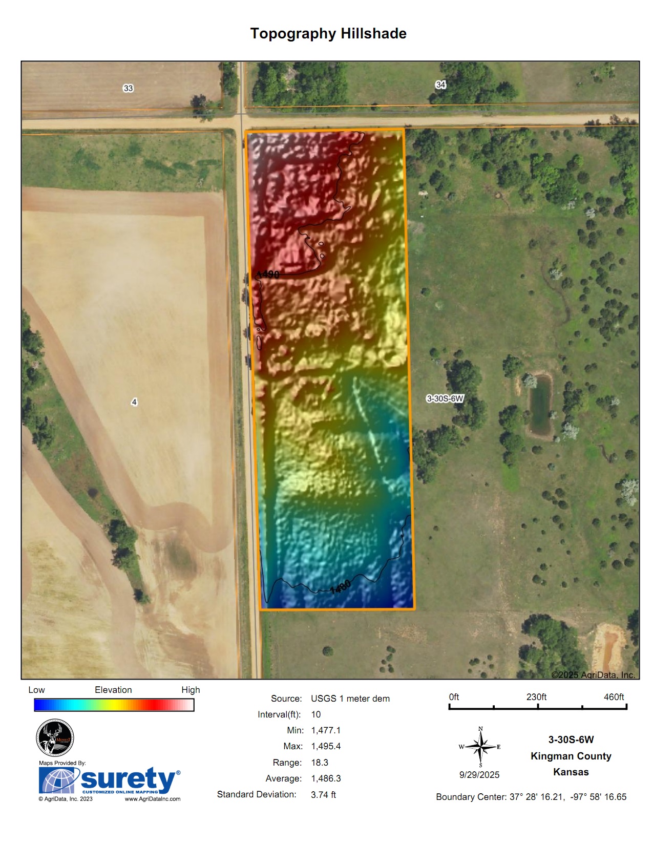 In southeast Kingman County are 12 +/- acres of rustic living quarters and outbuildings. The rolling hills of tall native grass, cottonwood groves, and cedar thickets make for never-ending grazing potential and wildlife habitat. To be surveyed from a larger tract and offered in various sizes. There are multiple drilled wells for an adequate water supply to the farmyard.