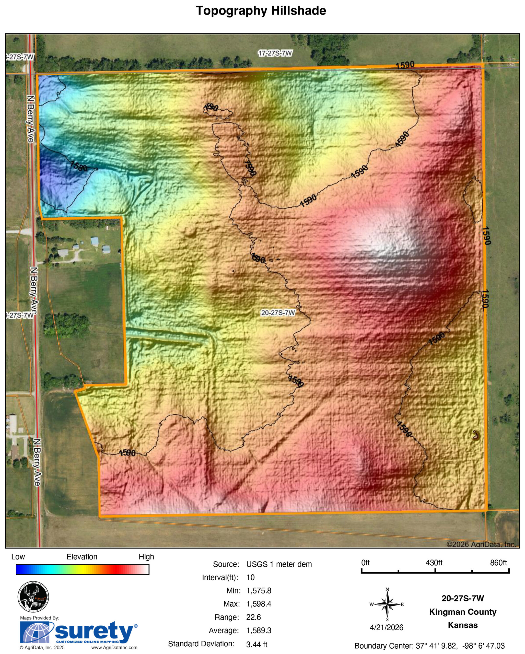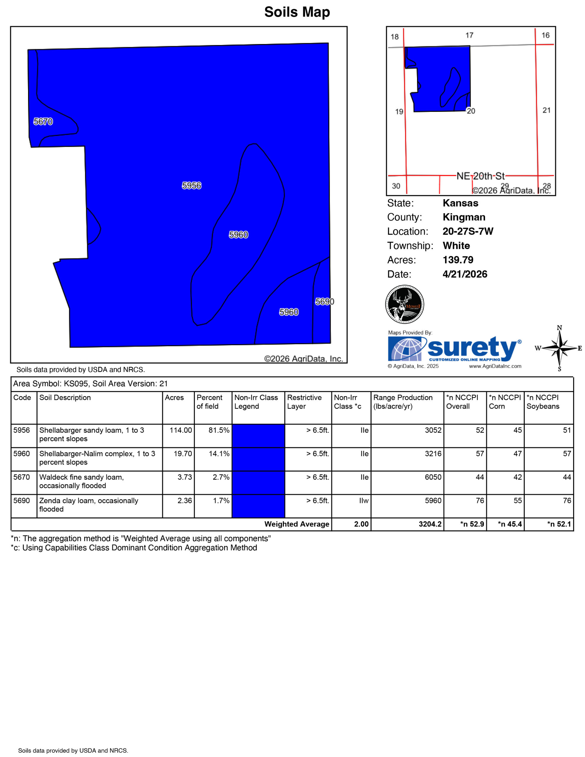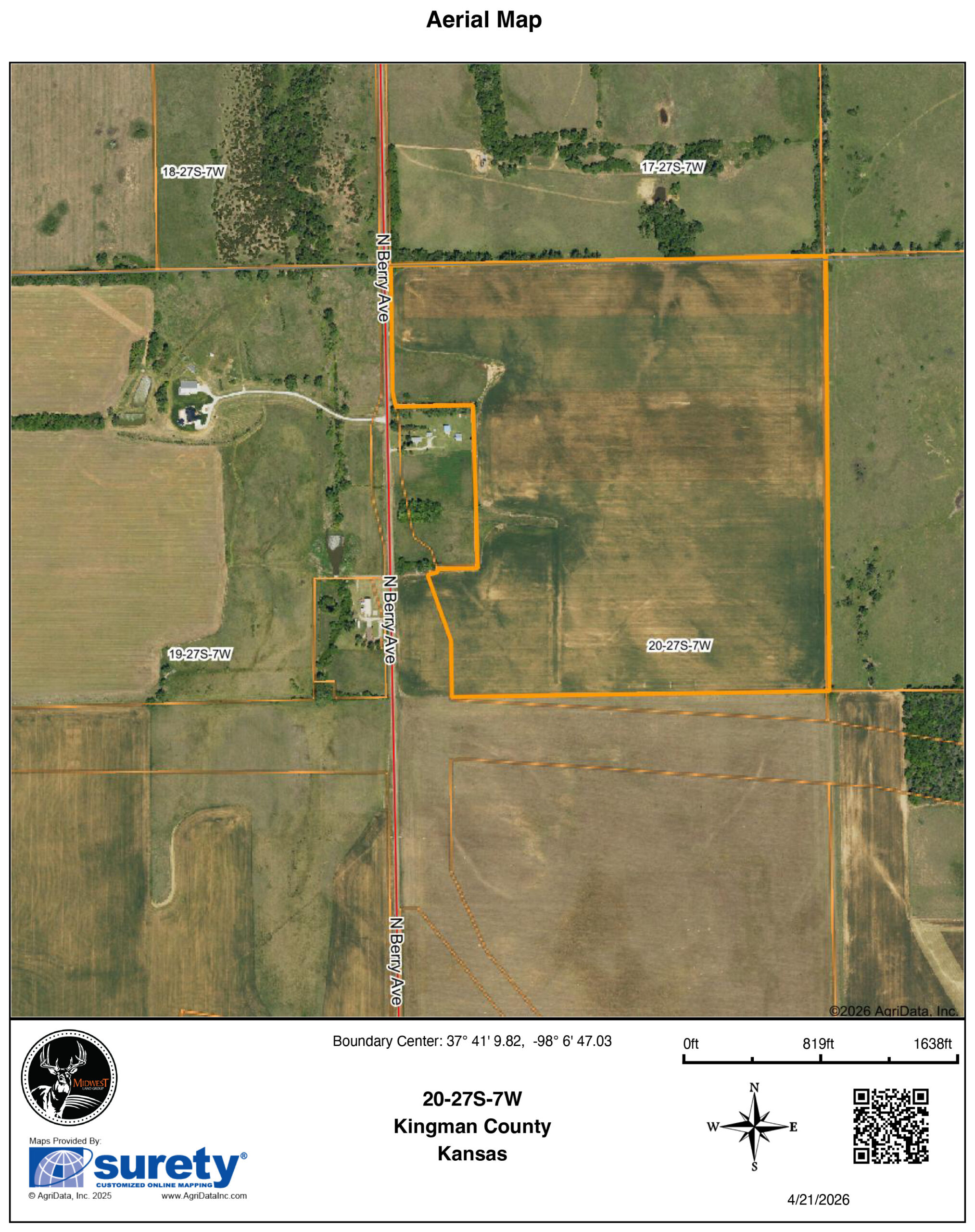 Just north of the city of Kingman is 140 +/- acres suitable for short and long-term investment. The tract sits on paved Berry Avenue. The tillable land has a history of growing excellent yields of wheat, milo, and corn. The farm is currently planted to wheat; possession will be subject to tenant's rights. The farm boasts all Class II sandy loam soils with an NCCPI index of 53. Add this farm to your operation or investment portfolio and use it as leverage to gain an advantage in the negotiations of the future.The Kansas Department of Transportation plans to bypass 54 Highway around the city of Kingman, passing directly by this farm. This farm will be right off a planned exit ramp onto Berry Avenue. Short-term, this could be needed for construction, lay-down yard, material storage, etc. Long-term, this farm right off the exit could generate revenue from billboard advertising, development of a business that services travelers, or as potential build sites for custom homes, which have been popular in the immediate area. Just 20 miles from the city of Cheney and 24 miles from Garden Plain, steep development land prices and influence from the Wichita Metro are pushing this way.