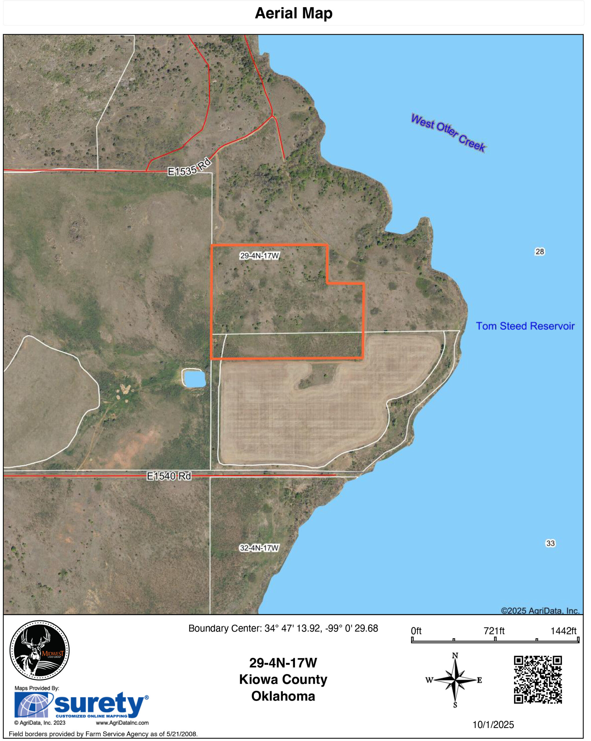 Discover a unique 27.5 +/- acre recreational property located just a quarter mile from Tom Steed Reservoir in Kiowa County, Oklahoma. This exceptional parcel borders the Mountain Park Wildlife Management Area and offers one of the few privately owned opportunities this close to the lake, sitting less than 300 yards from the shoreline. With over 30 feet of elevation change and gently rolling terrain, the property provides an ideal canvas for a hunting retreat or secluded getaway. Deeded easement access through the WMA ensures convenient entry, while the remote location maintains the privacy and solitude that make this area so special. Evidence of a historic homestead hints at the property's potential as an off-grid escape in the heart of Southwest Oklahoma's most scenic landscape.