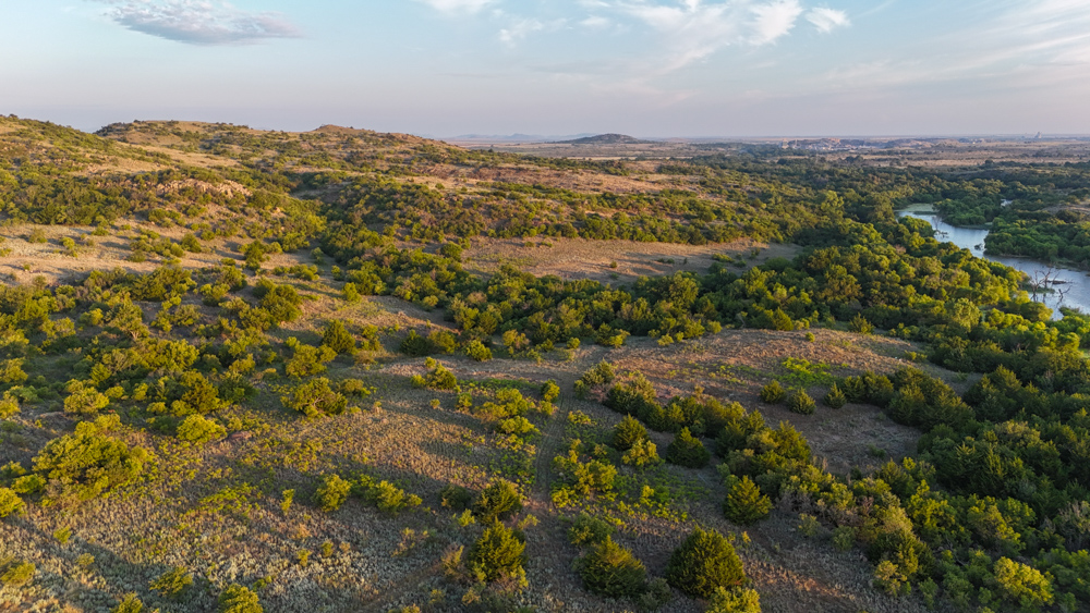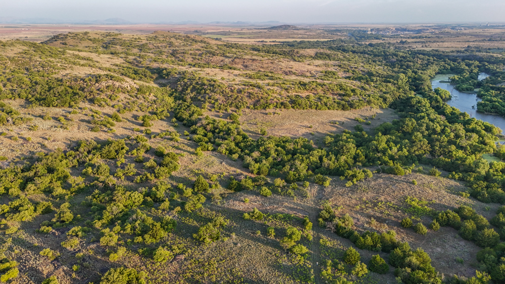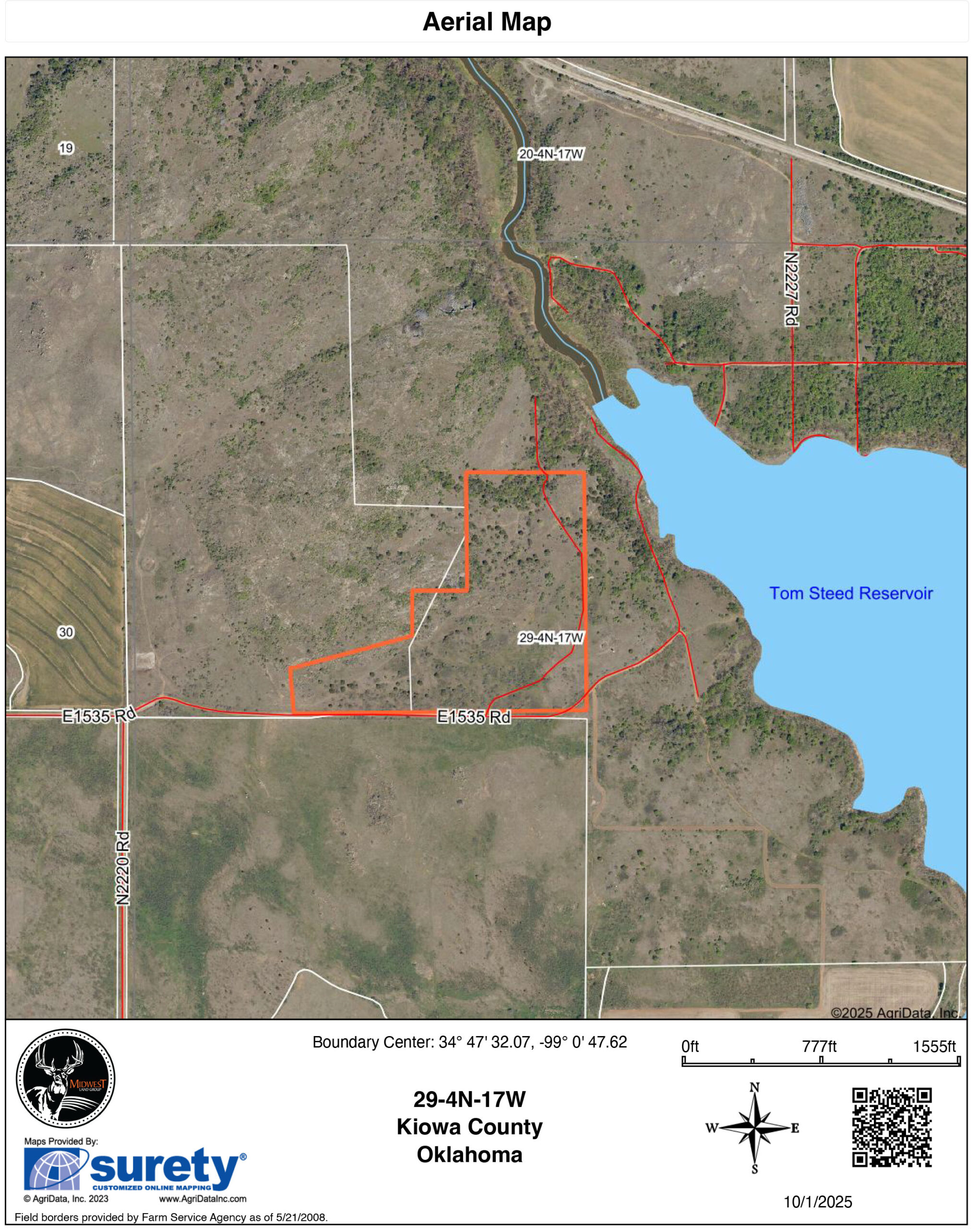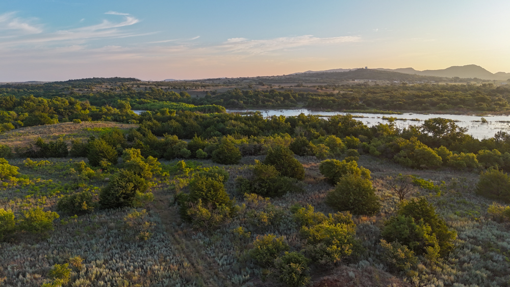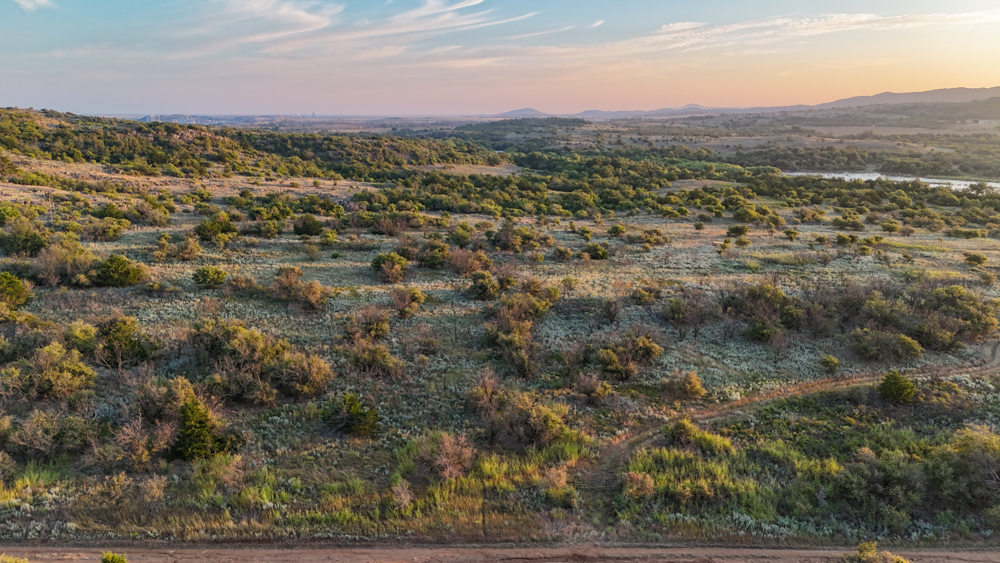 Discover an exceptional 30-acre recreational property offering one of the few privately owned parcels in close proximity to Tom Steed Reservoir in Kiowa County, Oklahoma. This remarkable parcel borders the Mountain Park Wildlife Management Area, providing immediate access to thousands of additional acres for outdoor pursuits. With dramatic topography featuring over 120 feet of elevation change, the property showcases the rugged beauty of the western Wichita Mountains descending toward the shoreline, which lies under 200 feet from the northeast property corner. The diverse terrain, combined with proximity to West Otter Creek as it flows into the reservoir, creates an exceptional wildlife corridor that supports an abundance of native species year-round.The landscape is a striking mosaic of native grasses interspersed with mature hardwoods and native trees, including black walnut, American elm, hackberry, chittamwood, and mesquite. This natural diversity offers stunning vistas of both Tom Steed Reservoir and the surrounding Wichita Mountains. The elevated western portions of the property deliver commanding views that showcase the best of Southwest Oklahoma's scenic beauty, while the lower elevations near the water provide easy access to the lake for fishing and recreation.