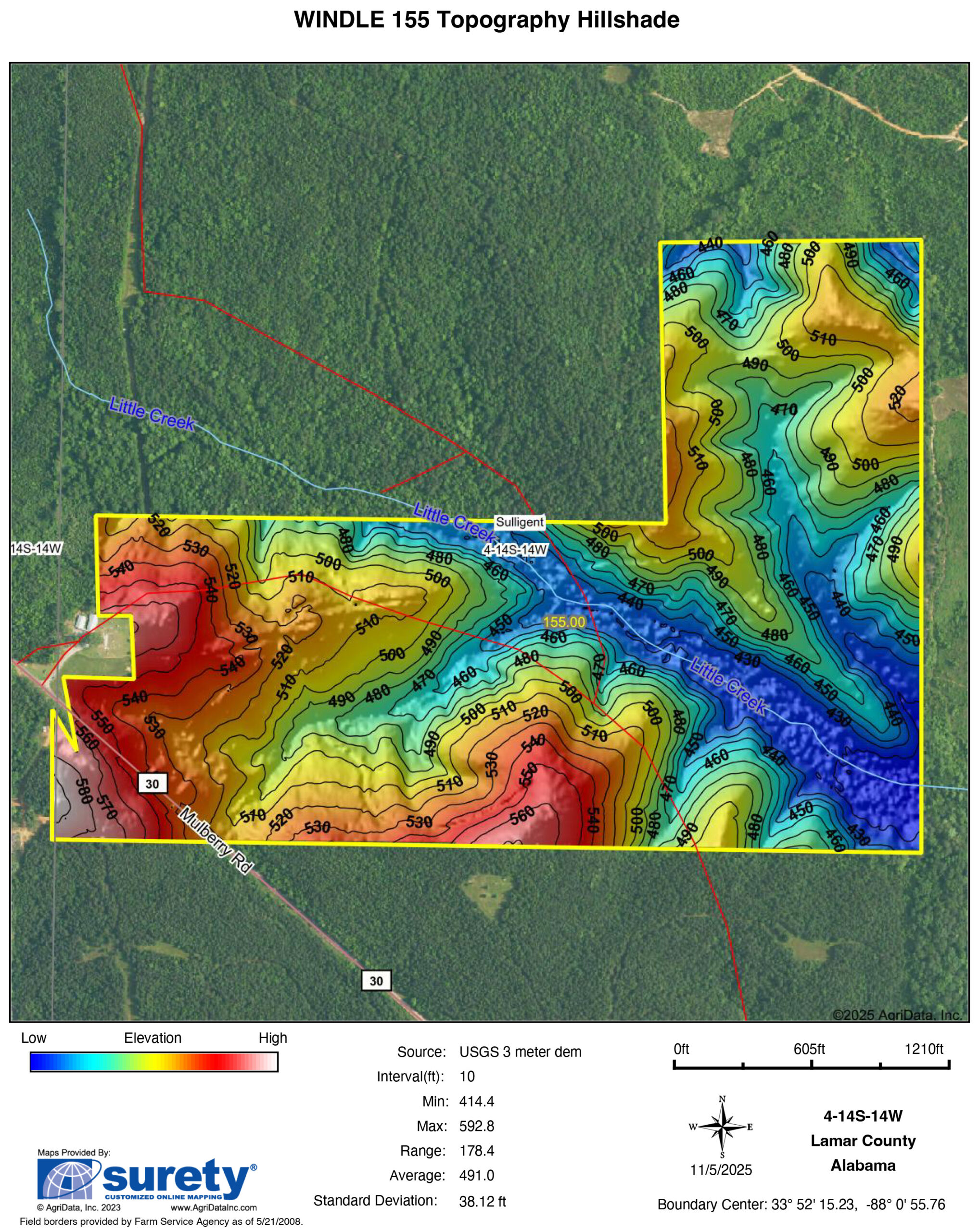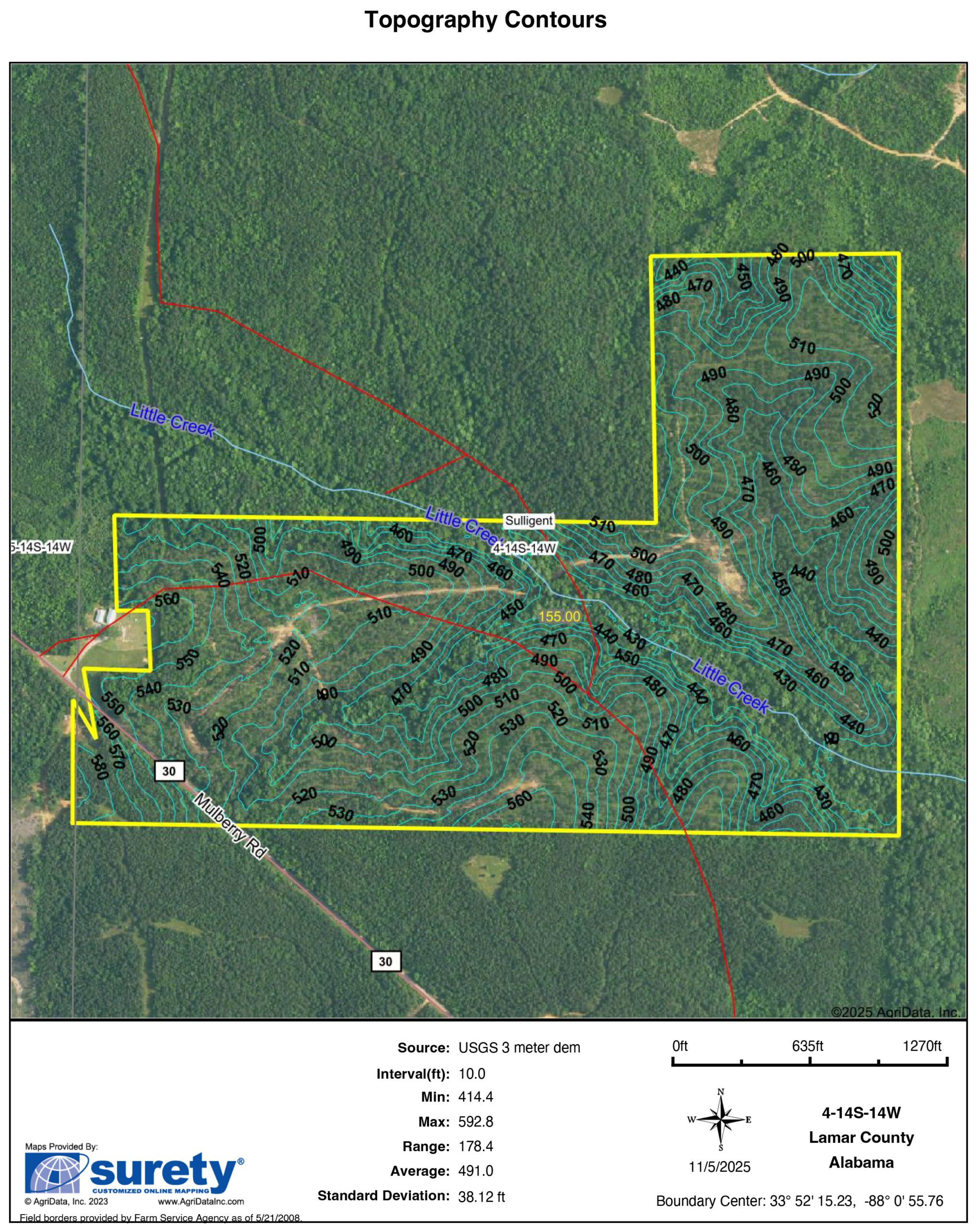 Discover the perfect blend of seclusion, convenience, and natural beauty on this exceptional 155 +/- acre property in Sulligent, Alabama. Whether you're searching for a weekend retreat, a future homesite, or a long-term timber investment, this tract offers impressive value and versatility. Existing openings provide excellent food plot locations, and the diverse landscape offers endless outdoor enjoyment, from hunting to hiking to exploring. The property includes 130 +/- acres of recently thinned and burned pine plantation, along with 25 +/- acres of hardwood bottom along scenic Little Creek. This mix creates a stunning landscape with strong future timber value.Loaded with wildlife, this tract is a true hunter’s haven. The combination of pine plantation, hardwood bottoms, and thick natural cover provides an ideal habitat for deer, turkey, and other game. Well-managed forest stands offer both immediate and long-term timber income potential, making this property an attractive option for timber investors. A well-maintained internal road system provides convenient travel through the property, along with additional interior trails for access to all areas of the tract. Power is available at the road, and water can be accessed by drilling a well, making it easy to build your dream cabin or country home. A private setting with excellent proximity to nearby towns and regional hubs: