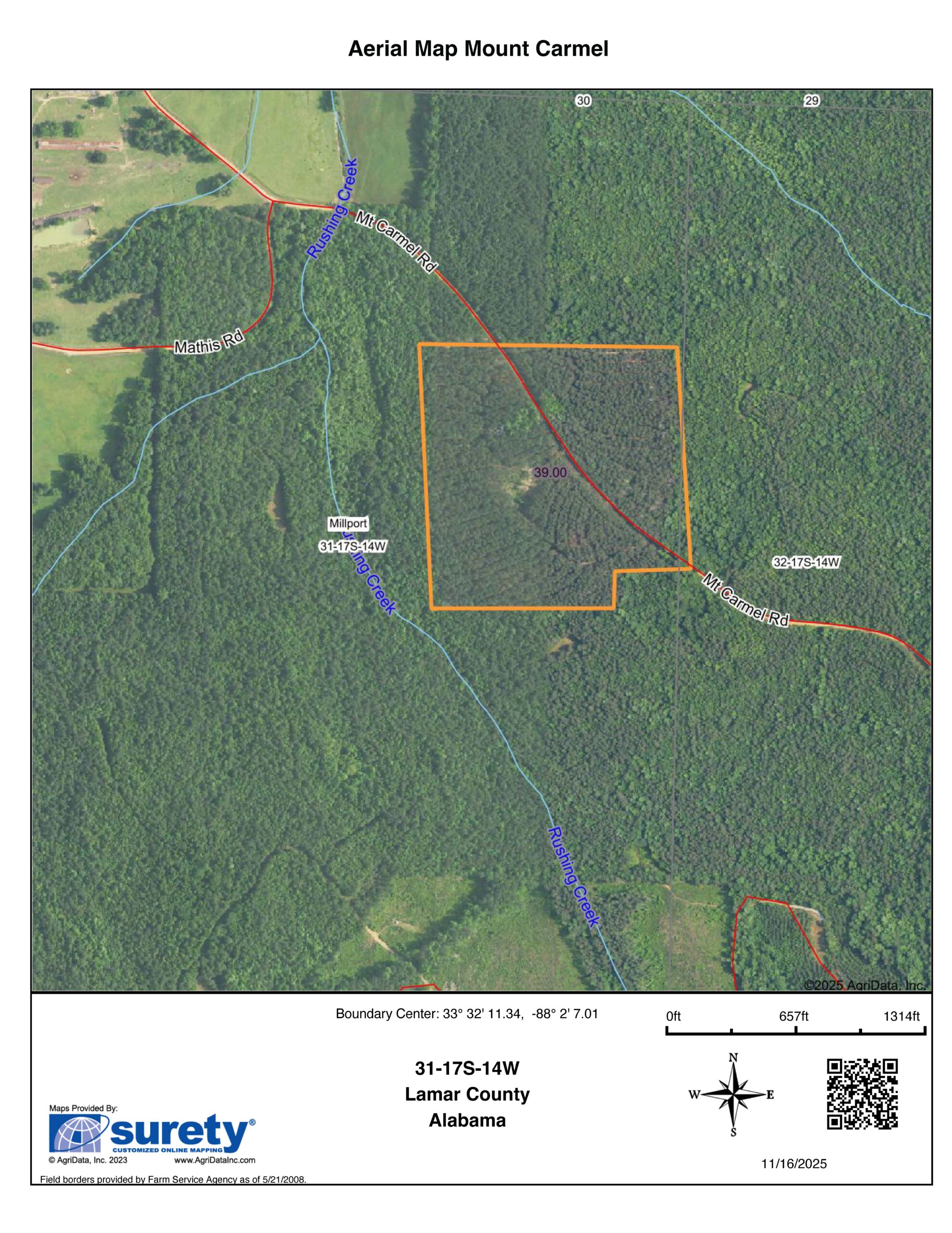 Discover a beautiful 39 +/- acre property on Mount Carmel Road in Millport, Alabama, an ideal blend of privacy, recreation, and long-term timber value. Whether you’re looking for a homesite, a weekend getaway, or a solid land investment, this tract offers outstanding versatility. Water and power are available on-site, offering a convenient starting point for building a home, cabin, or recreational retreat.The property features a recently thinned and burned pine plantation, contributing both aesthetic appeal and meaningful timber value. The terrain provides a private, scenic setting with room to expand trails, food plots, or recreational areas. Loaded with wildlife and natural cover, this property offers excellent hunting opportunities and a quiet, secluded environment. The well-maintained pine plantation provides strong future income potential, making this property suitable for both recreational use and long-term timber returns. A gravel road runs throughout the tract, along with interior trails for convenient access to all portions of the property.