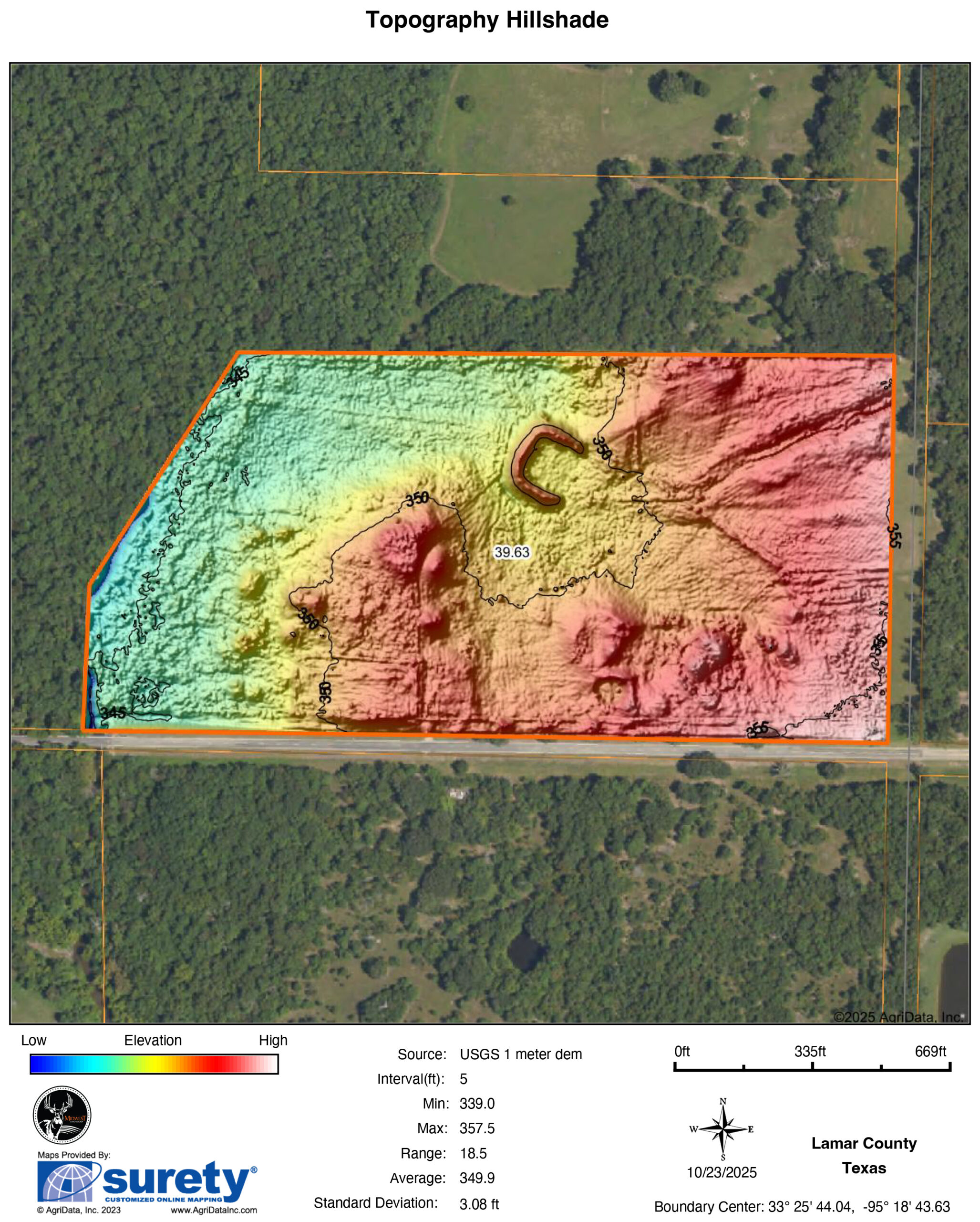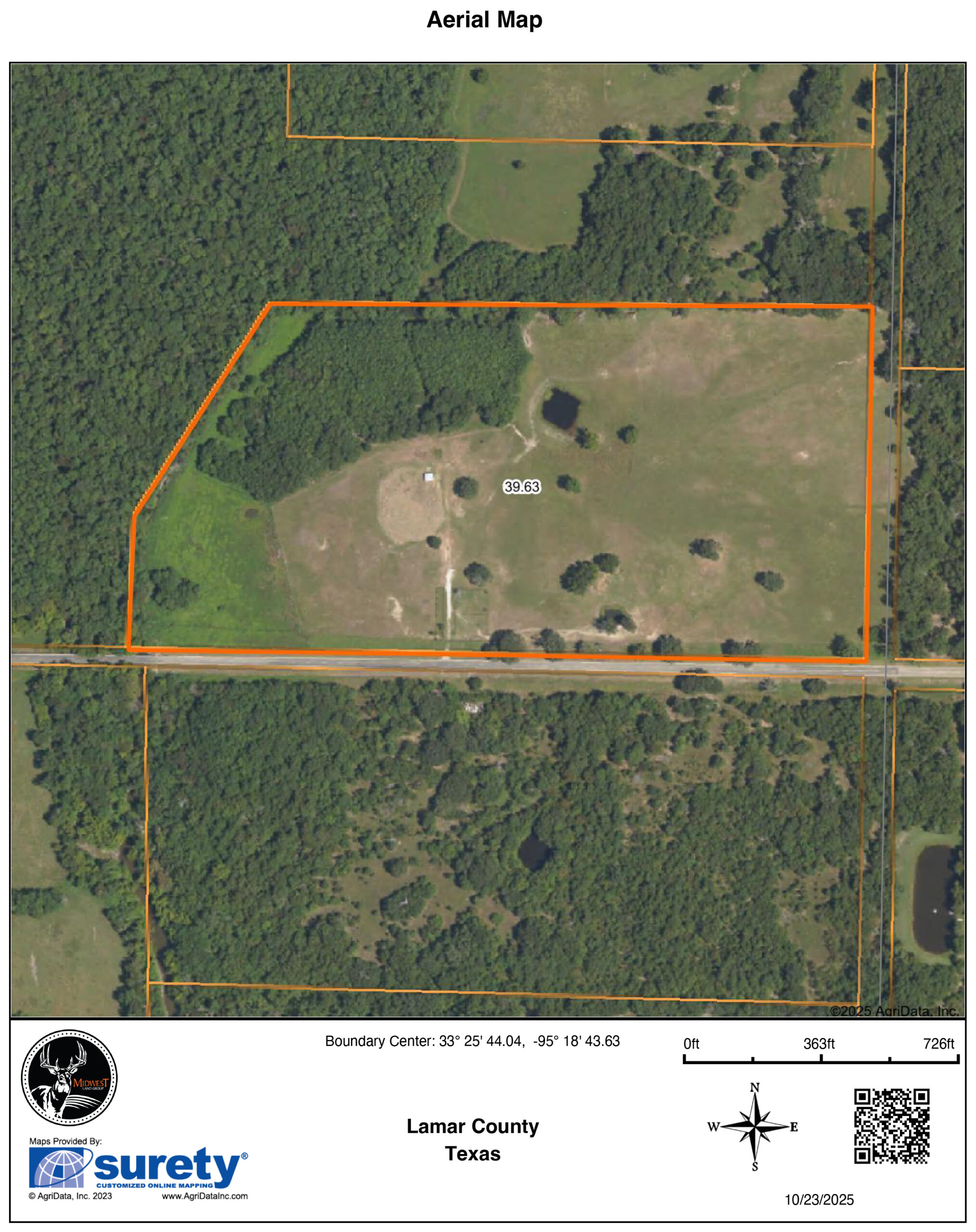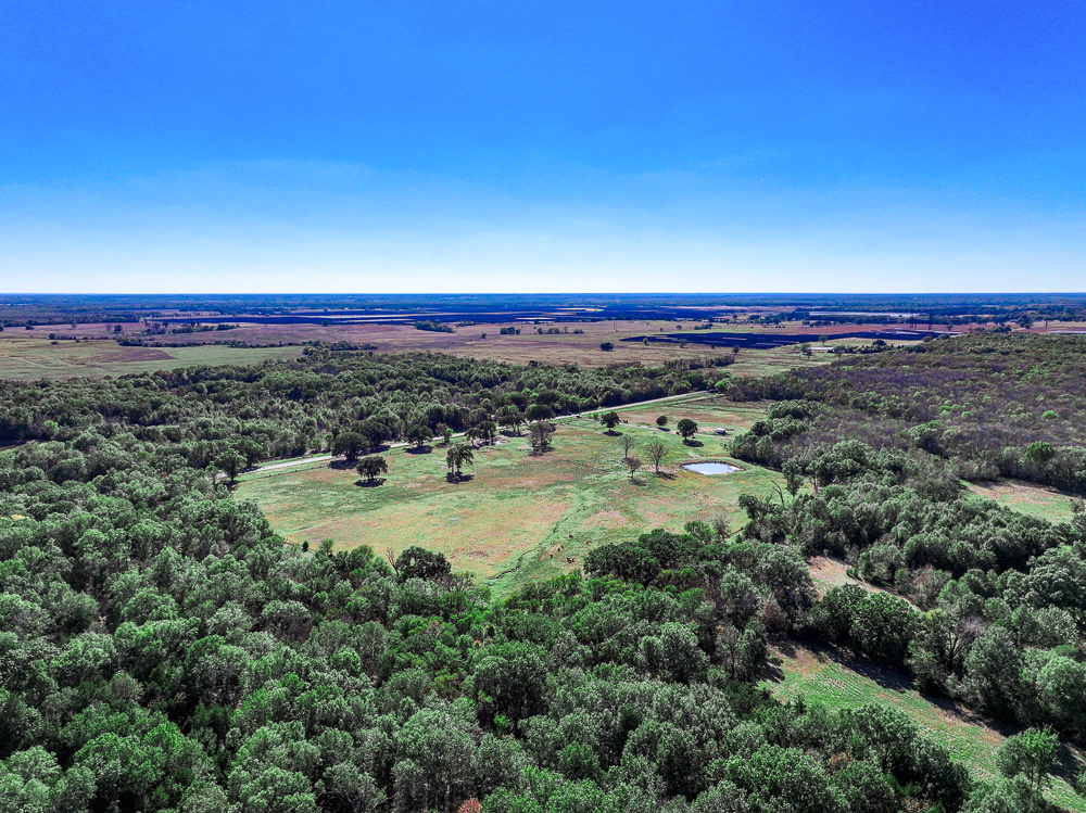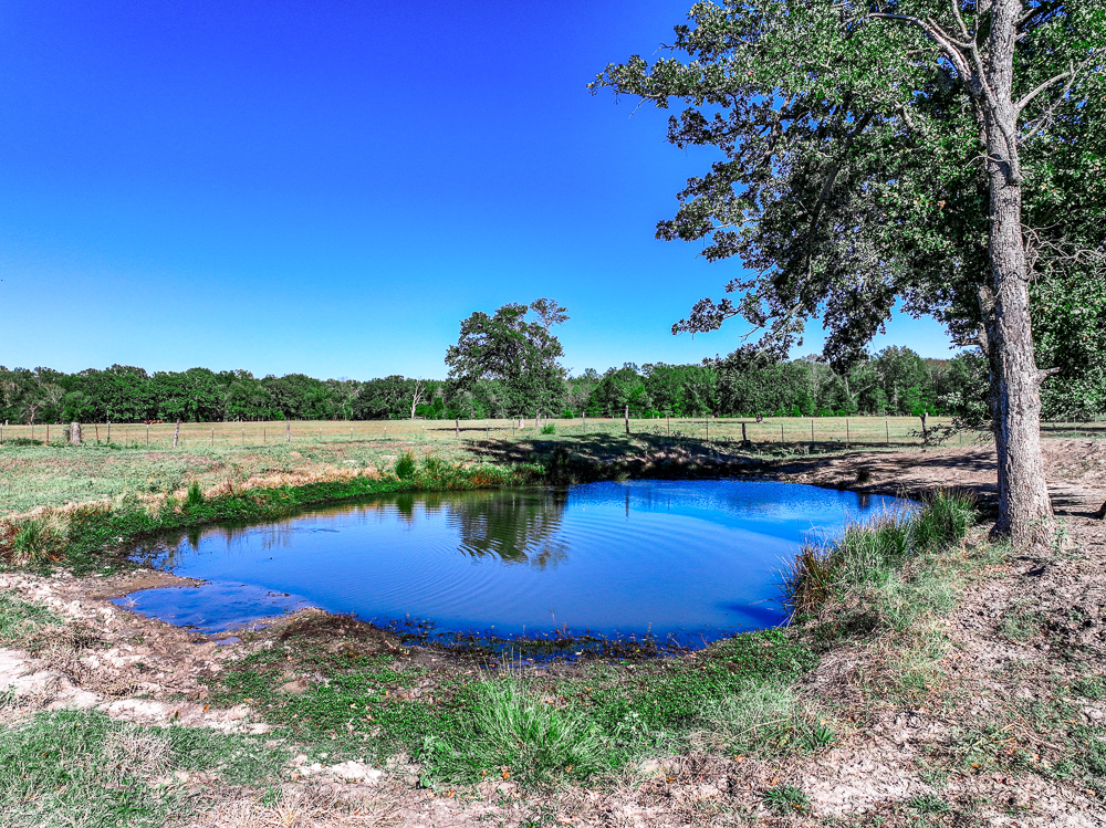The western boundary meets Brushy Creek, a natural corridor that enhances wildlife movement and adds to the property’s serene character. In total, there are four ponds spread throughout the acreage, ensuring ample water access for both livestock and game.