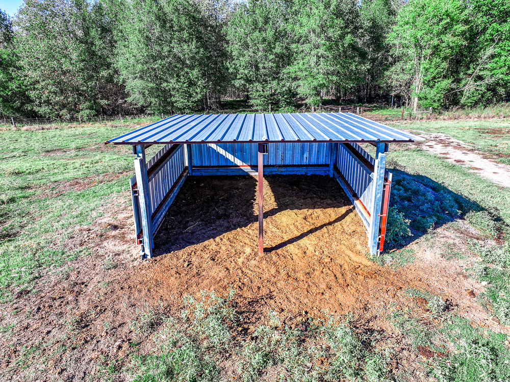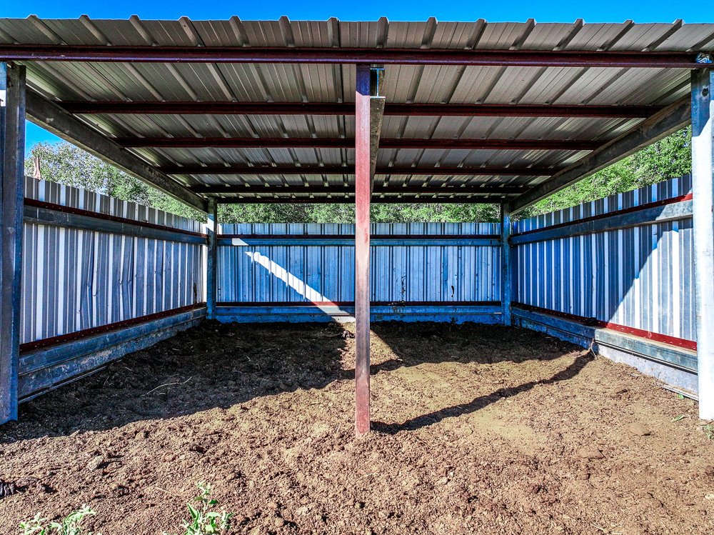 Entering through the front gate, you’re greeted by an approximately half-acre cattle sorting area constructed with durable steel pipe fencing and divided into multiple pens. A 20'x20' metal cattle shelter, built with red iron I-beams, stands ready for livestock protection and long-term use.