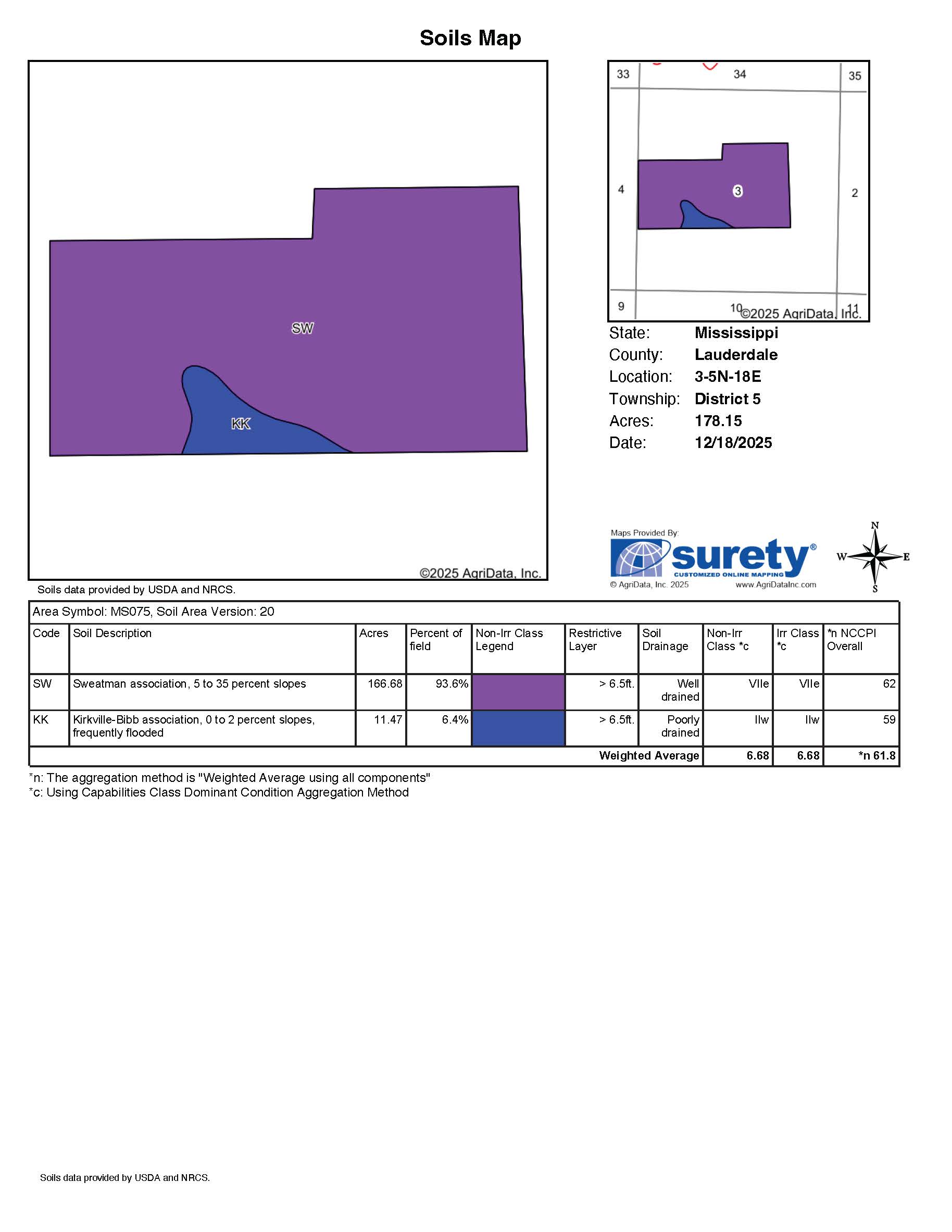 This 175 +/- acre timber tract in Lauderdale County, Mississippi, offers an excellent combination of mature pine timber, scenic creek frontage, and strong recreational appeal. The property consists of 27–28-year-old pine plantations that have been thinned once and are in excellent condition, making it well-positioned for future harvest income and long-term investment.The tract features a well-established internal road system that supports timber management and recreation throughout the property. Yantley Creek flows through the land, creating a beautiful hardwood corridor with a variety of oak species and excellent wildlife habitat. For the sportsman, the property includes three well-established food plots, enhancing its value as a premier hunting and recreational tract. With productive timber, diverse habitat, and a proven management history, this property is ideal for a timber investment, hunting tract, or long-term land holding in desirable Lauderdale County.