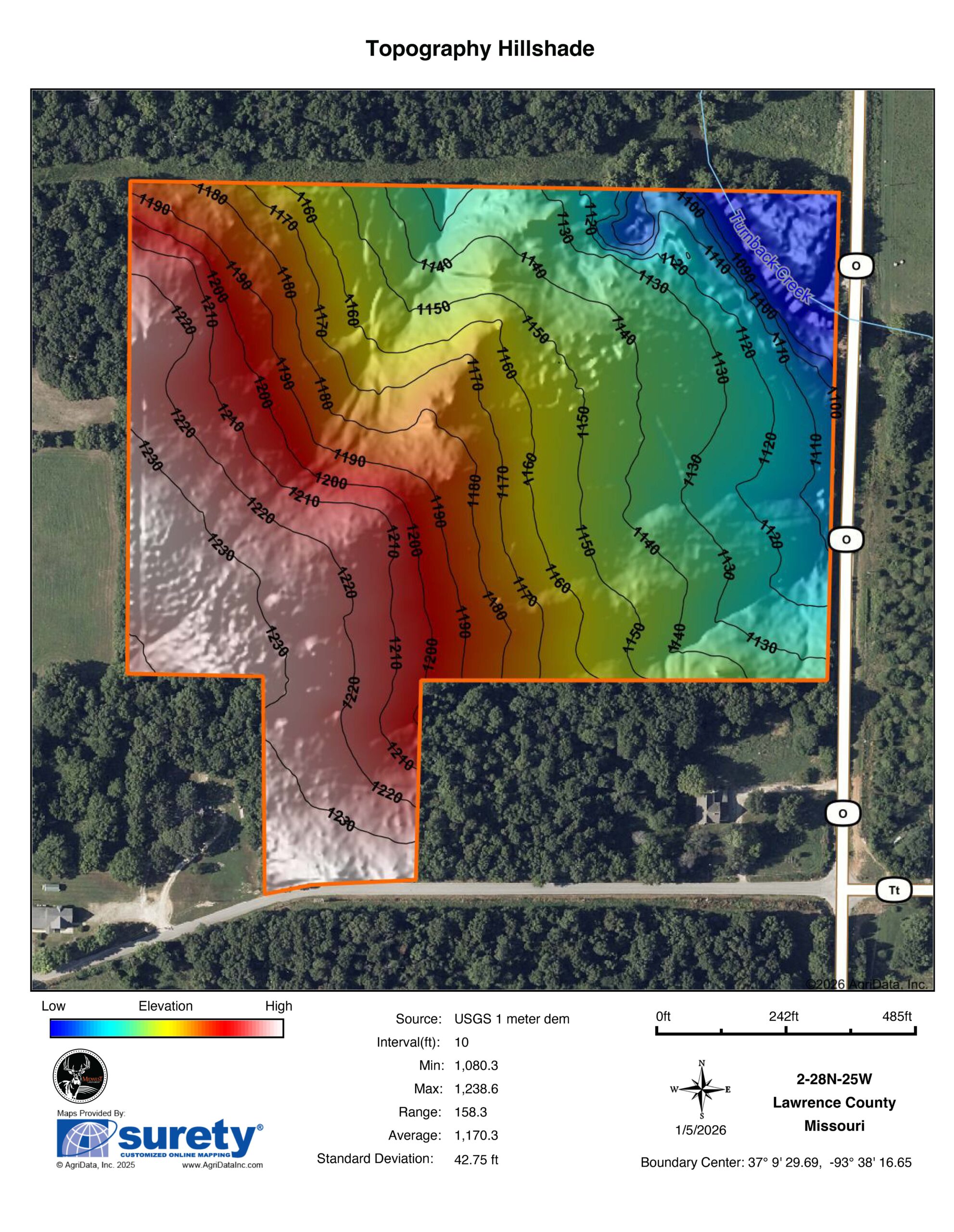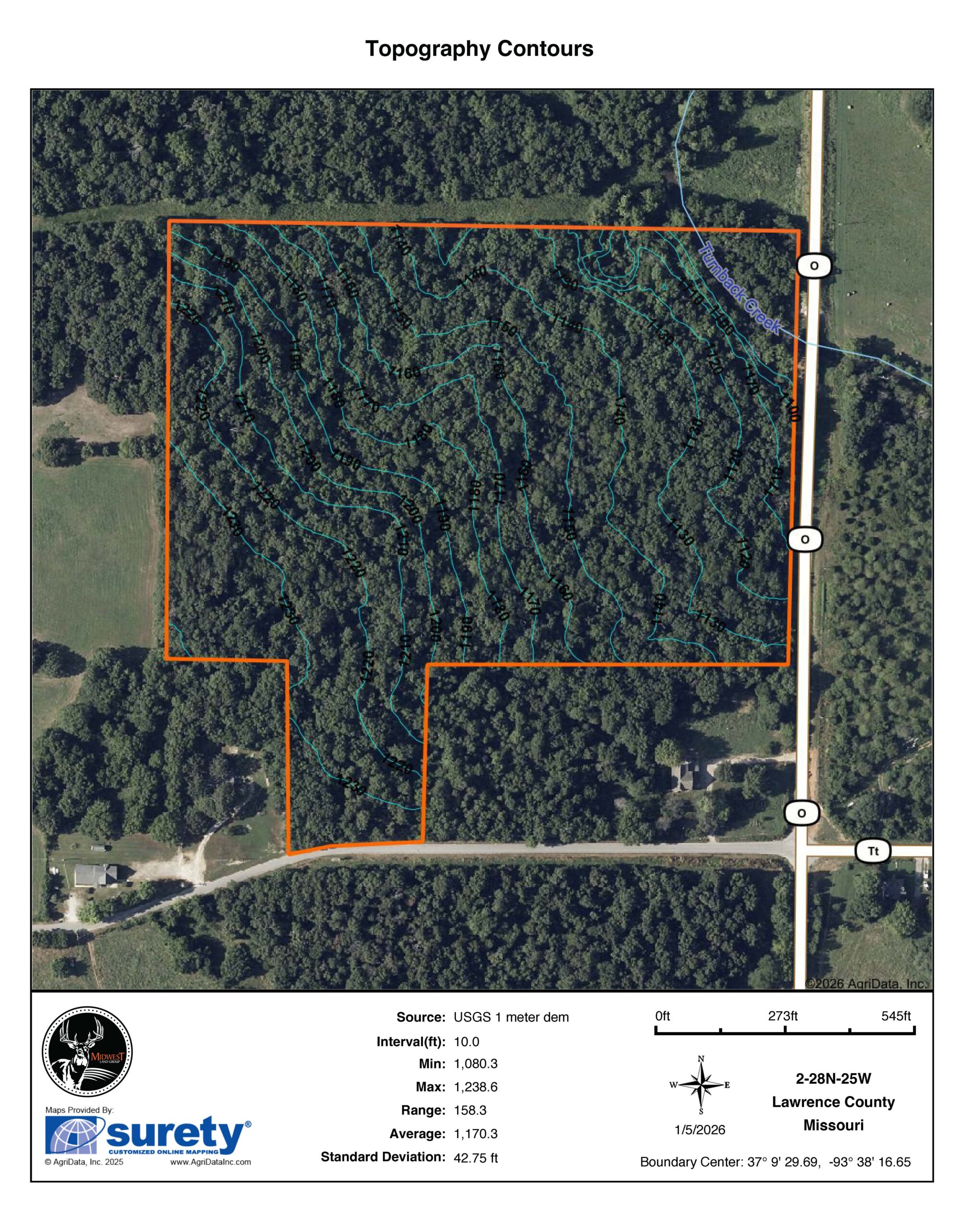 This 100% timbered tract has paved road frontage and access on two sides, both on County Road 2080 and State Highway O. The timber is primarily comprised of mature oak, walnut, and other various hardwood species. As you make your way to the north end of the property, you’ll appreciate the gently sloping terrain, making the property extremely traversable. After touring the property, it is very evident that deer are using the property heavily. Perhaps one of the best features of the property is that Turnback Creek runs through the Northeast corner of the property. The topography allows for many build sites, but specifically a potential build site with a view looking east or northeast over Turnback Creek. If you’ve been searching for a build site with plenty of room to hunt and enjoy the outdoors by stepping out the back door, then look no further. Contact listing agent Clay O’Dell at (417) 414-1808 for more information or to set up a showing.