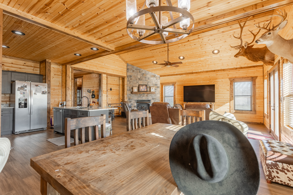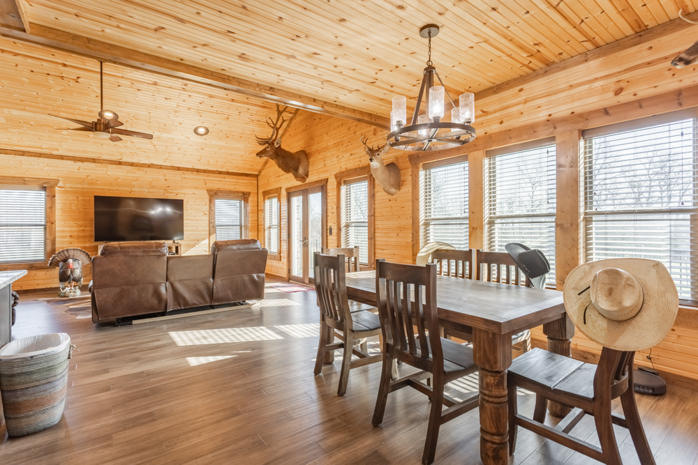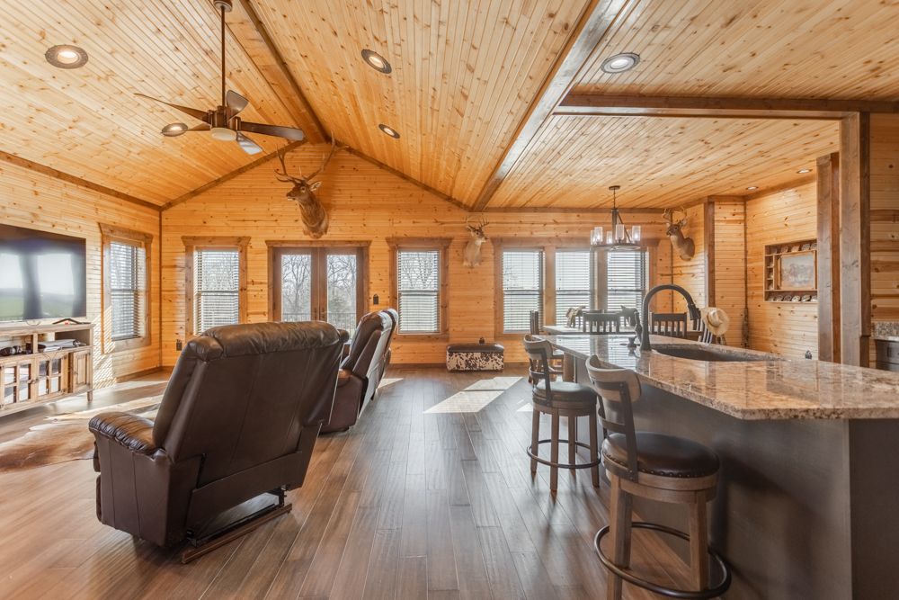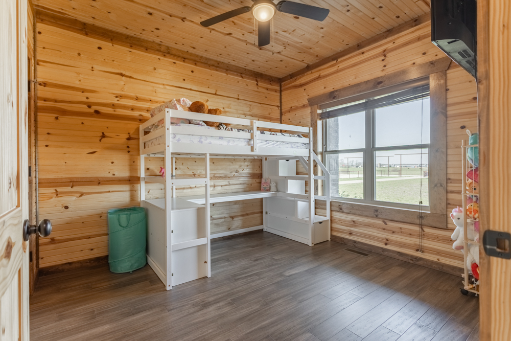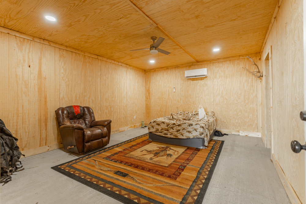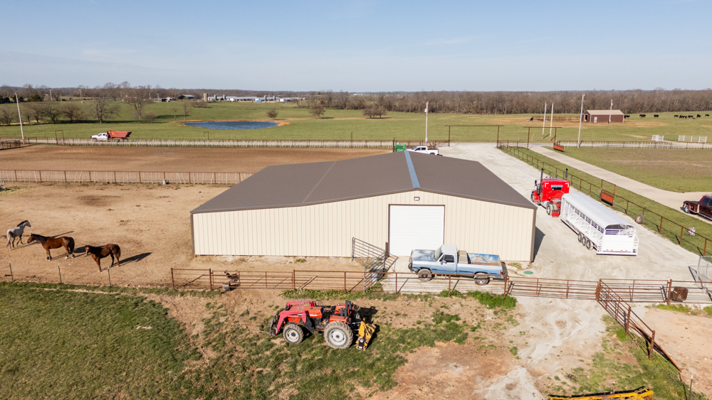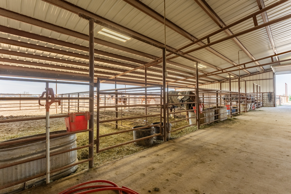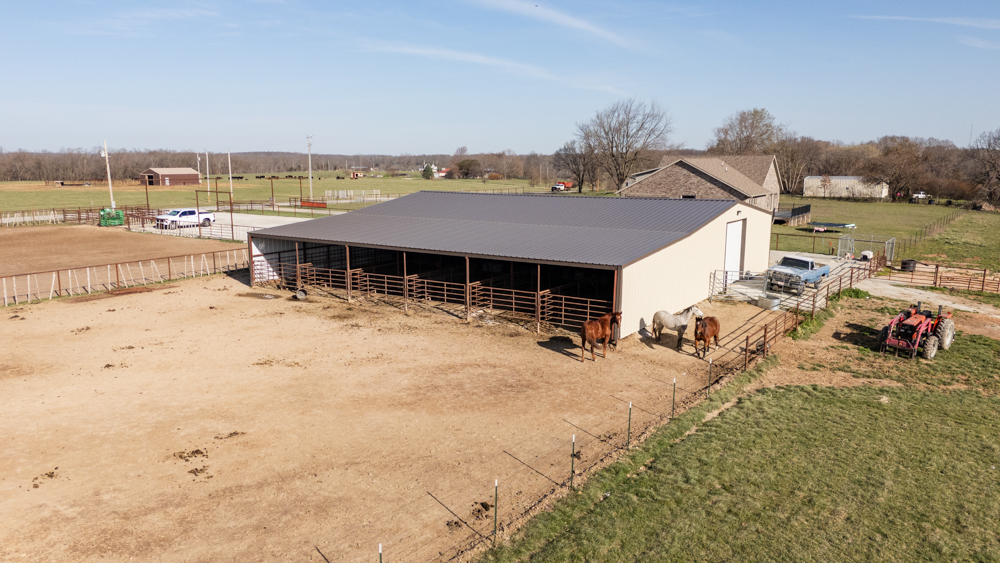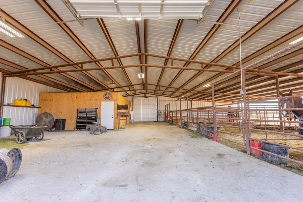 Equestrian amenities continue with a 155'x250' arena, complete with durable pipe fencing, stripping chute, and a return alley, providing everything needed for training and performance work. A dedicated tack room adds convenience and organization for all your gear.
