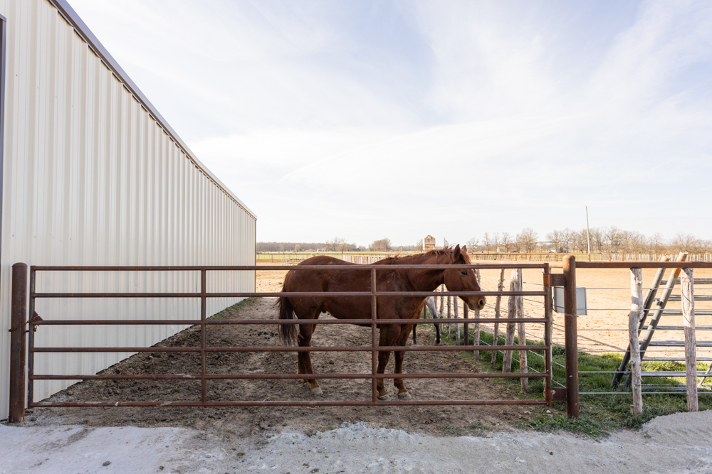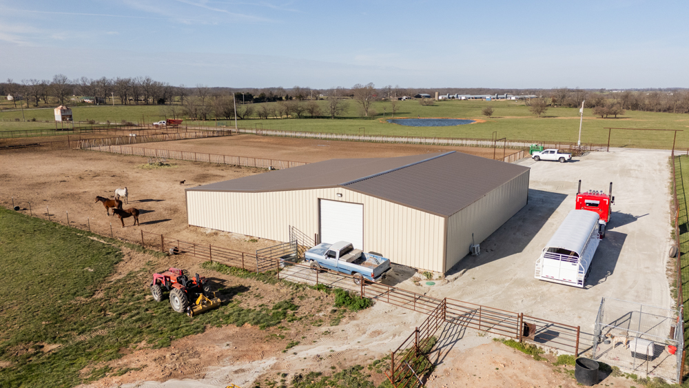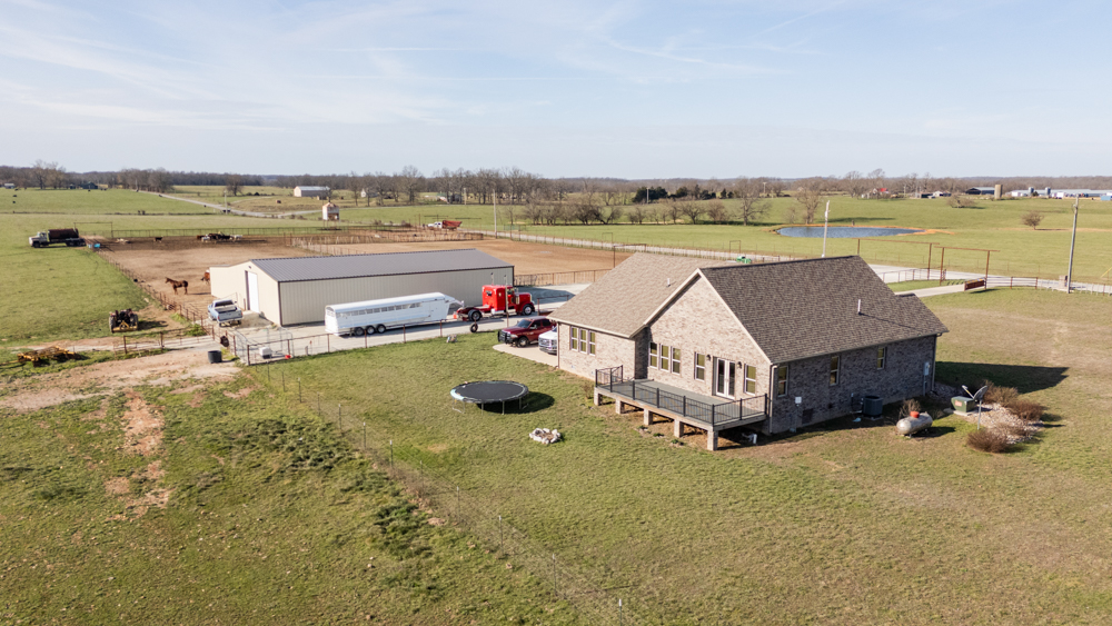 This custom-built 2020 all-brick home offers the perfect blend of modern comfort and fully equipped equestrian facilities. Featuring 3 bedrooms and 2.5 bathrooms, the home is thoughtfully designed with quality craftsmanship and a functional layout ideal for everyday living.The property is a horse enthusiast’s dream, anchored by an impressive 75'x75' shop that includes six 12x45 horse runs, all partially covered for year-round use. Attached is a well-appointed, heated, and cooled 1-bedroom apartment—perfect for guests, a ranch hand, or additional rental income.