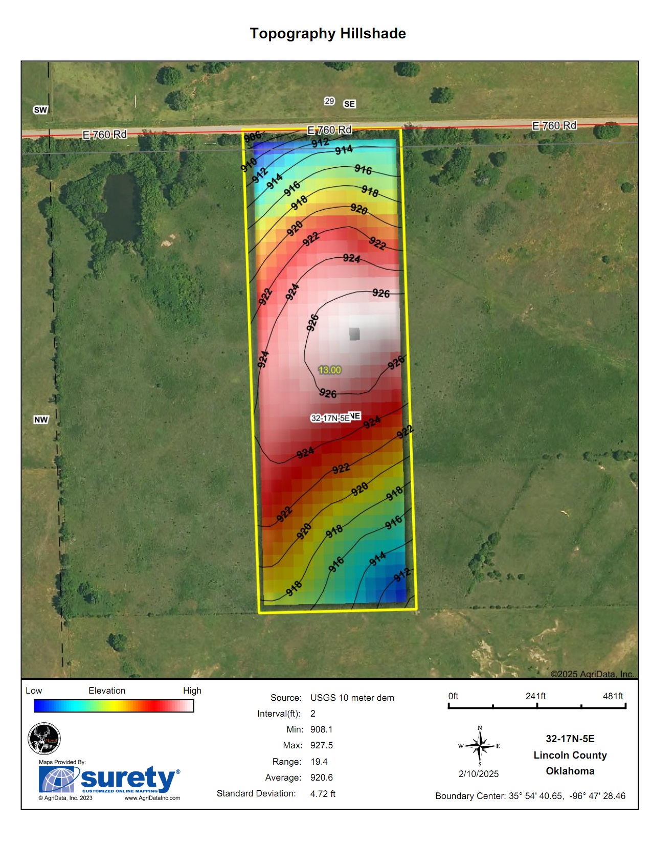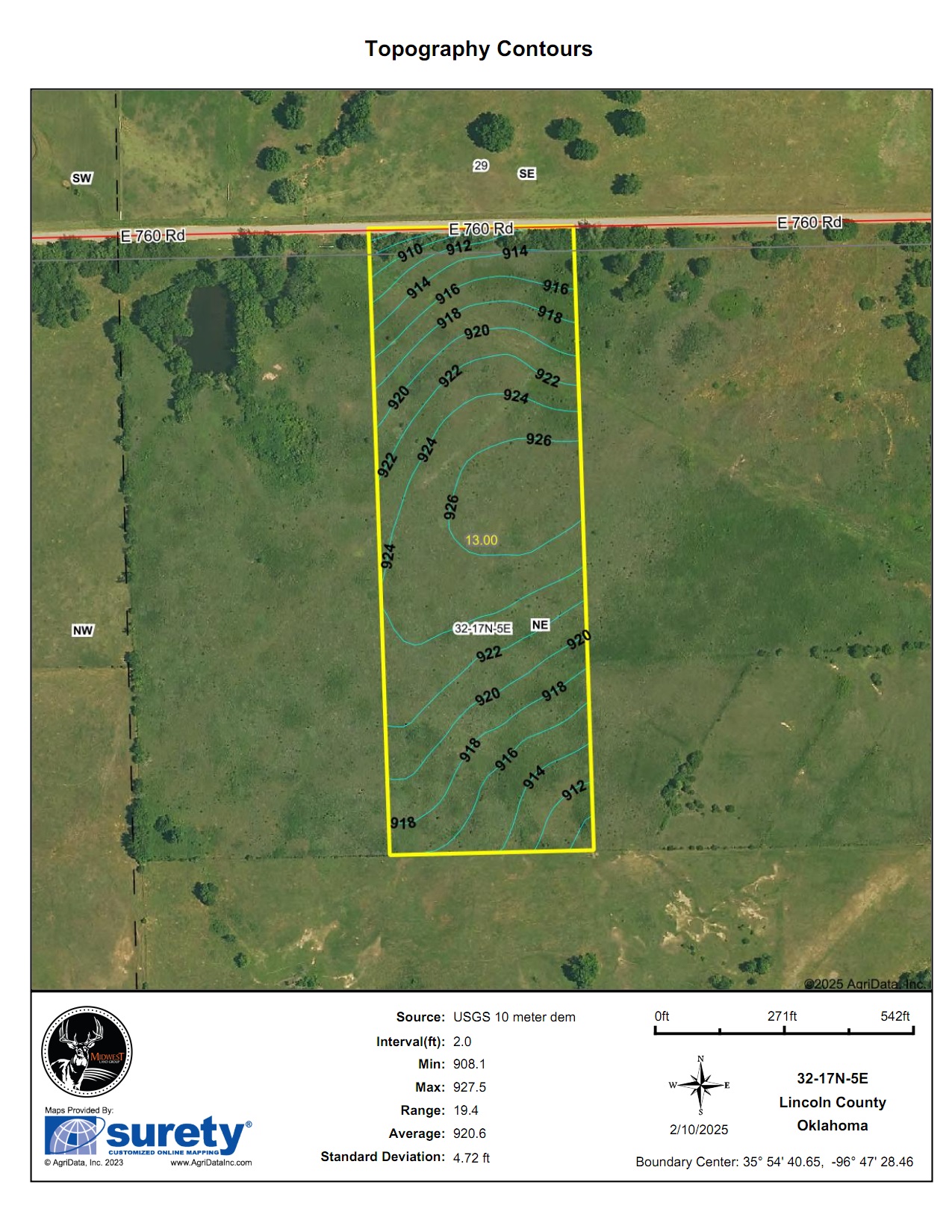 Situated along a well-maintained county road, access is easy, and the views stretch across the countryside. The property has already been surveyed, making it ready for your next steps. Power is nearby, and the layout provides plenty of options for placing a home, shop, or barn. The peaceful rural setting offers the privacy you want, while still being within a short drive to Cushing for everyday needs.