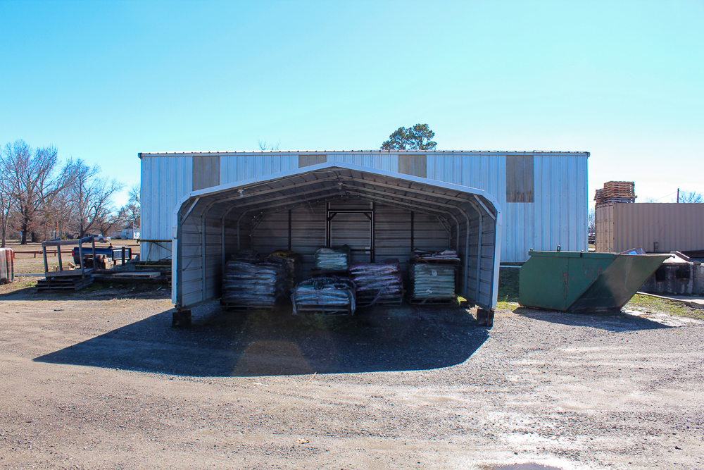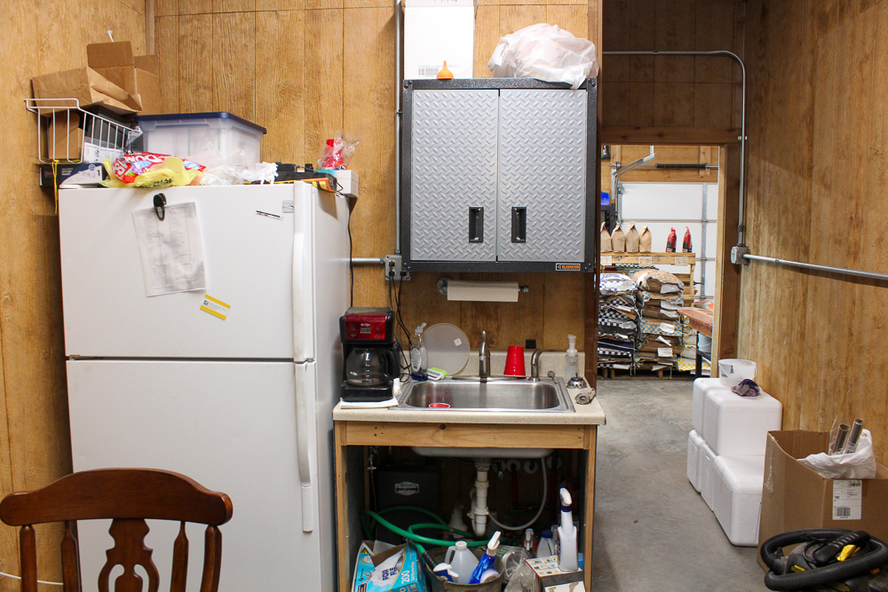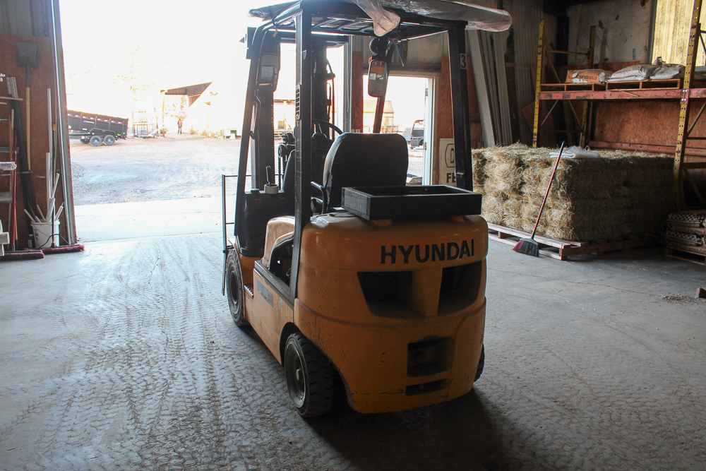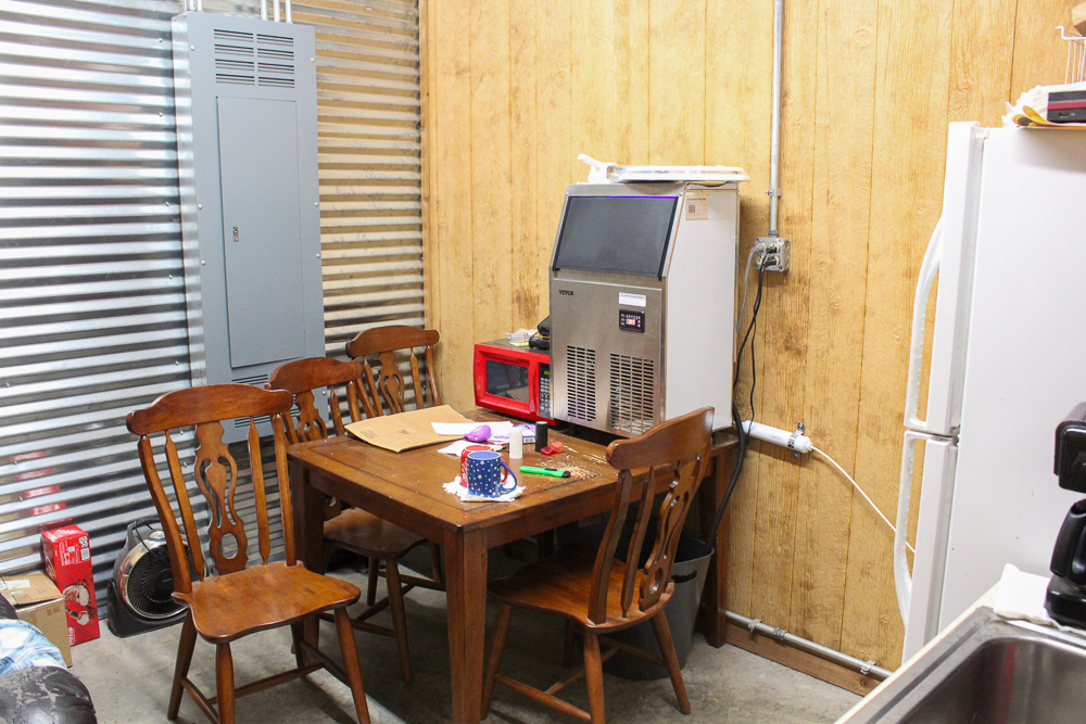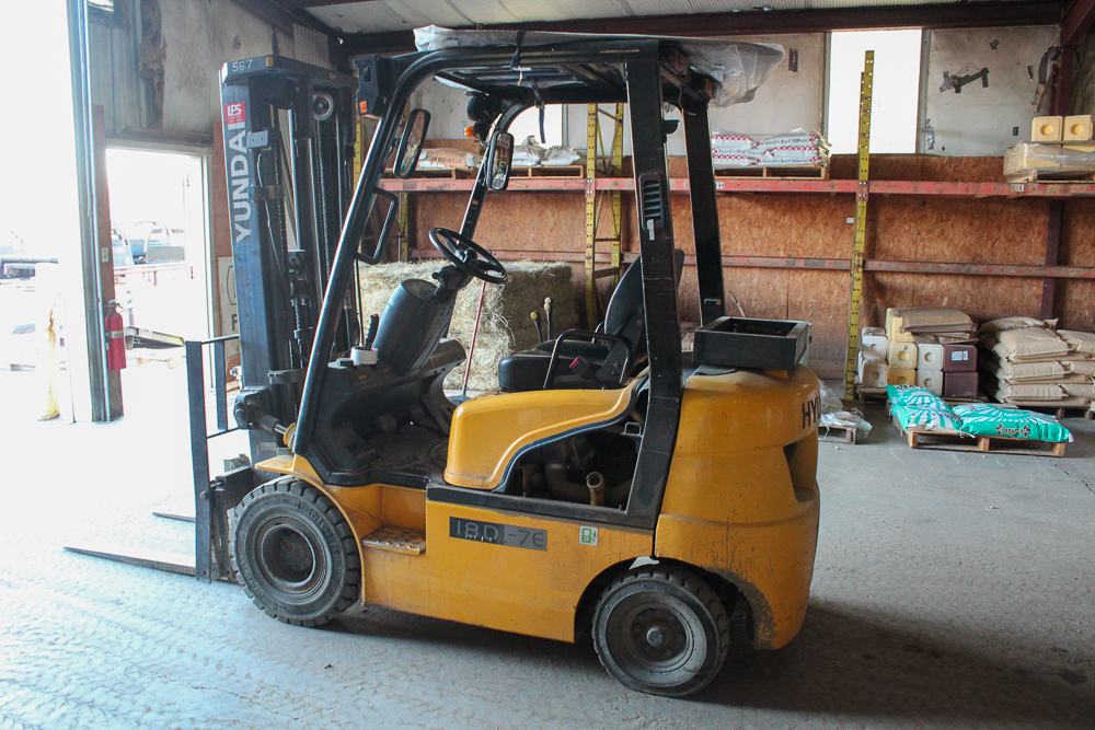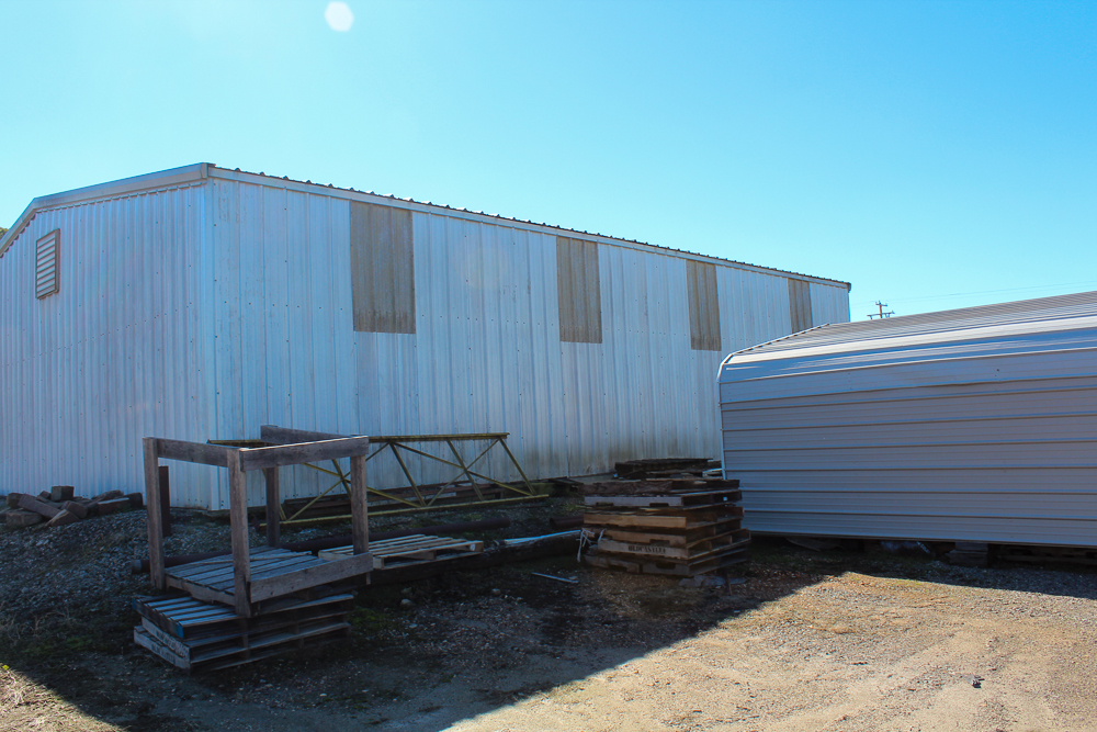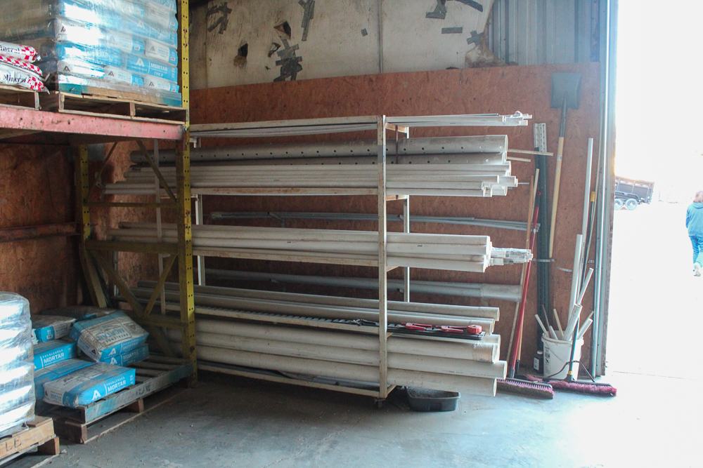 The warehouse is 40’x50’ with a 12’ apron on the west end, with an adjacent loading dock for convenient truck loading and unloading. Inside the warehouse, the walls are lined with a pallet rack system for organized storage. There is a 40’ shipping container for additional dry storage beside the warehouse. Also, a Hyundai forklift conveys with purchase.