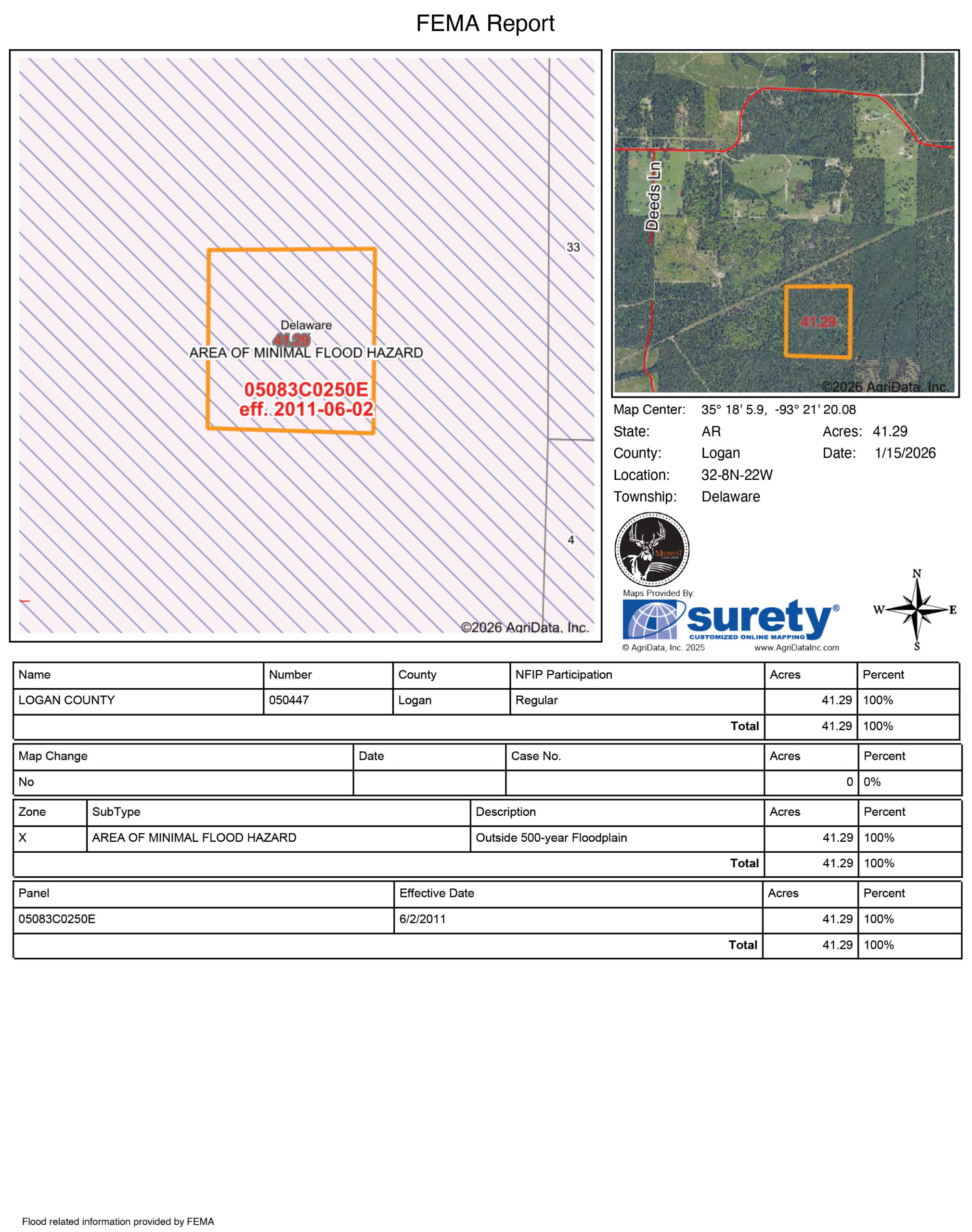Located in eastern Logan County in the community of Delaware, this 40 +/- acre timber tract is the perfect secluded recreational tract. Located over a mile off of State Highway 22 down a private easement road, the seclusion offered by this parcel is unmatched. The stand of mature timber covering the land features a mixture of oak timber, pine, and some large cedar. The timber varies from large open timber to areas with more undergrowth that are perfect bedding areas for wildlife. While walking the property, deer sign is evident at every turn, and multiple great stand locations are no issue to find.A nice seasonal creek meanders through the property, with picturesque watering holes for deer and other game nearly year-round. With no hunting pressure in the last fifteen years, this tract is certain to have an abundance of game and is ready for its new owner. While being very private and secluded, the property is just a short twenty-minute drive from Dardanelle, and twenty-five minutes from Russellville. Lake Dardanelle is just minutes away, and multiple boat launches and access points are available in the area.
