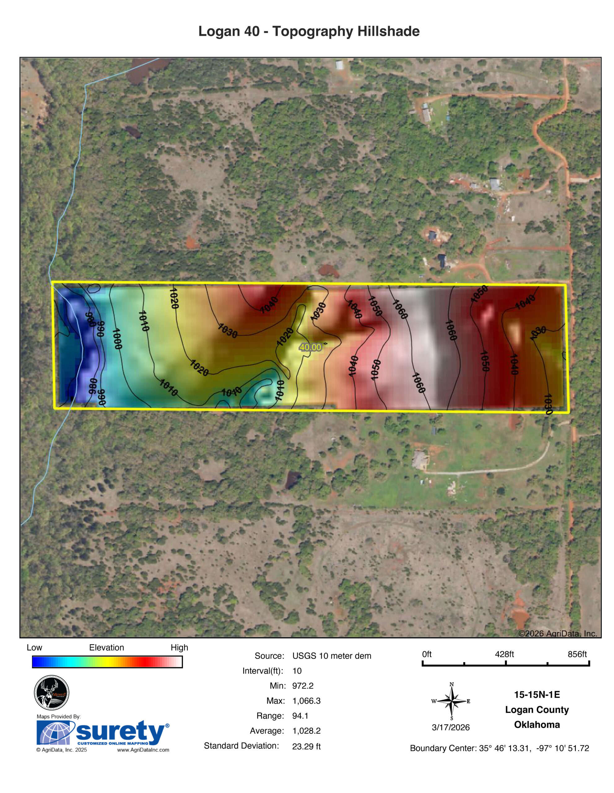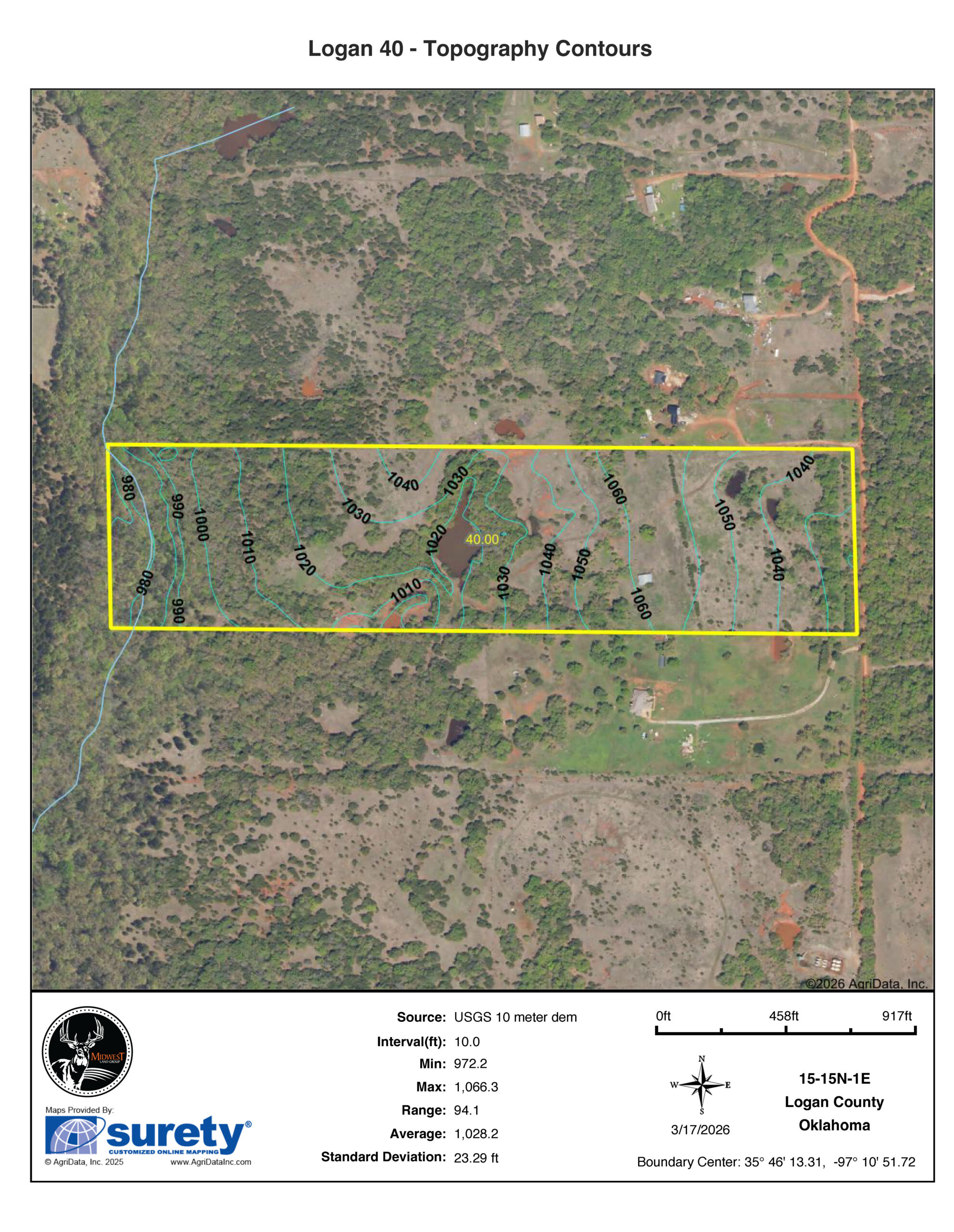 Midwest Land Group is proud to present the Logan 40 — a versatile 40 +/- acre tract in Logan County offering prime build opportunities, excellent water, and endless recreational potential. Whether you’re looking for a future homesite, weekend retreat, or small ranchette, this property delivers with a great location and a rare mix of features.Accessed by 660’ of county road frontage and fully fenced with an additional cross fence, the Logan 40 is ready to go. Electric service is already on-site, providing a significant cost savings for anyone looking to build. A scenic hilltop setting with mature oak and pecan trees offers the ideal spot for a country home, complete with sweeping views of the surrounding landscape.