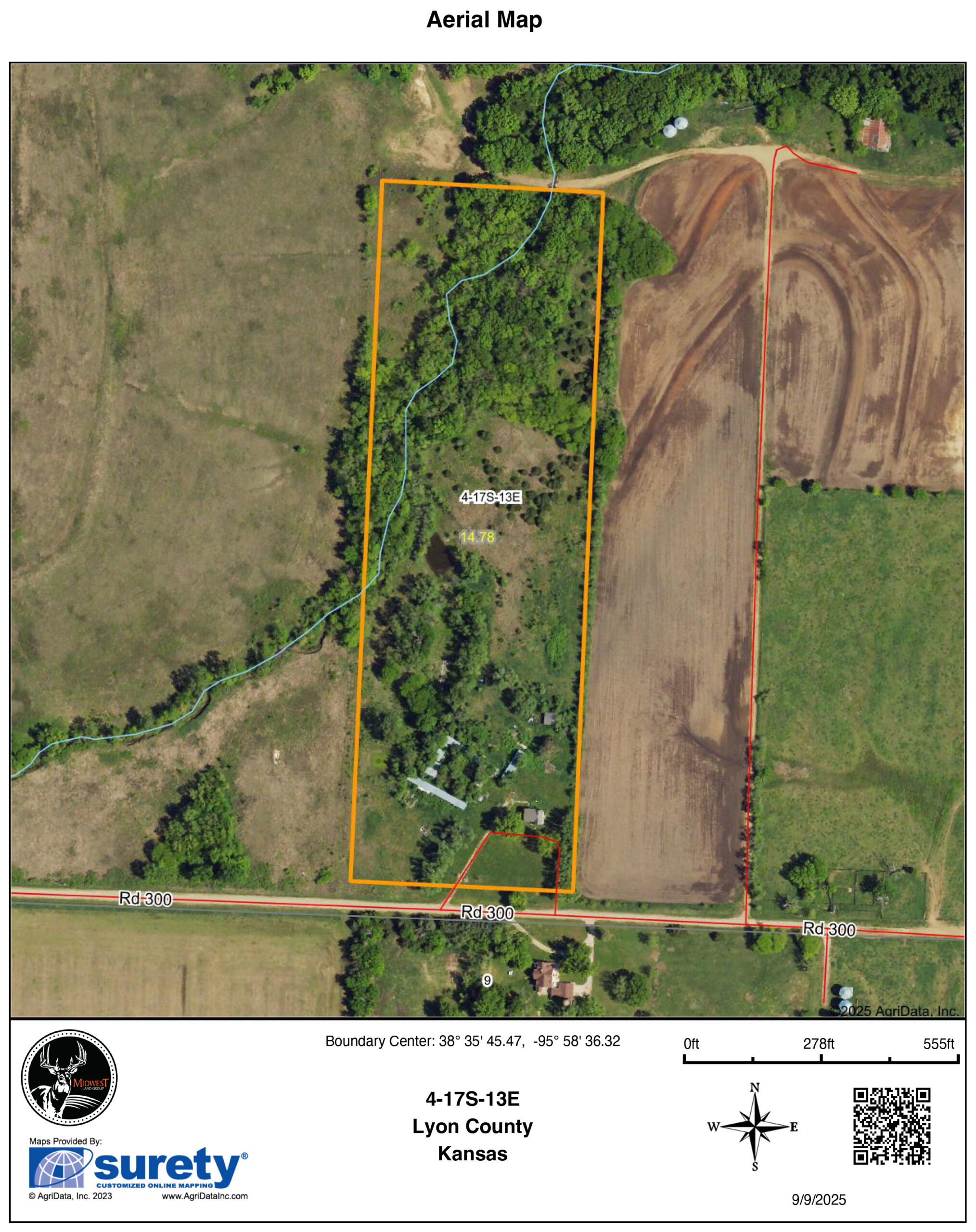 This 15 +/- acre property is located in Lyon County, just north of Reading, Kansas. The property is full of diversity with hardwood timbered draws, dogwood and cedar thickets, warm-season native grass meadows, and a wet-weather creek winding throughout! The timber has a good mix of oak, cottonwood, hedge, and eastern red cedar trees. The native grass is mixed with little bluestem, big bluestem, and Indian grass. A wet-weather creek winds throughout the property, providing a natural travel corridor for wildlife. There is also a small watering pond along with established wildlife food plots on the property.The diverse habitat with abundant food and water on the property creates some of the best whitetail deer, turkey, and quail hunting opportunities that Kansas is known for! The property is located in Kansas Deer Management Unit 14 and has an excellent mature buck harvest history. The property also has a two-story 3-bed, 1-bath house built in 1900 with 1,586 total square feet. The house has a concrete foundation and a partial basement, and has recently had a new metal roof installed. Many of the bucks on this property have been harvested from the second floor of the house!