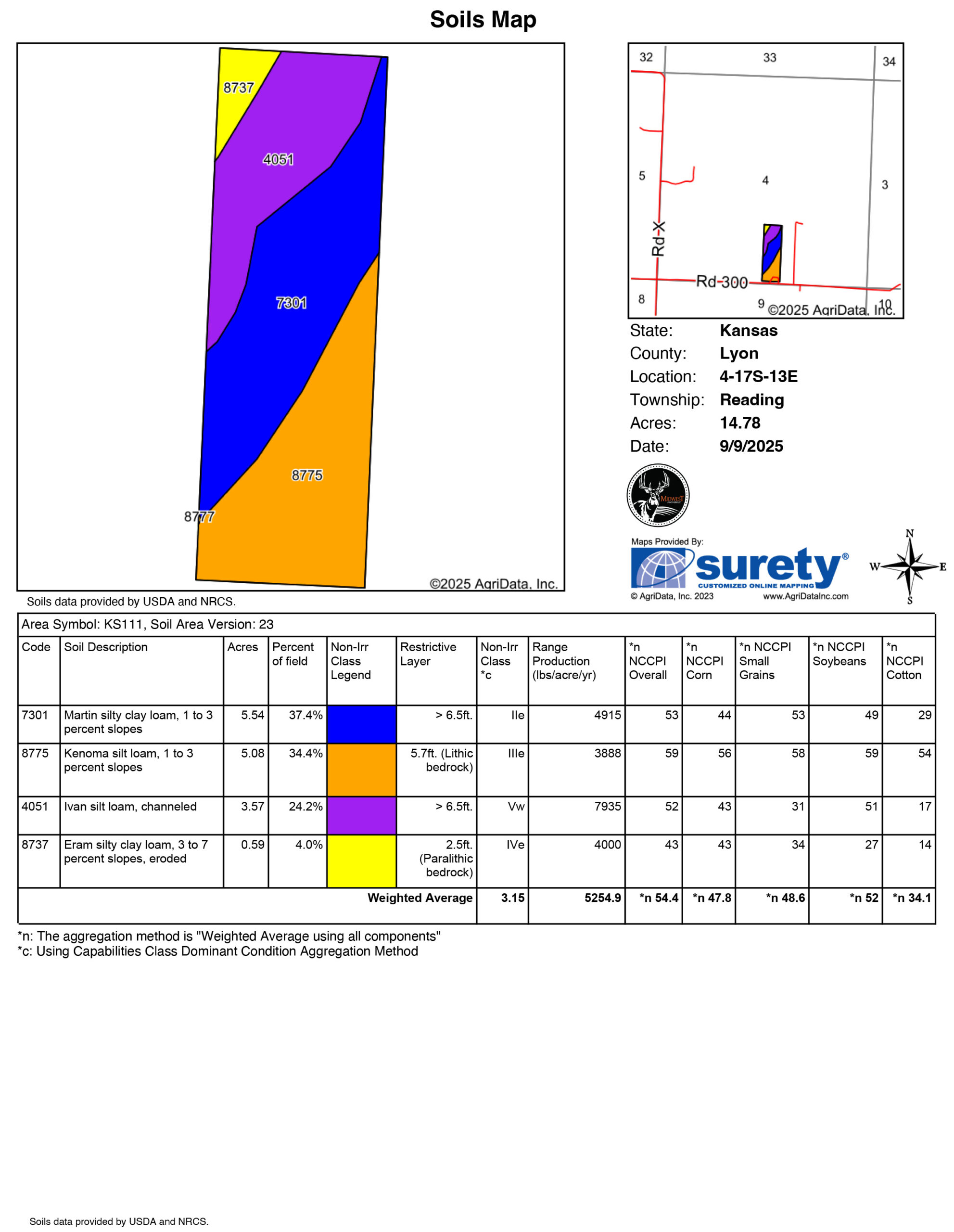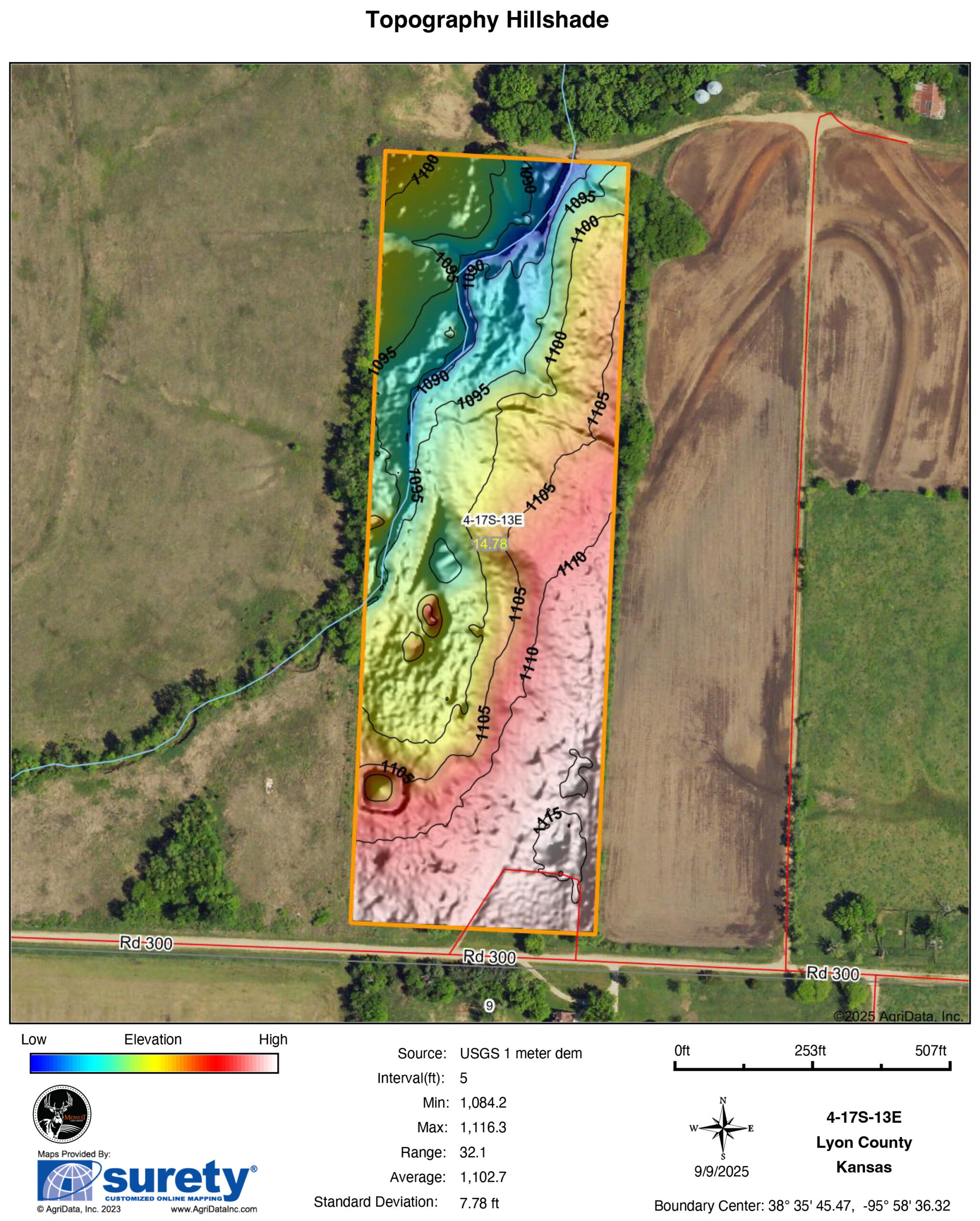 There are many additional outbuildings on the property, as well as a gravity grain storage bin. Utilities installed on site include electricity, rural water, and a lagoon. The property is located on a secluded, dead-end, and well-maintained year-round gravel road. Mineral rights are intact and will be transferred to the buyer at closing. There are no active farm leases or tenants' rights currently in place. Showings are by appointment only, and an agent must be present to enter the property. Contact Trent Siegle at (620) 767-2926 for additional information, disclosures, or to schedule a showing.