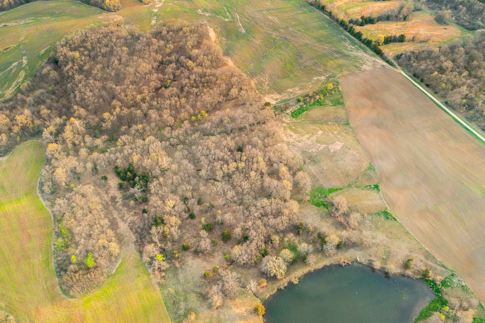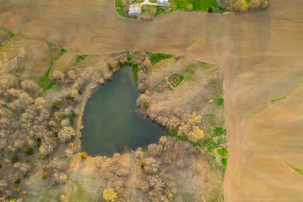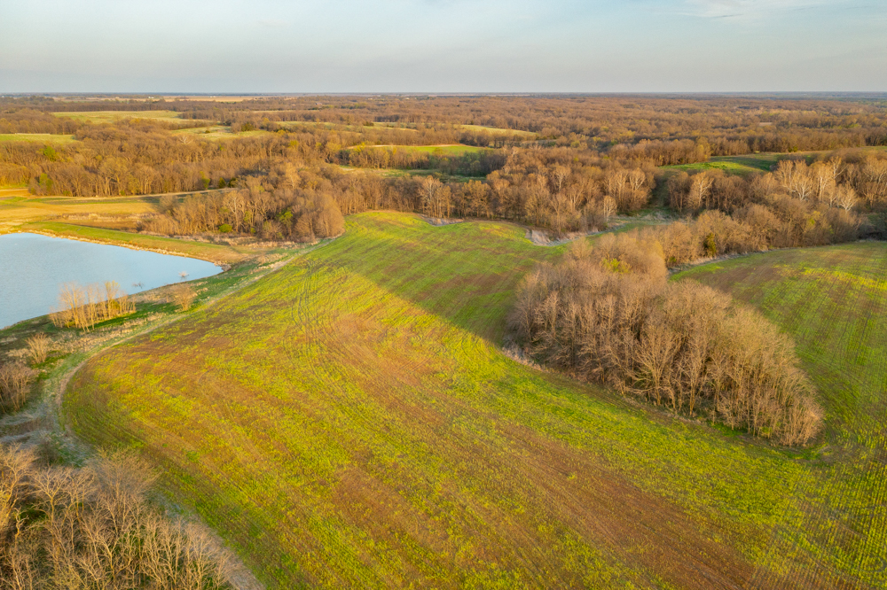 Tucked away on the property is a secluded and picturesque pond that adds both beauty and functionality. It offers opportunities for fishing, attracts passing waterfowl, and creates a peaceful setting to relax and enjoy the outdoors. Its elevated surroundings would also make a beautiful backdrop for a future homesite, offering long views across the landscape.