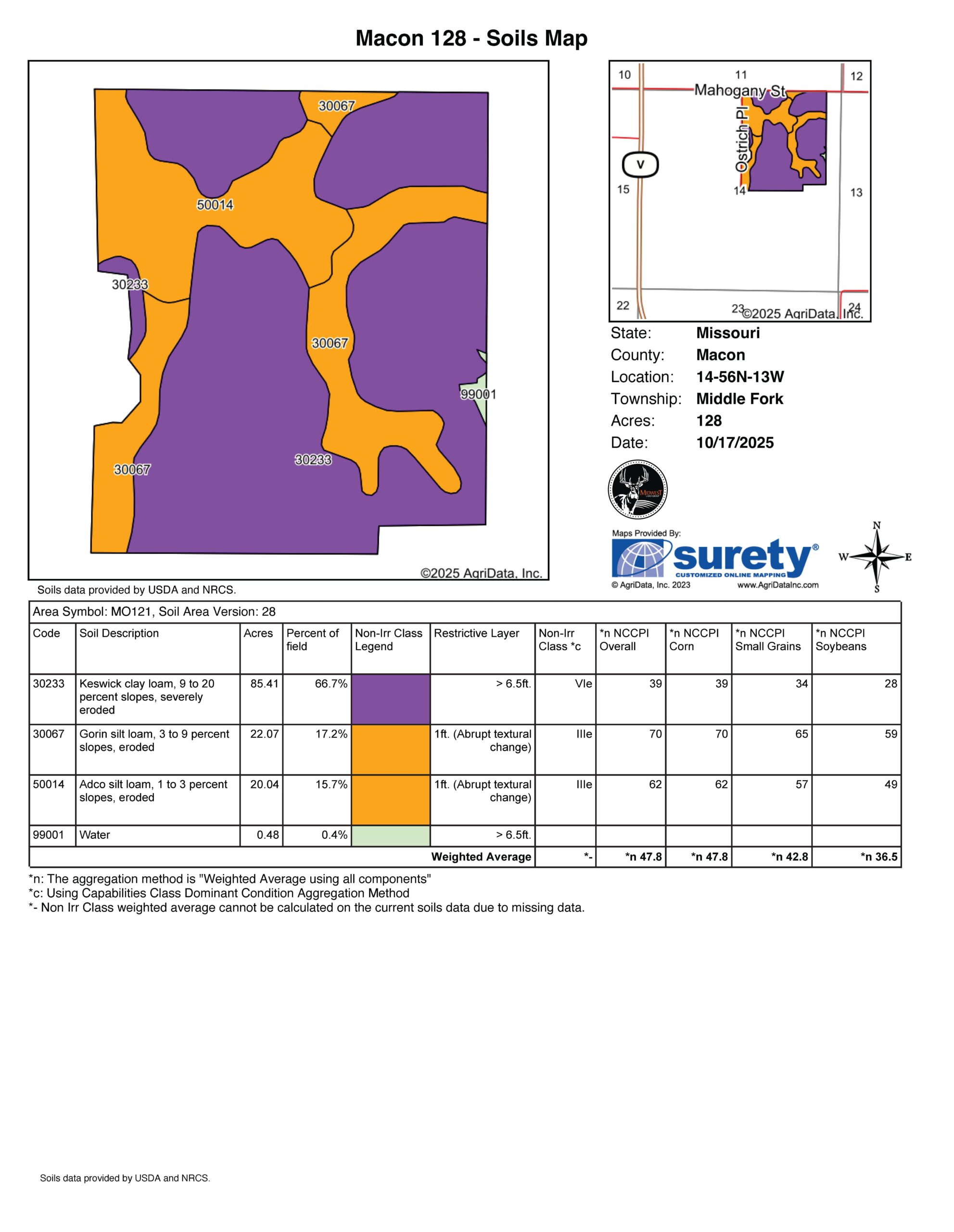 Check out this 128.7 +/- acre property, featuring productive tillable acreage, a scenic pond, and hunting opportunities, that is located just a short drive from Macon, Missouri. Its convenient location offers the perfect balance of rural privacy with easy access to town amenities.Whether you’re looking to expand your current farming operation or diversify your portfolio with income-producing land, this tract provides approximately 80 +/- tillable acres well-suited for row crop production. The layout of the fields makes it an attractive option for owner-operators and investors alike, with the potential for steady annual returns.