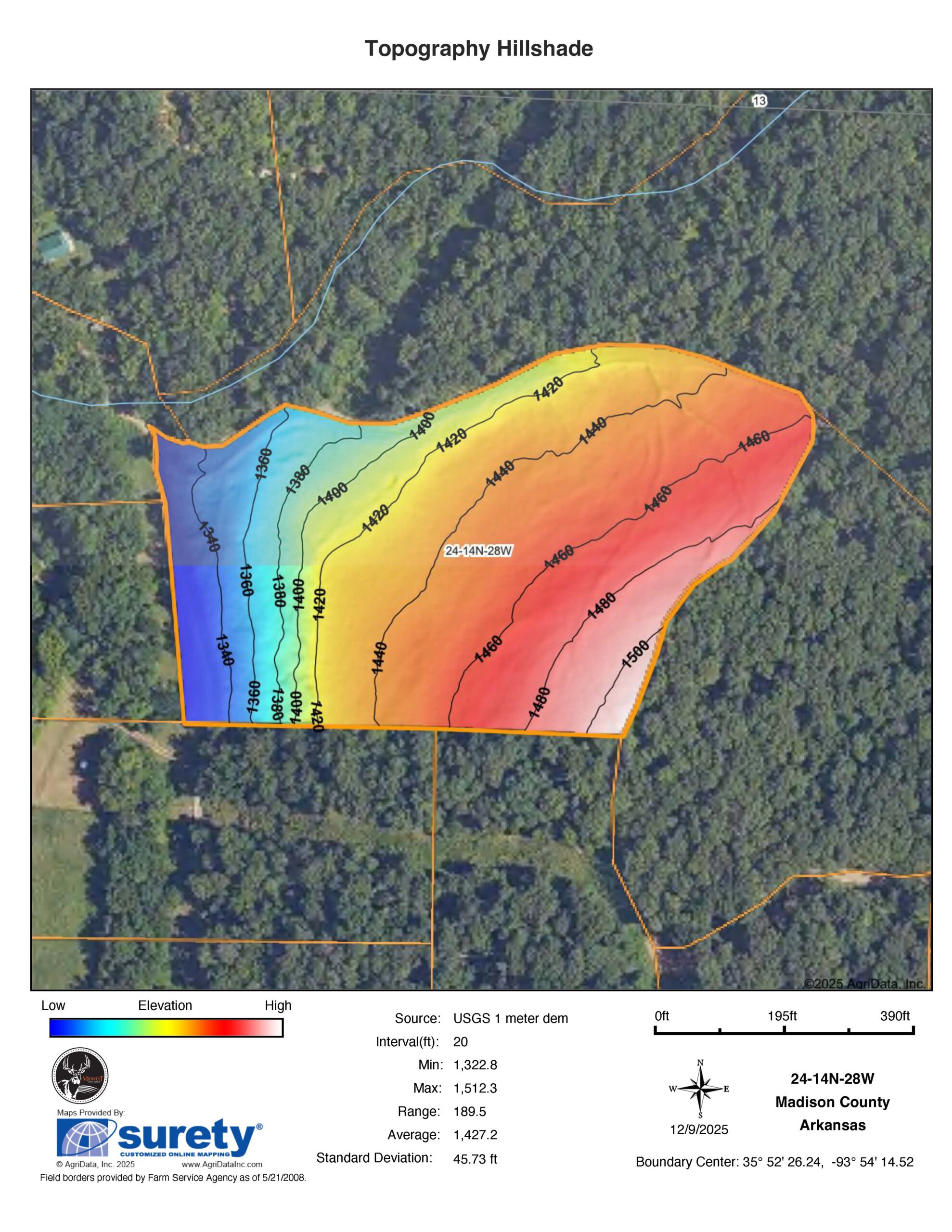 Ozark Mountain Build Site with Gentle Terrain, Good Views, and White River Access