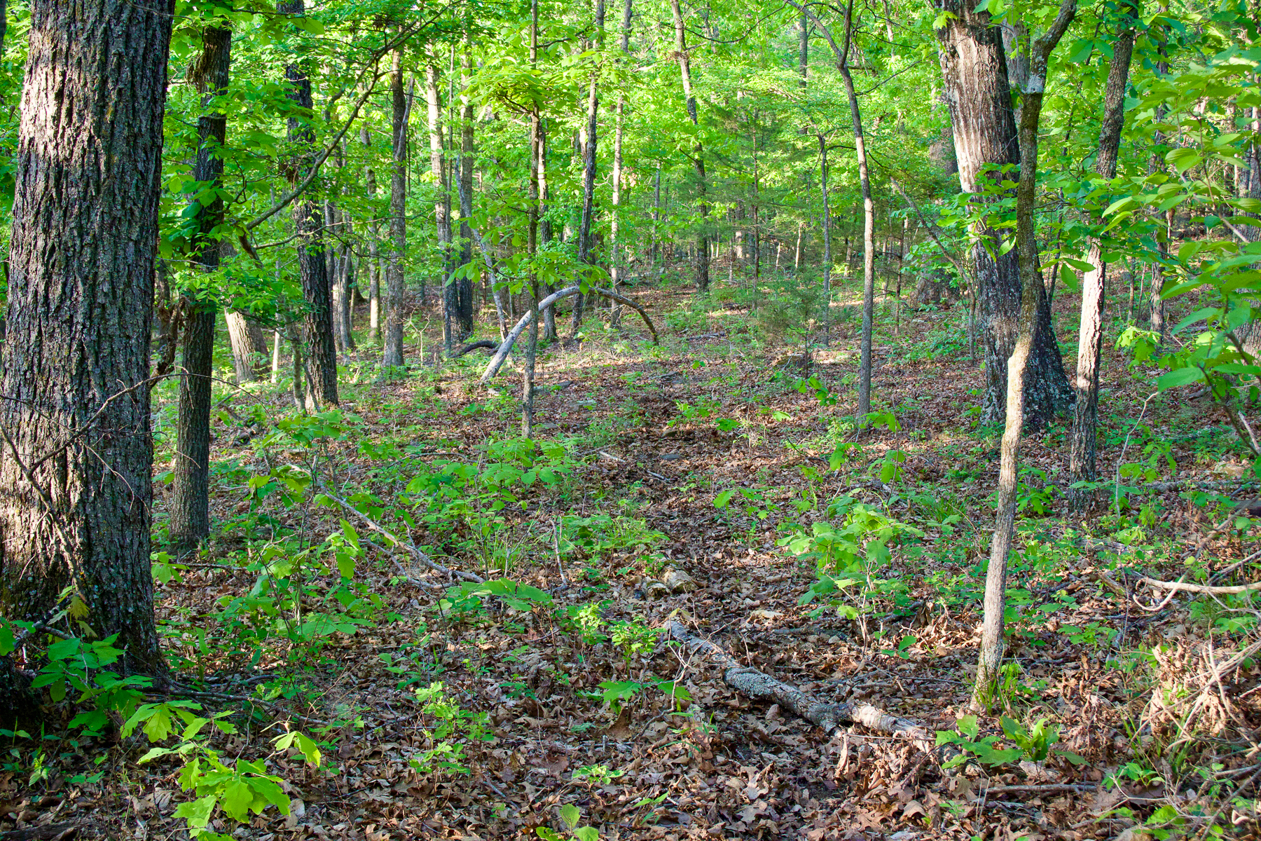 From a hunting standpoint, the property creates a strong base. The natural benches are ideal travel corridors for deer, allowing them to move without using much energy while scent-checking during the rut. Turkeys will use these same areas for feeding, strutting, and travel, and the area is known to produce the occasional black bear as well. Timber is another strong point here. White oak is the dominant species, with some red oak and hickory mixed in. A good portion of the white oak and some of the red oak is marketable, giving you immediate or future return potential.