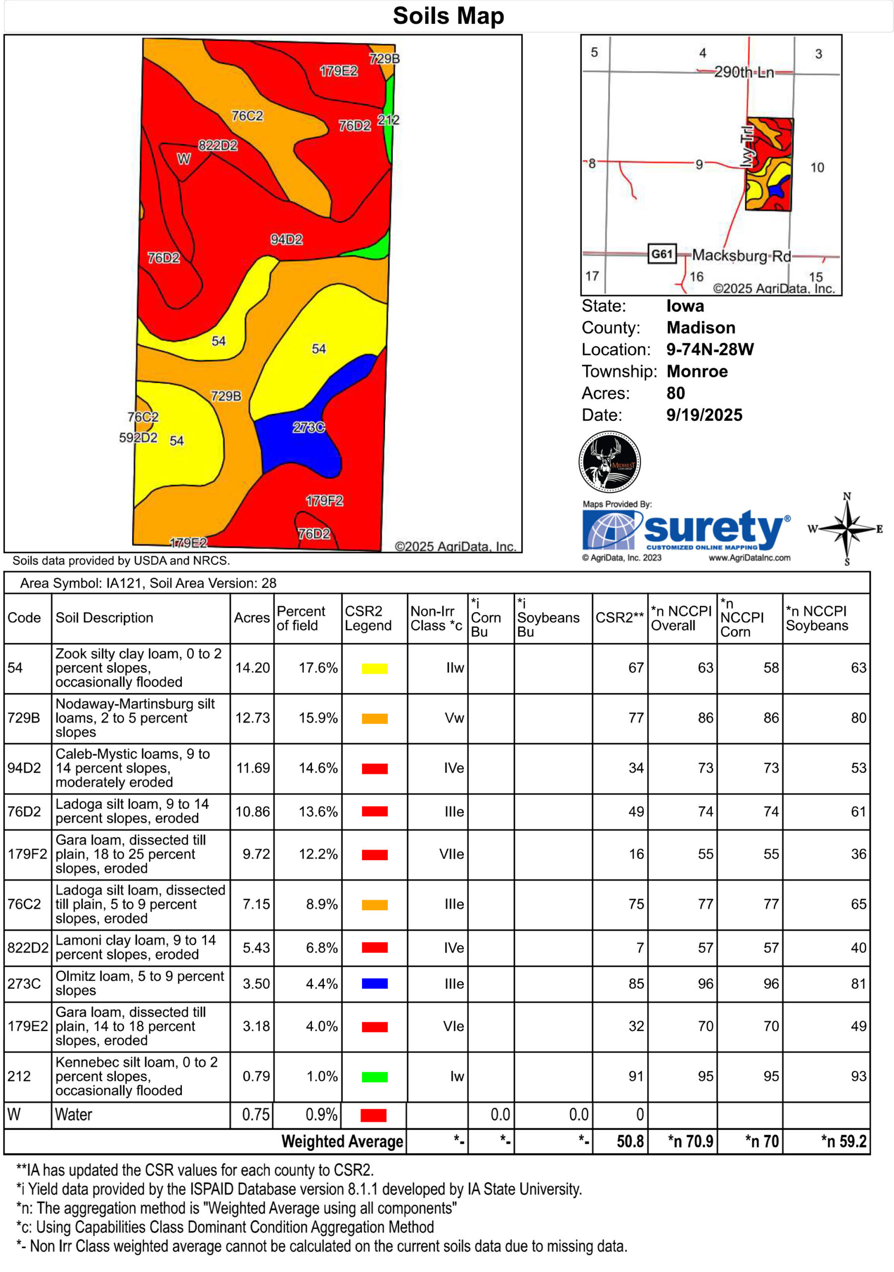 This 80 +/- acre Madison County farm, just ¼ mile off Macksburg Road, truly checks all the boxes—from income-producing investment to top-tier hunting. A stocked pond, loaded with bass and bluegill, not only enhances the scenic beauty of this property but also doubles as a reliable water source for wildlife, while Clanton Creek winds through the property, providing a nearly year-round supply.