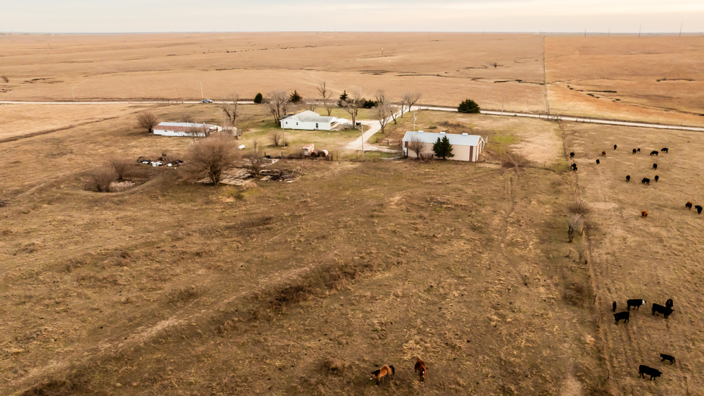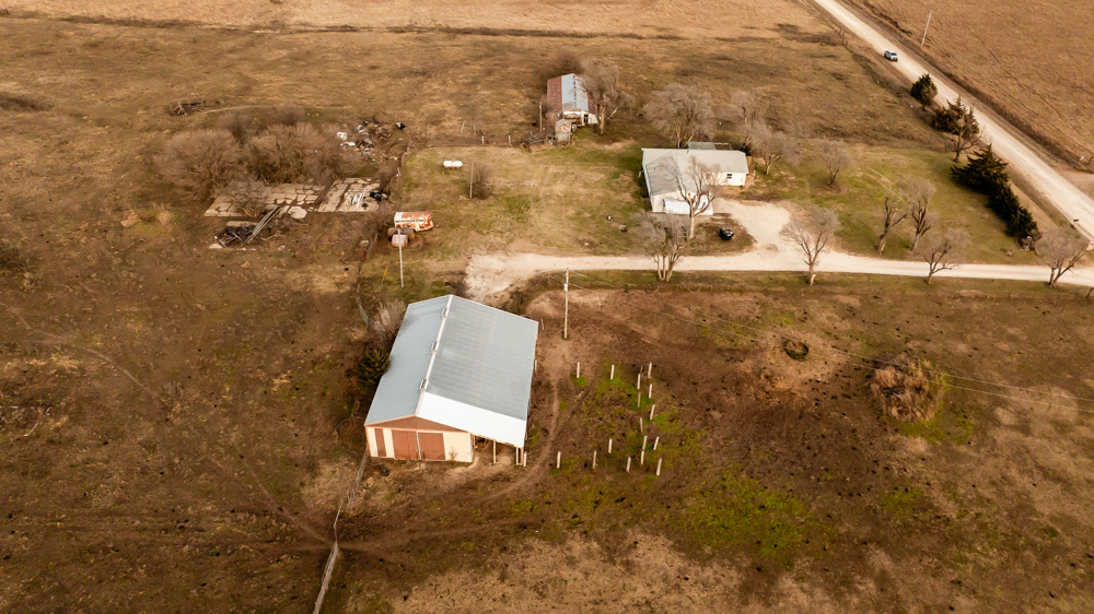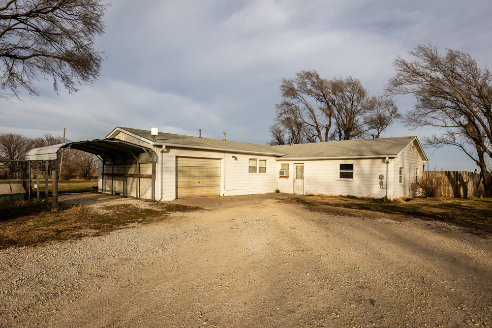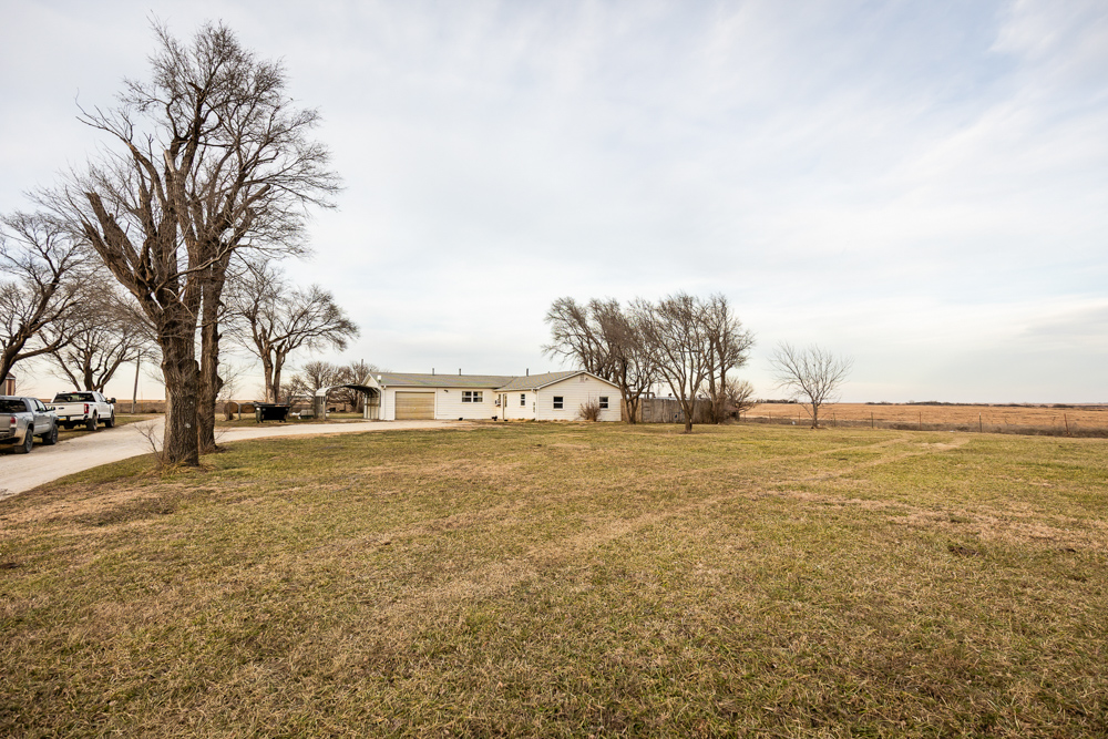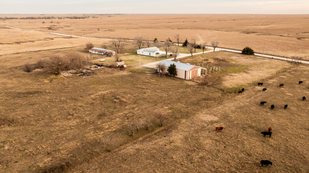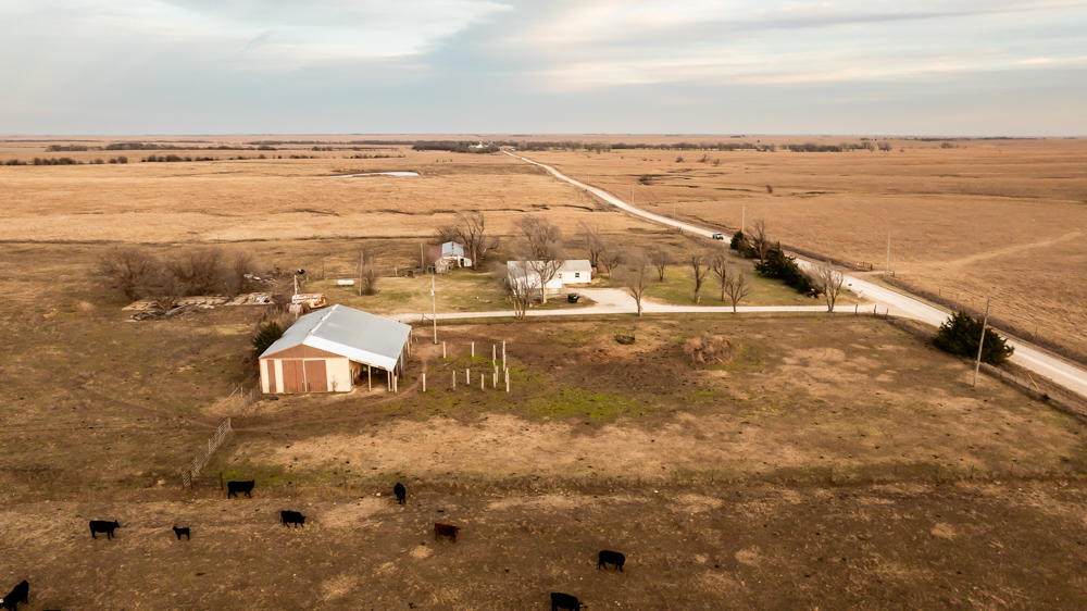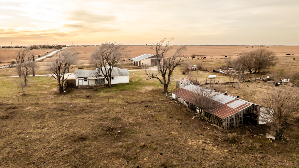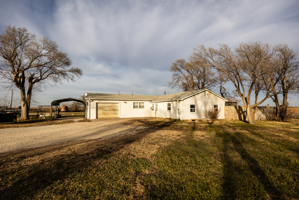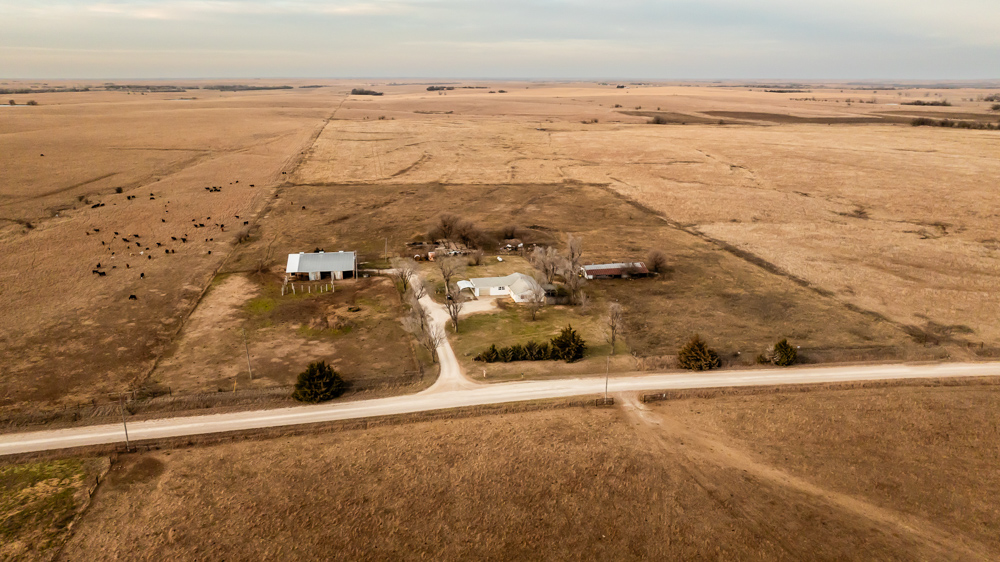 Located 1.5 miles east of Burns, Kansas, on the western edge of the beautiful Flint Hills, sits this home and shop on 10 +/- acres of land. The home was originally built in 1940 and added on to throughout the years consists of 1,488 finished square feet and has 3 bedrooms and 1 bathrooms all of which are on the main level. The main floor also has a kitchen, stand alone dining area, and a living room. There is a one-car attached garage, unfinished basement, and a covered back porch with tremendous views of the rolling Flint Hills! Heat and air are provided by a window unit and a propane heater in the living room. Well water is the property's water source, and wastewater is a lagoon.Outside, there is a 40'x60' shop building with a lean-to and a couple of stalls. Half of the floor is concrete, and there is an electric service to the building. Surrounding this building is a fenced-in area with water spigots perfect for horses, cows, or hobby animals. There are around 6 acres of Brome grass on the property, perfect for grazing or haying, all of which is fenced. There is also a 30'x60' loafing shed on the property.