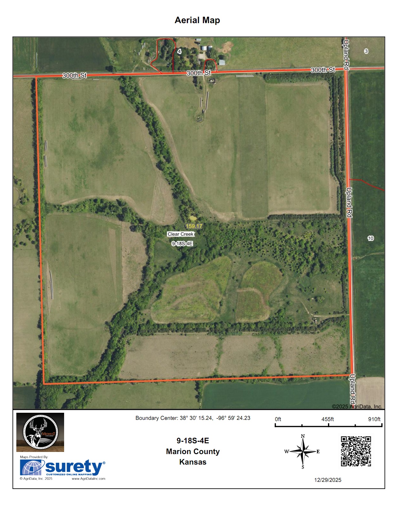 Located just west of Lincolnville in Marion County, Kansas, this diverse quarter is the perfect mix for the buyer seeking a true multi-use farm. With a strong history of recreation and hay production, this farm checks a lot of boxes—whether you’re looking for hay-producing native, premier upland bird, and whitetail hunting, or the potential to expand tillable acres.