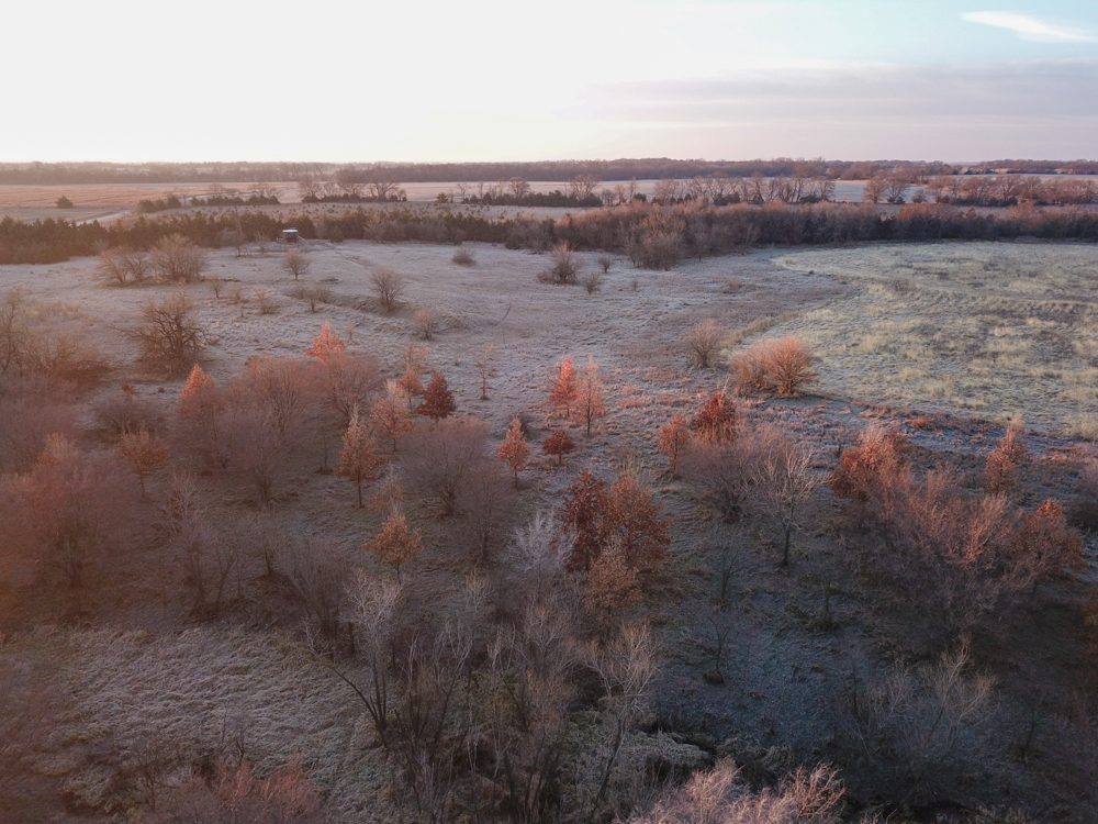 - Balanced habitat including hedge thickets, cottonwoods, native warm-season grass, cedars, tillable, and food plots