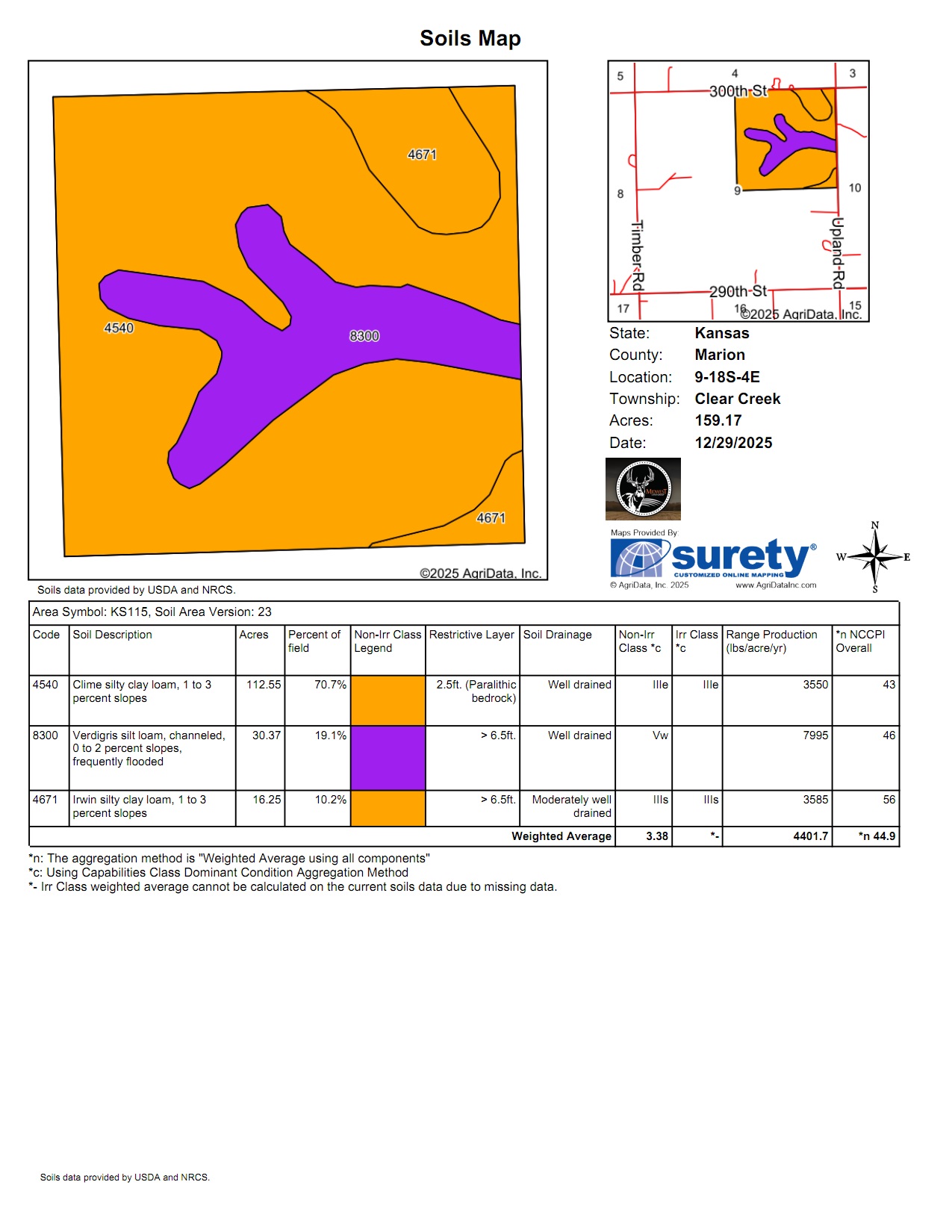 The farm is conveniently located just minutes from Lincolnville and Highway 56/77, with easy access within 15 minutes to Herington and Marion. An added bonus to this farm is the ease of access to airports in Salina, Manhattan, or Wichita. Call Joey Purpura at (785) 831-3045 for maps, disclosures, or to schedule a showing.