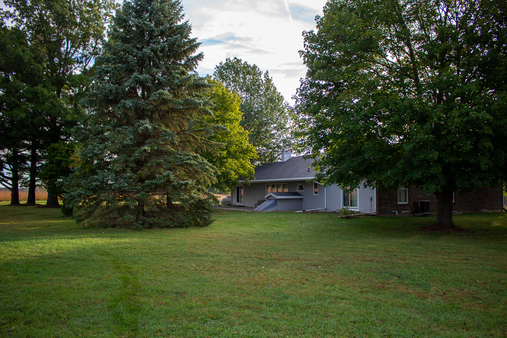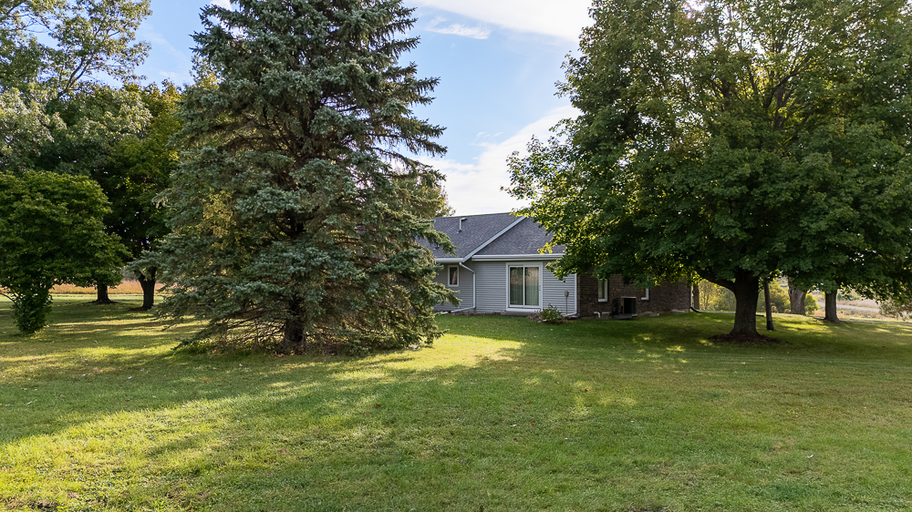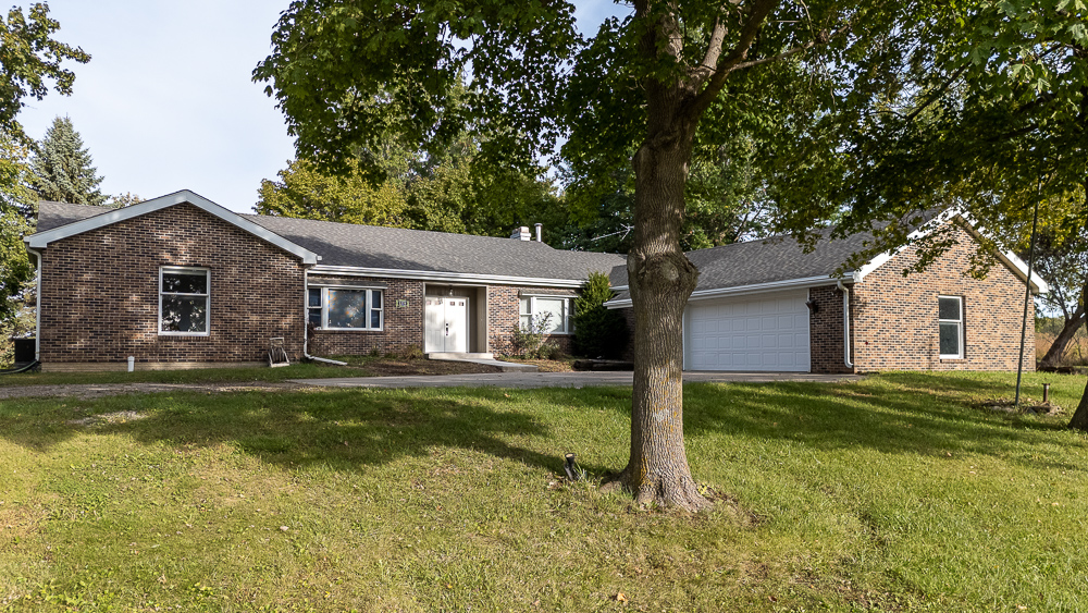The home features a tree-lined drive with a brick veneer exterior and charming curb appeal. A 2-car attached garage. A full professionally waterproofed basement with ample storage and two sump pumps. Spacious eat-in kitchen with abundant counter and cabinet space. Two cozy family rooms, each featuring a wood-burning fireplace. An inviting formal dining room perfect for holiday gatherings. Large windows throughout the home bring in wonderful natural light. The concrete patio is ideal for relaxing evenings or entertaining outdoors