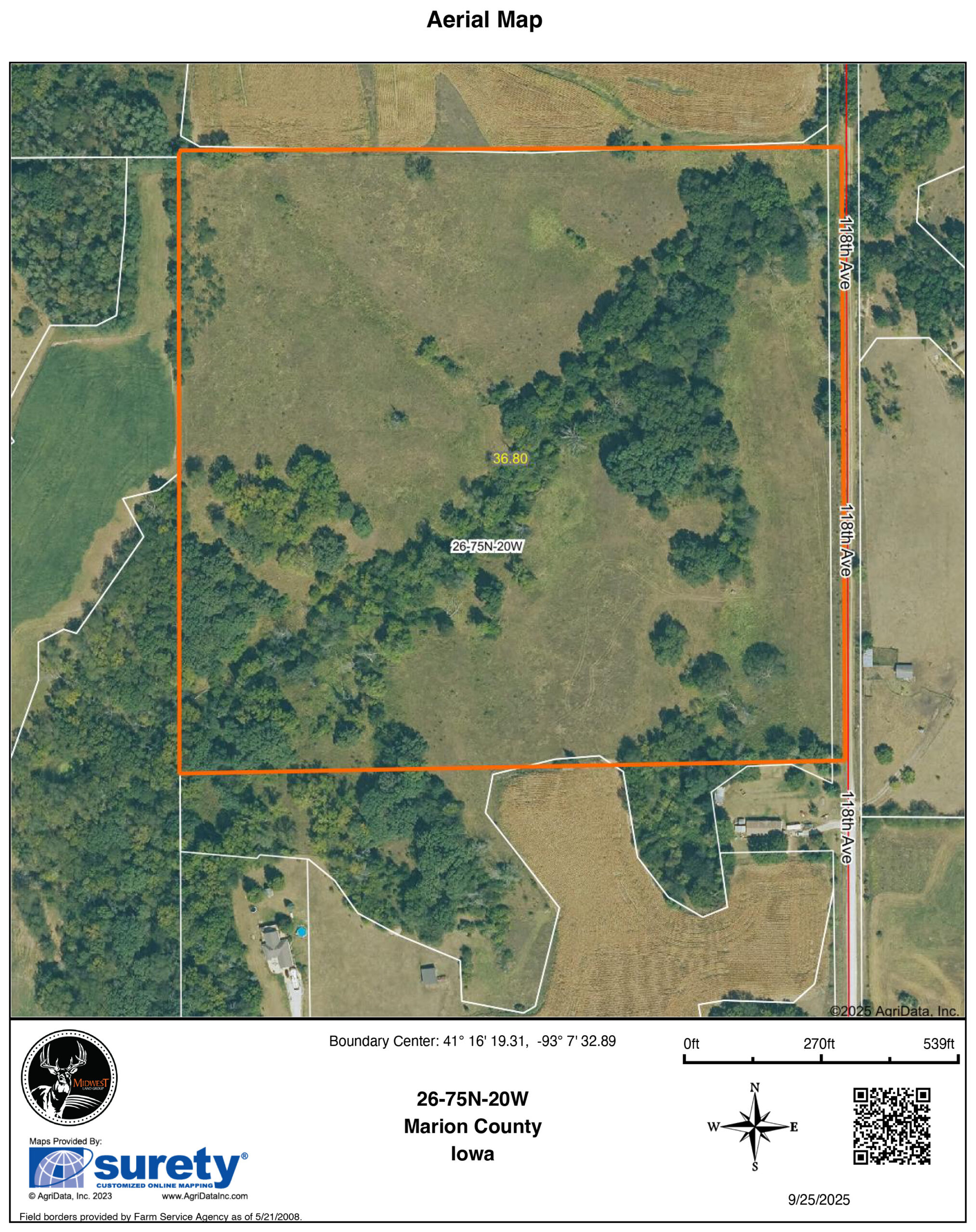 36.8 surveyed acres just south of Knoxville, Iowa, in Marion County. A pleasant mix of timber, grass, and overgrown pasture makes for the perfect blank slate farm for someone to make their own. Abundant wildlife for the outdoor enthusiast, with many food plot location options. Secluded and tucked back at the end of a level road. Could make for a great hay farm as well, all under an hour from Des Moines! Call Land Agent Patrick Cutter for additional details or to set up your private showing!Property Features