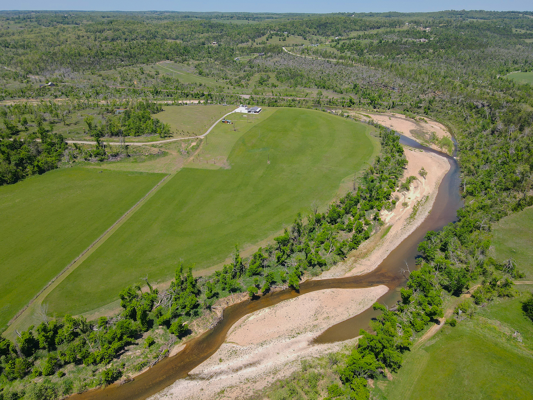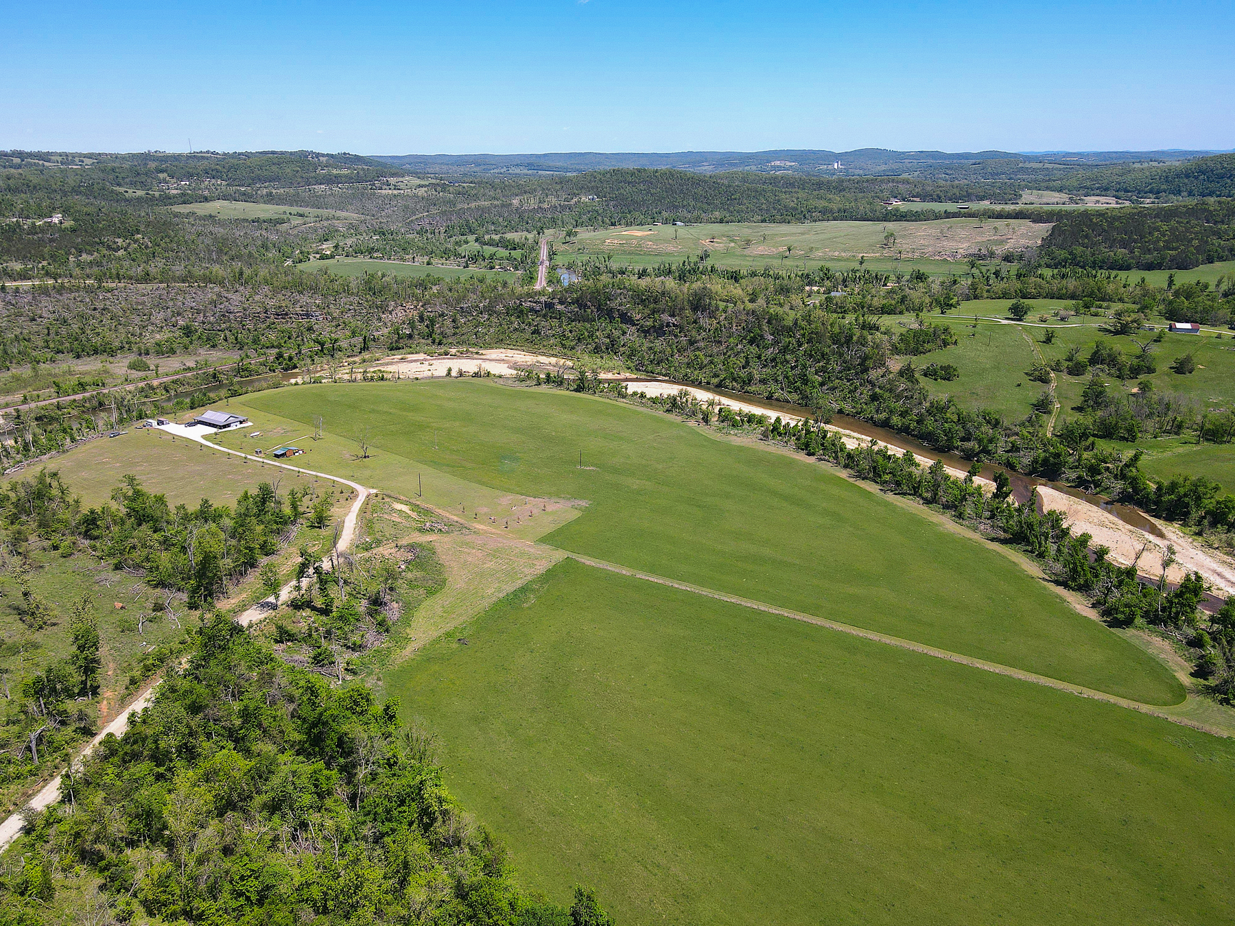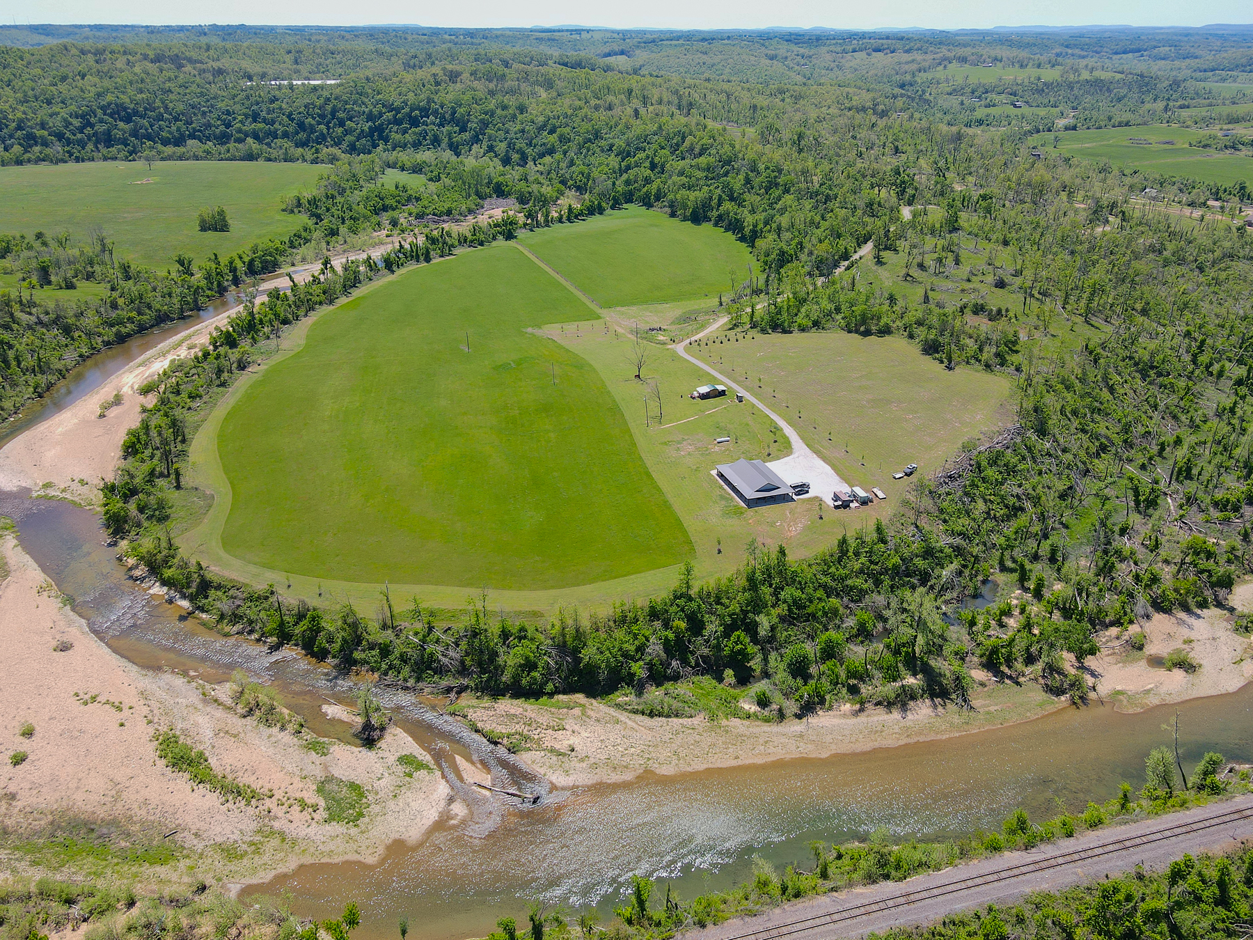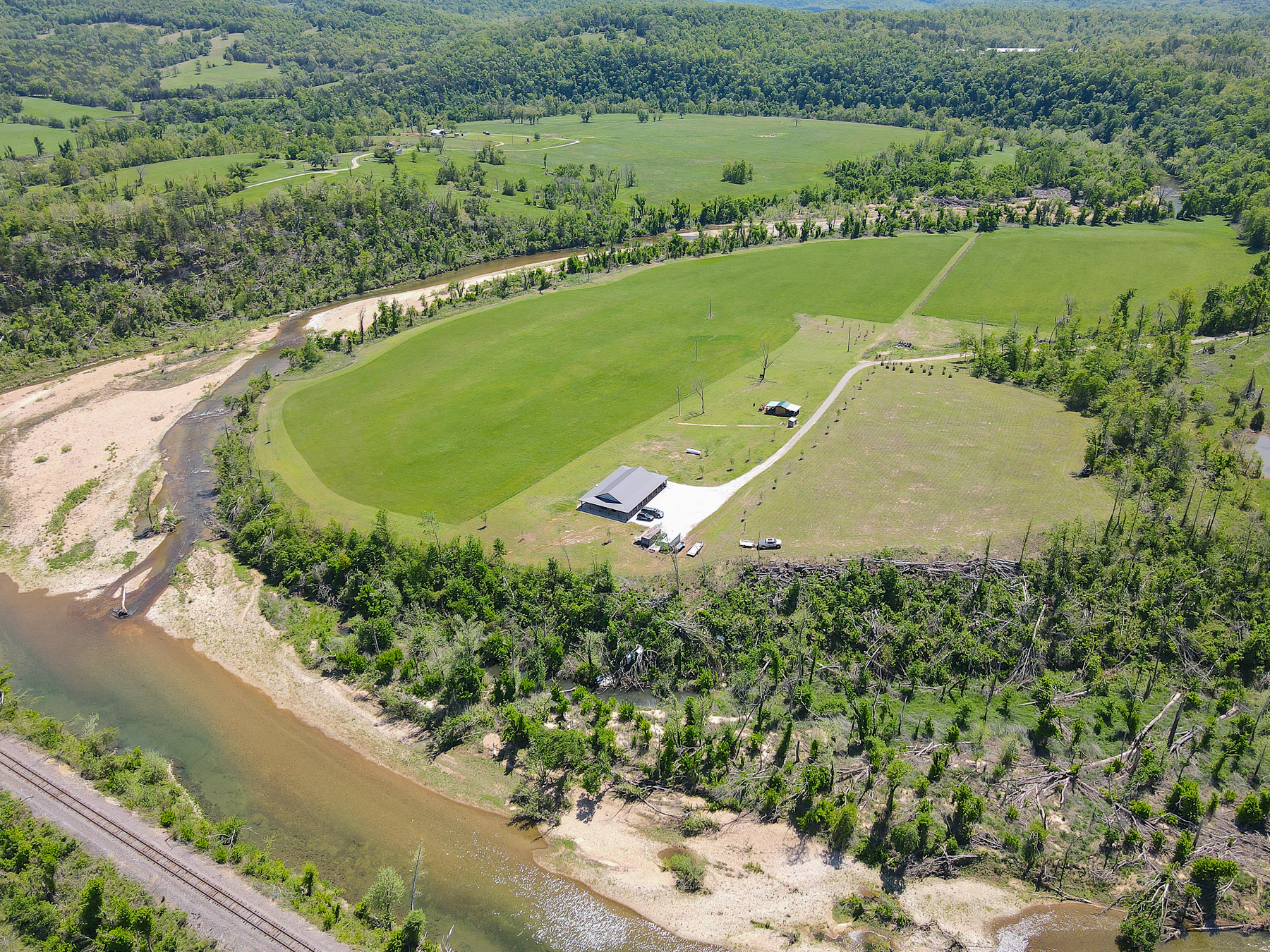 Tucked away at the end of a quiet dead-end road, this exceptional 44 +/- acre property offers a rare blend of privacy, recreation, and modern comfort, all highlighted by over 3,000 feet of frontage on Crooked Creek, one of the region’s most celebrated smallmouth bass fisheries. The creek frontage is truly special, with highly accessible shoreline and gentle entry points that allow you to drive right down to the gravel bars. A dynamic stretch of water features a perfect mix of shoals, deep pools, islands, and braided channels ideal for fishing, exploring, or simply enjoying the sound of moving water. Whether you prefer canoeing, kayaking, or casting a line, this property delivers endless opportunities right out your back door. Even better, the location allows for easy float trips with convenient put-in and take-out options nearby, making day trips effortless and enjoyable.The land itself is a beautiful balance of usability and natural appeal, with approximately 7 wooded acres providing shade, habitat, and privacy, while the remaining acreage is maintained hayfield perfect for grazing, recreation, or simply enjoying the wide-open views.