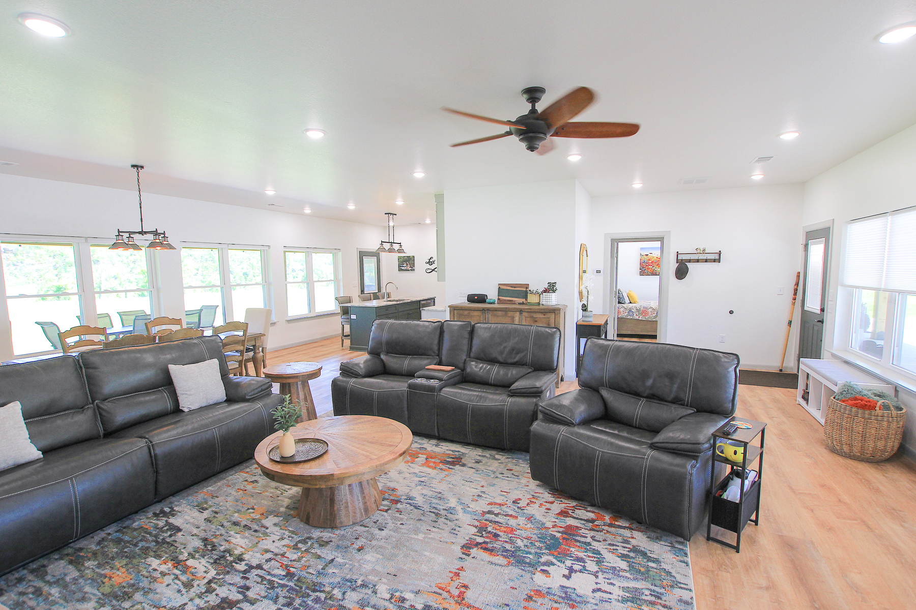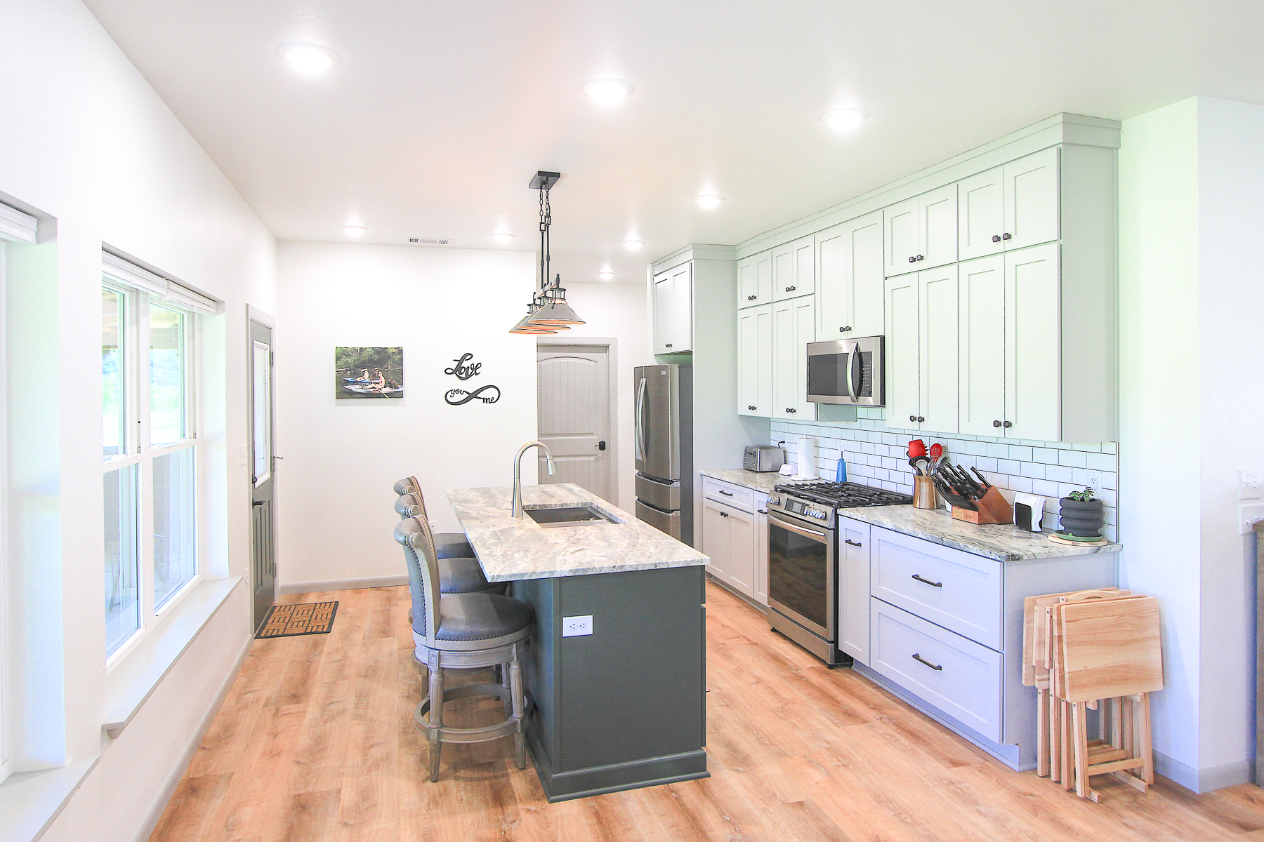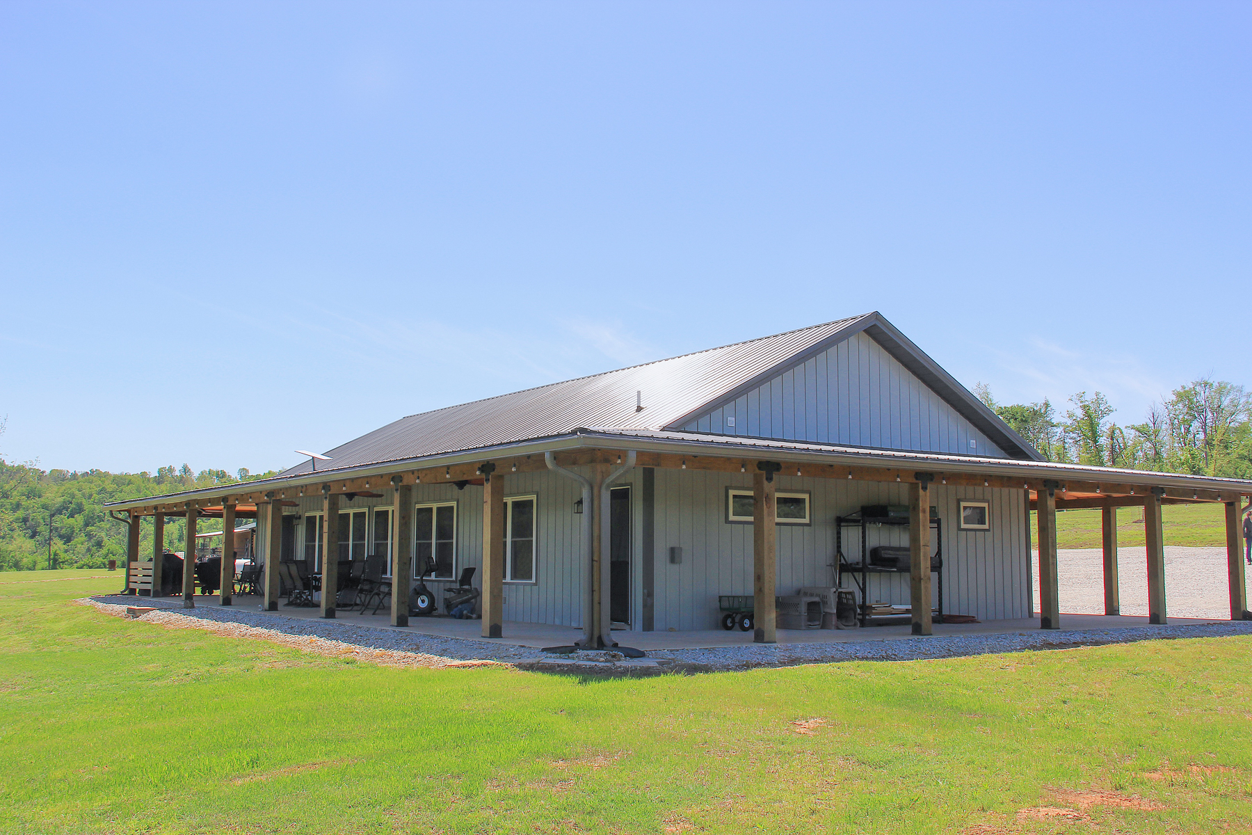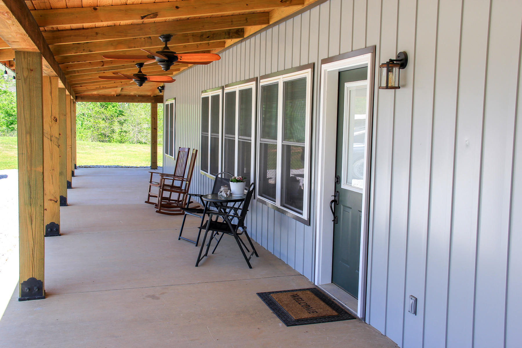Built in 2025, the 1,960 square foot home combines thoughtful design with quality construction. This single-story residence sits on a slab foundation and was built using 2x6 construction with foam insulation for long-term durability and efficiency. Inside, you’ll find 3 bedrooms and 2 bathrooms, featuring LVP flooring throughout, leathered granite countertops, and soft-close cabinetry that adds a touch of everyday luxury. A tankless hot water heater ensures efficiency, while a dedicated safe room provides peace of mind. Step outside onto the wrap-around porch and take in the scenic views of your land and the surrounding countryside, ideal for morning coffee or evening relaxation. Wildlife is abundant, with frequent sightings of deer, turkey, and even bald eagles along the creek.