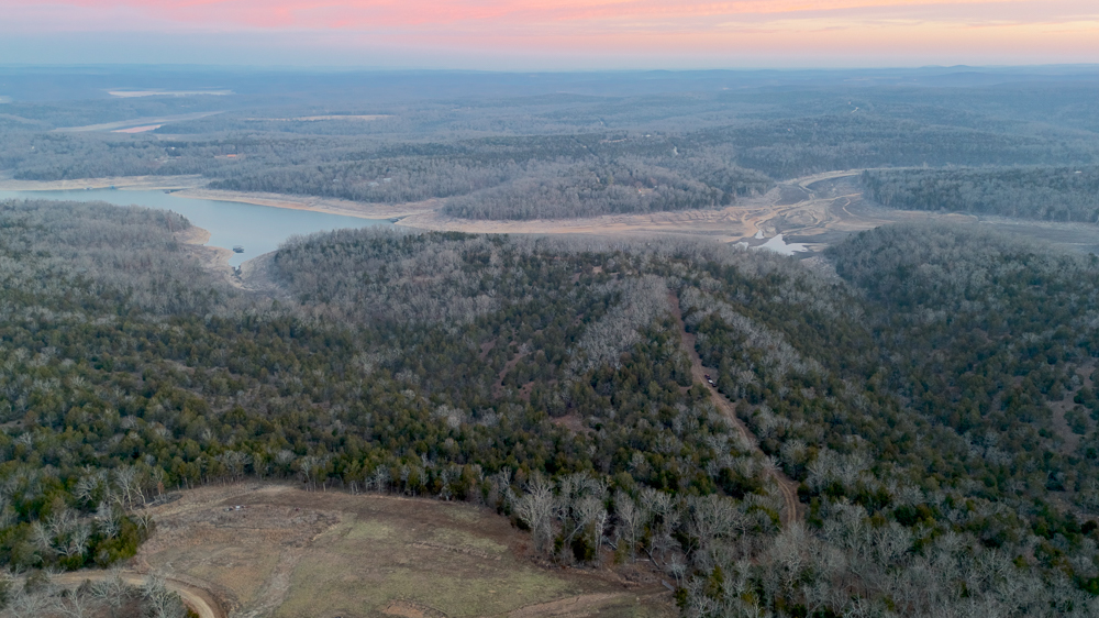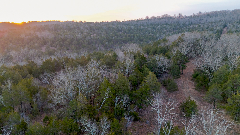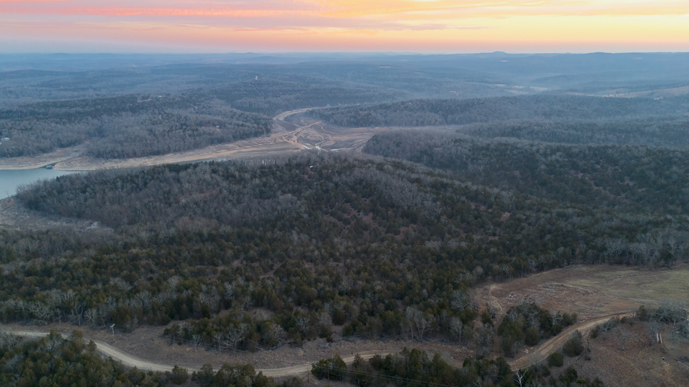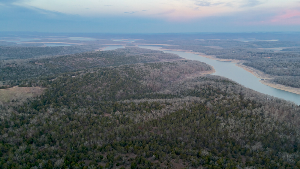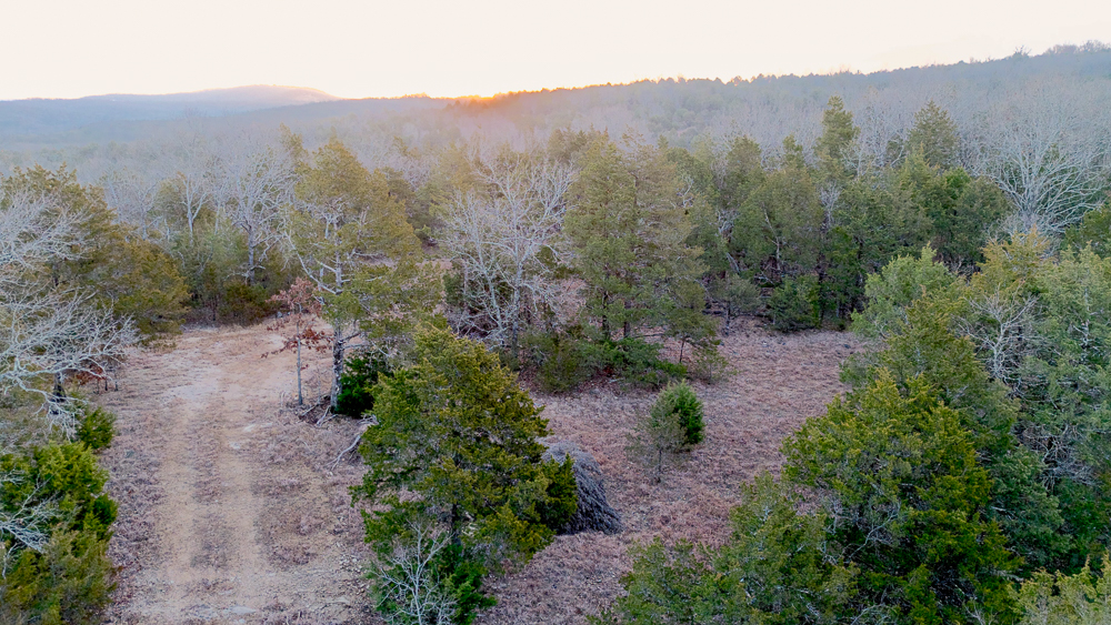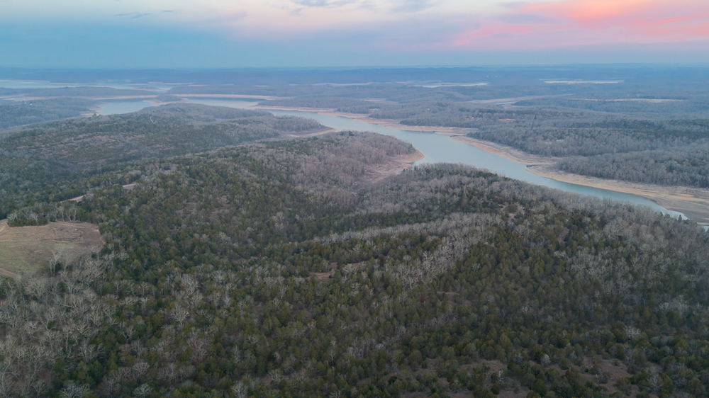 Midwest Land Group is proud to bring to market the Marion County 63, a beautiful 63 +/- acre tract located in north-central Arkansas just outside the quiet community of Oakland. As you approach the property along County Road 122, you’re immediately greeted by a scenic view of Bull Shoals Lake stretching off to the north and northwest—setting the tone for what this property has to offer. The tract features approximately 1,320 +/- feet of road frontage, with electricity along the road provided by North Arkansas Electric.The land itself offers a great mix of character and usability. Cedar pockets are broken up by small, meadow-like openings that create a park-like feel and add to the property’s visual appeal. Hardwood benches, gentle rolling terrain, small bluff formations, and scattered rock outcroppings give the tract depth and diversity. There are also natural drainages on both the east and west sides of the property that funnel water toward the coves of Bull Shoals, providing seasonal live water on the property itself.