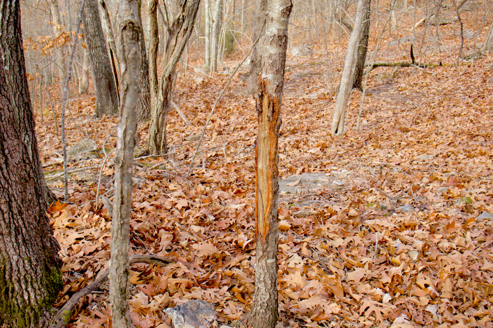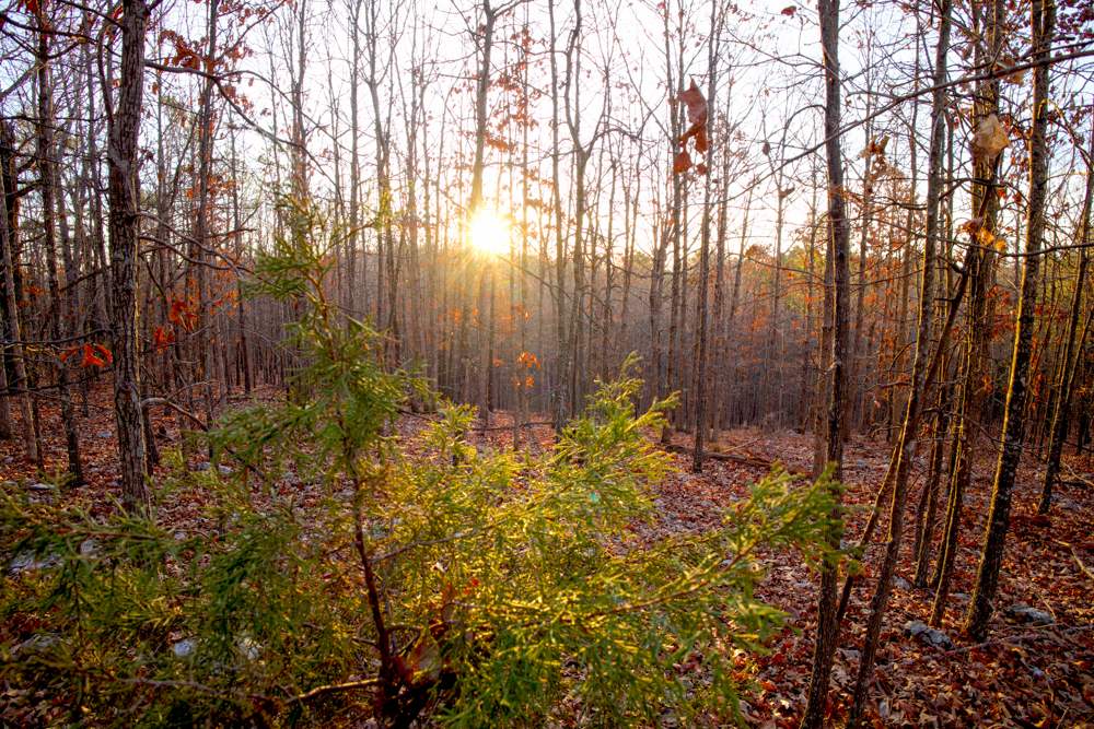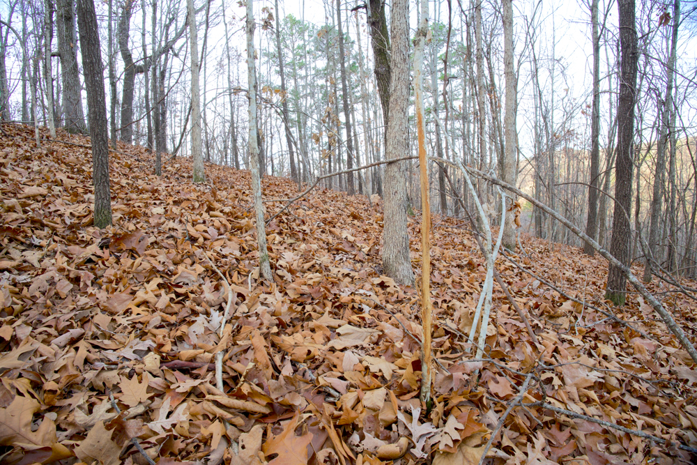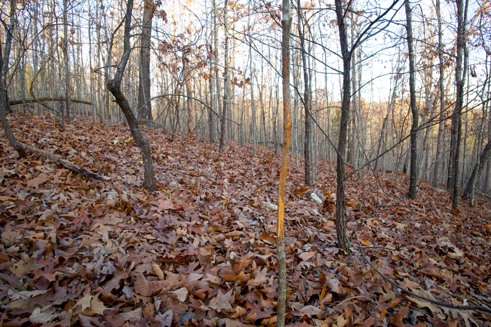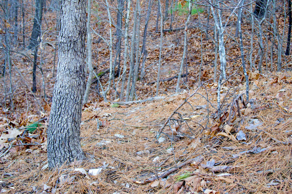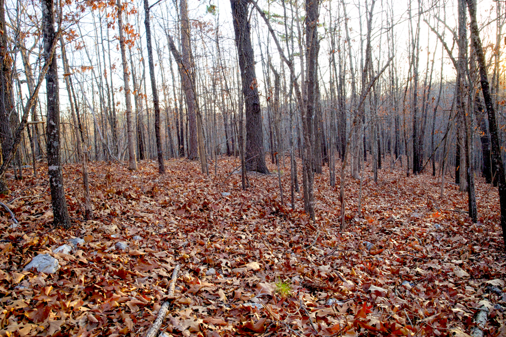 - Heavily wooded — White and red oak with some pine mixed in