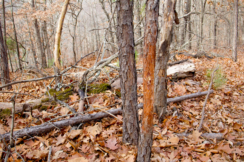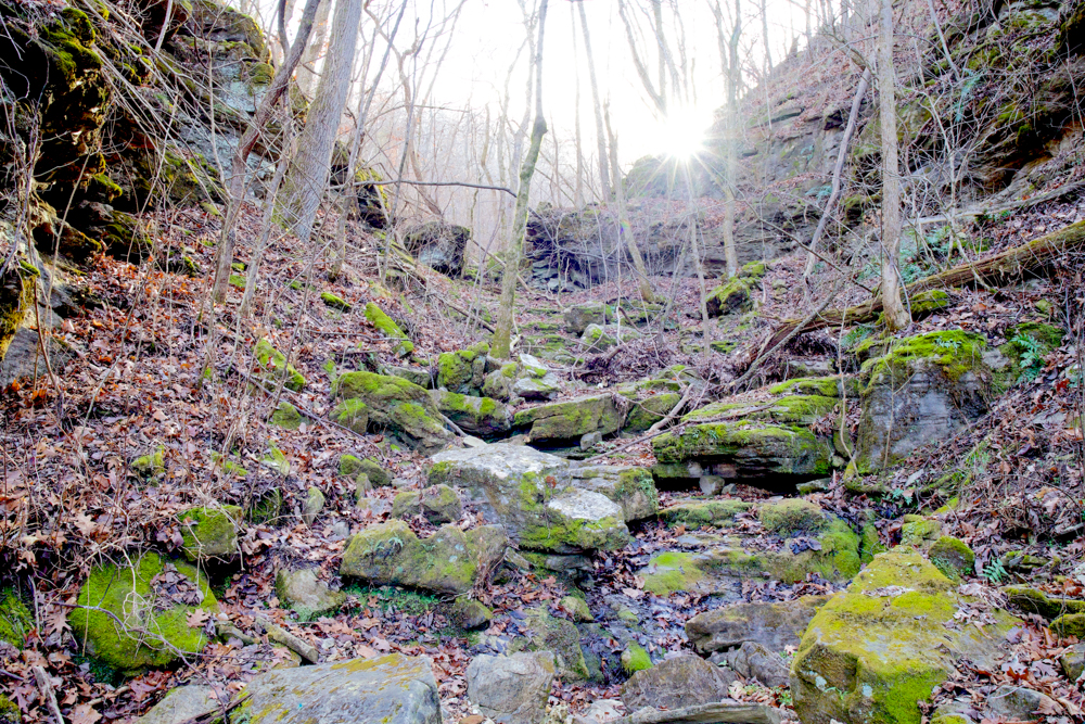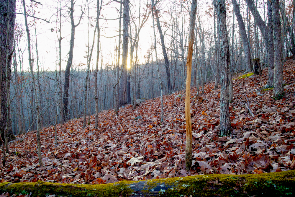 - Rugged Ozark terrain with caves, ridges, & hollows