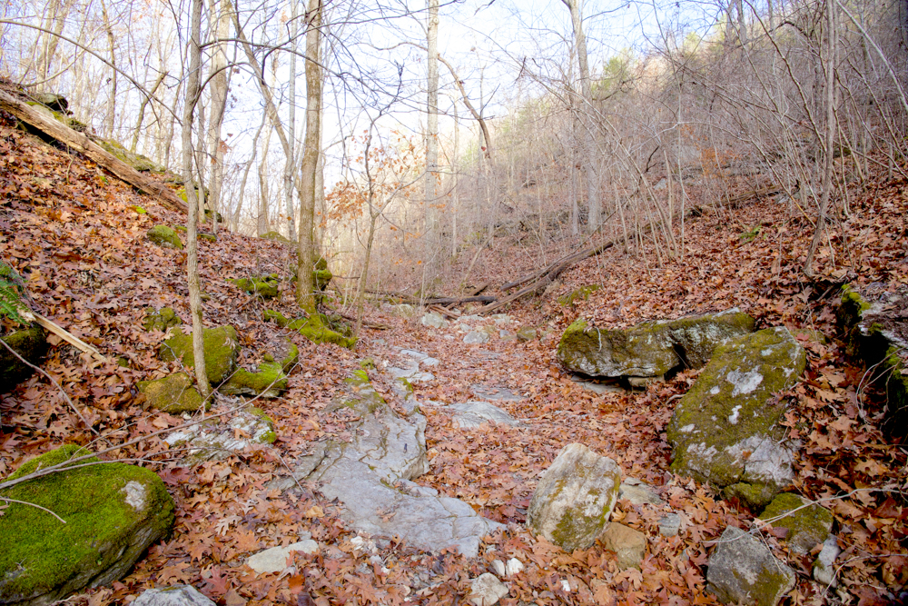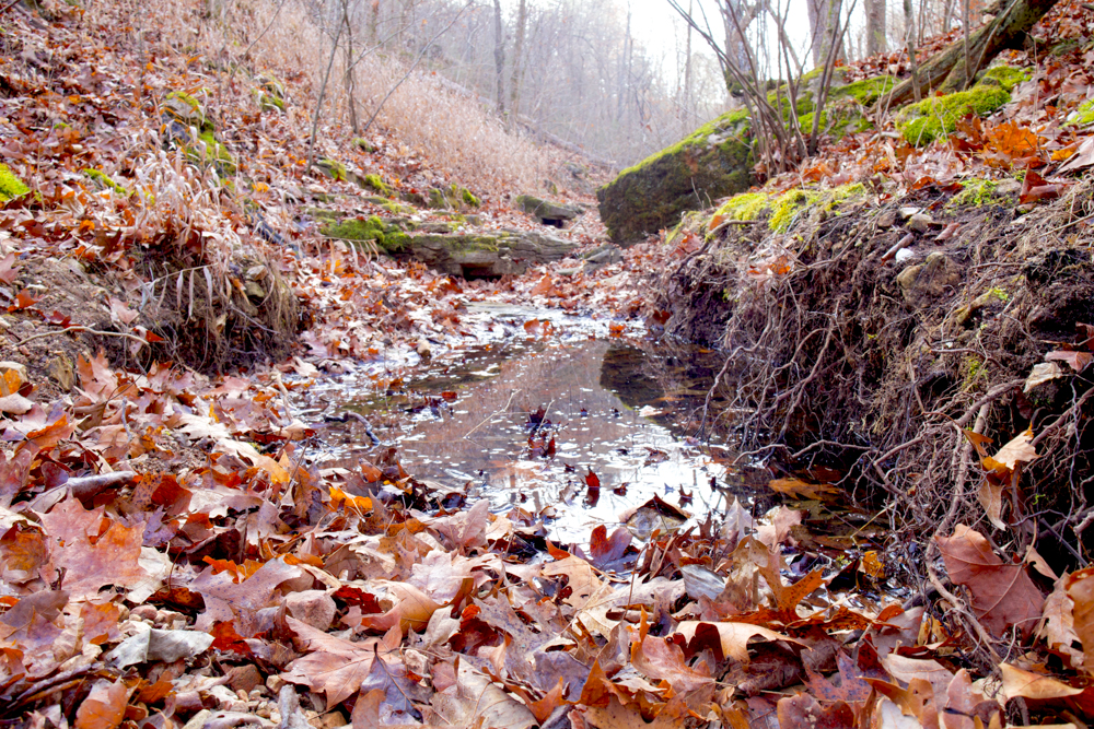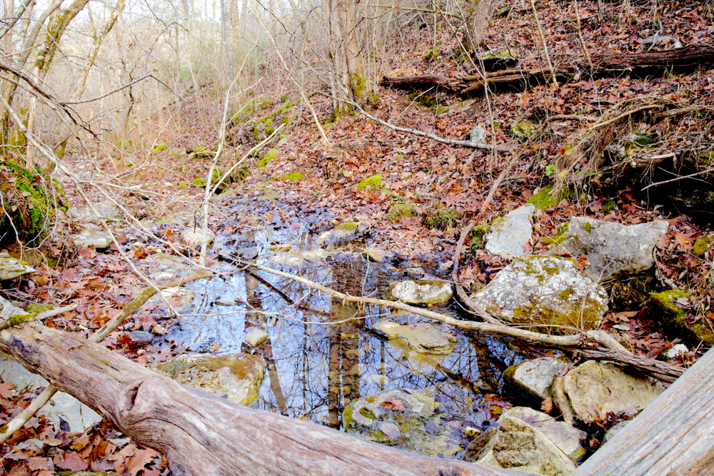 - 400 ft elevation drop to a hollow with wet-weather creek
