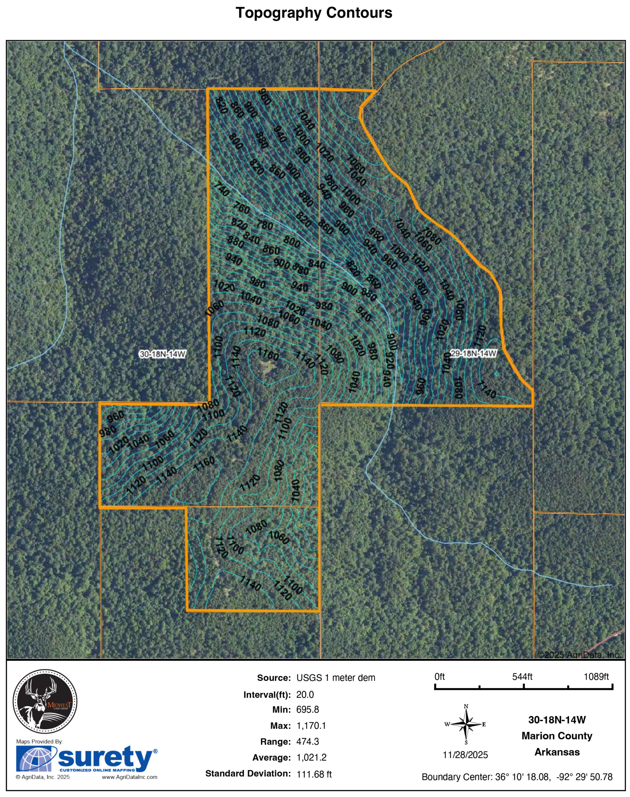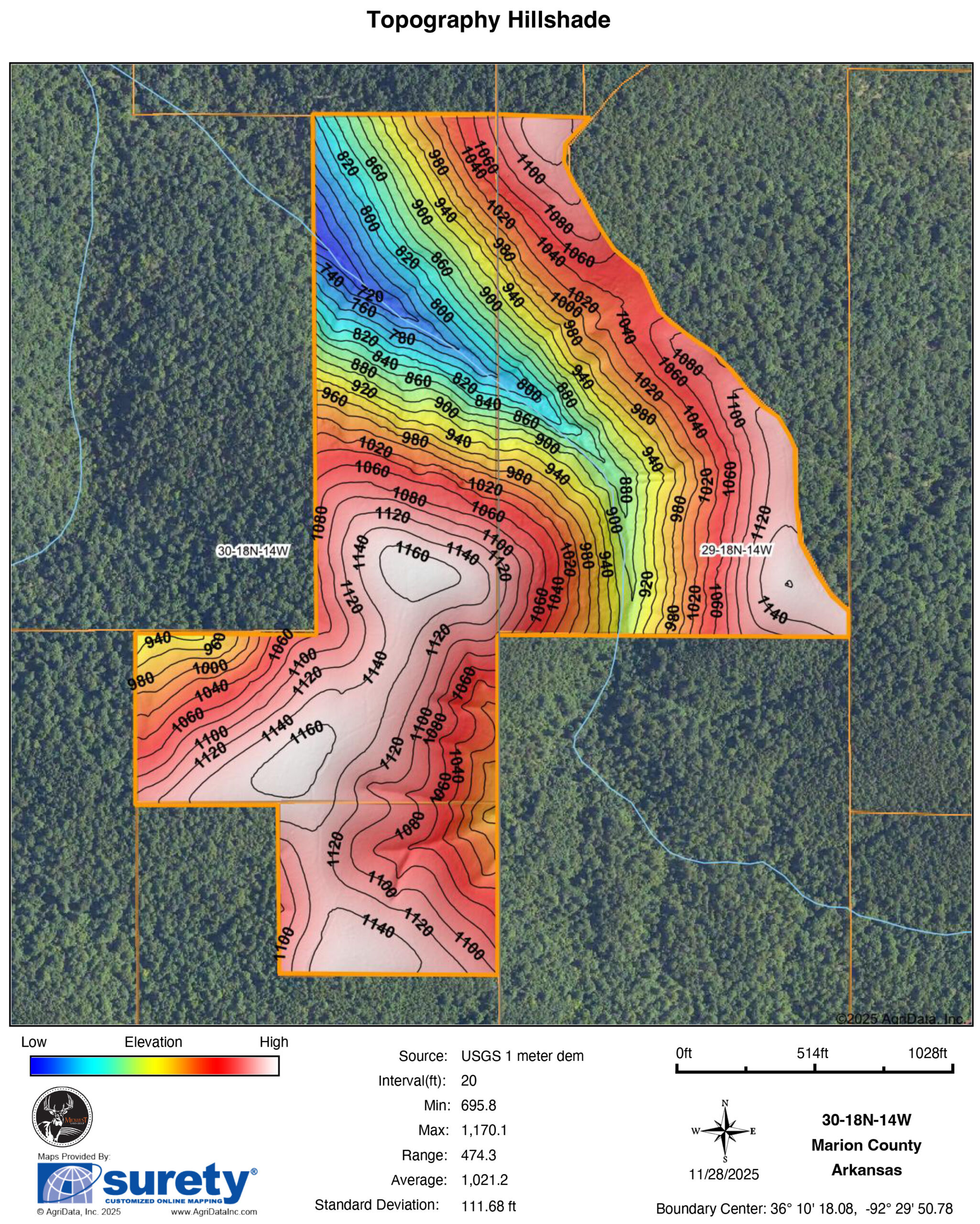 Yes, the Ozarks have their rugged side, but that’s where their charm lies. As the old saying goes: “Anyone can love the Rockies, but it takes a real soul to love the Ozarks.” This tract embodies that spirit—beautiful timber, abundant wildlife, ridges and hollows, and a setting that feels far away from the world yet close enough to enjoy everything that makes north-central Arkansas special.