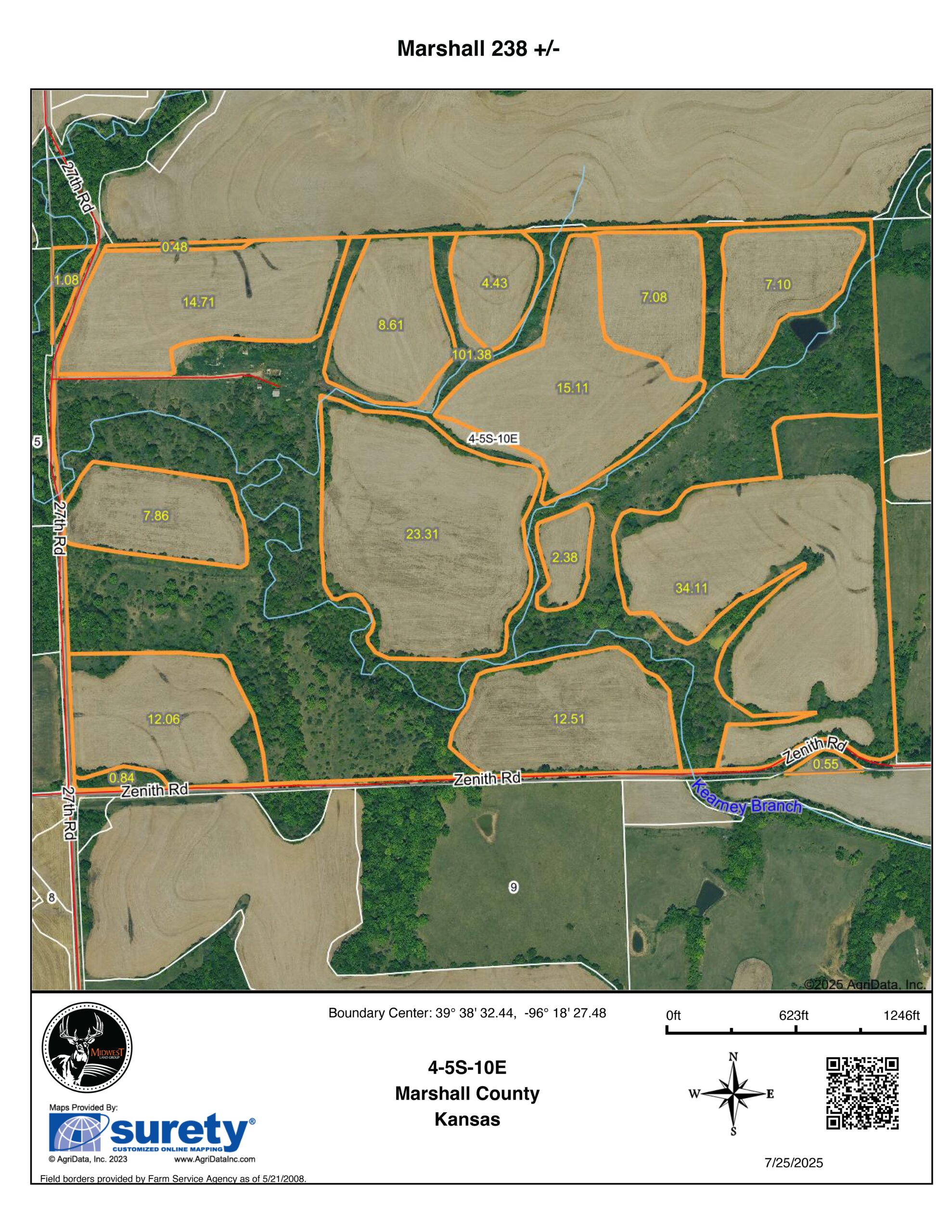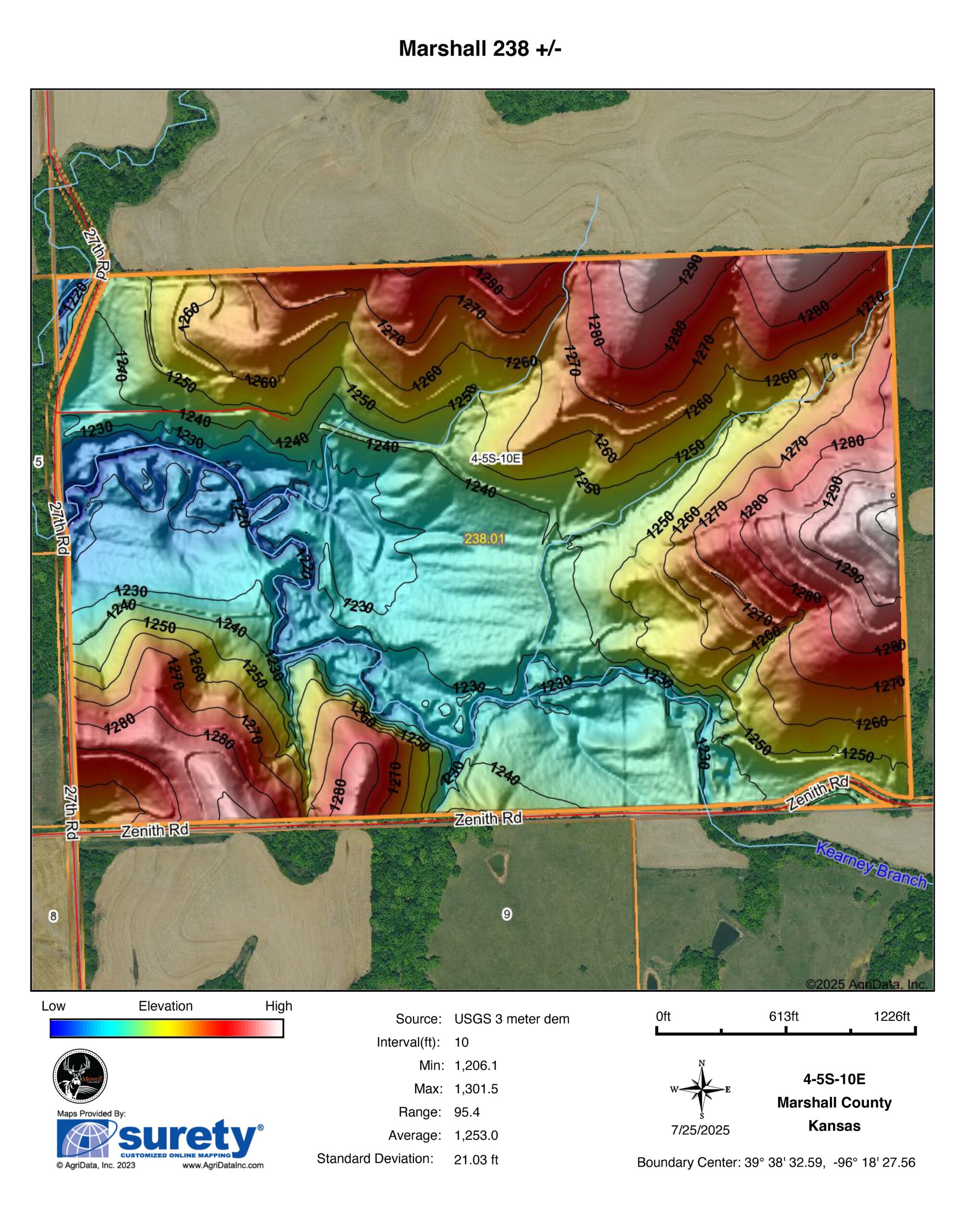 Whether your goal is to expand an existing farm operation, invest in quality Kansas land, or own a premier hunting property with the potential to produce trophy whitetails for generations, this 238 +/- acre tract north of Lillis represents a rare opportunity in Marshall County.